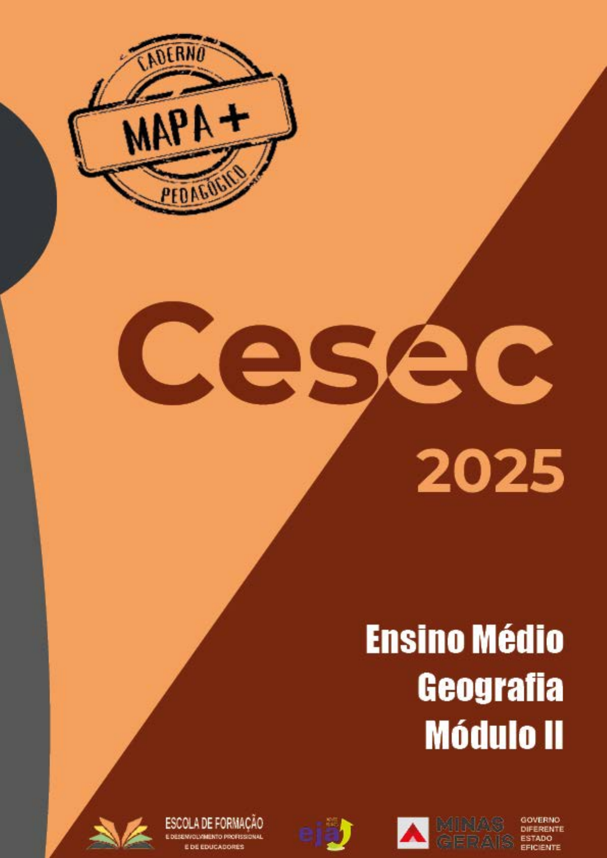 Governador do Estado de Minas Gerais Romeu Zema Neto Vice-governador do Estado de Minas Gerais Mateus Simões de Almeida Secretário de Estado de Educação Igor de Alvarenga Oliveira Icassatti Rojas Secretária Adjunta Fernanda de Siqueira Neves Subsecretária de Desenvolvimento da Educação Básica Kellen Silva Senra Superintendência de Políticas Pedagógicas Rosely Lúcia de Lima Diretoria de Modalidades de ensino e Temáticas Especiais Fabiana Benchetrit dos Santos Coordenação da Educação de Jovens e Adultos Denise Jacqueline Silva Oliveira Superintendente da Escola de Formação e Desenvolvimento Profissional e de Educadores Graziela Santos Trindade Diretor da Coordenadoria de Ensino da Escola de Formação e Desenvolvimento Profissional e de Educadores Tiago Vieira Lima Alves Elaboração e construção Professores Formadores da Escola de Formação e Desenvolvimento Profissional e de Educadores Revisão Equipe Pedagógica e Professores Formadores da Escola de Formação e Desenvolvimento Profissional e de Educadores Supervisão Juliano Alves Andrade Silene Gelmini Araújo Veloso Prezado Estudante, Você está recebendo o Plano de Estudos de GEOGRAFIA - ENSINO MÉDIO - MÓDULO II. Nele você encontrará conteúdos e propostas didáticas que o ajudarão a desenvolver habilidades fundamentais para o prosseguimento ou conclusão de seus estudos. O material foi elaborado considerando o seu perfil, trajetória de vida, interes- ses, objetivos e necessidades. Neste Plano de Estudos você encontrará uma diversidade de textos, imagens, vídeos, músicas, questões, exercícios e ou- tras propostas pedagógicas que foram elaboradas pensando em favorecer o seu processo de aprendizagem. Você deverá desenvolver as atividades didáticas aqui propostas a partir dos suportes disponibilizados neste material e no Google Classroom. Porém, para o esclarecimento de qualquer dúvida ou para uma assessoria mais per- sonalizada para a compreensão de conceitos ou realização das questões você pode contar com a orientação de estudos feita pelo professor orienta- dor da aprendizagem do CESEC em que você está matriculado. Desejamos que seus objetivos possam ser alcançados e que você continue em seu percurso escolar com sucesso. Secretaria de Estado da Educação de Minas Gerais SUMÁRIO TEMA DE ESTUDO: Política e Trabalho ......................................................................... 05 TEMA DE ESTUDO: Política e Trabalho ........................................................................ 19 TEMA DE ESTUDO: Política e Trabalho ........................................................................ 32 REFERÊNCIAS ............................................................................................................................ 44 5 CESEC MODULO NÚMERO II DE ESTUDO CESEC Referência: Ensino Médio Ano Letivo: 2025 Área de Conhecimento: Ciências Humanas e Sociais Aplicadas Componente Curricular: Geografia PLANO DE ESTUDOS Habilidades: (EM13CHS401) Identificar e analisar as relações entre sujeitos, grupos, classes sociais e sociedades com culturas distintas diante das transfor- mações técnicas, tecnológicas e informacionais e das novas formas de trabalho ao longo do tempo, em diferentes espaços (urbanos e rurais) e contextos. (EM13CHS402) Analisar e comparar indicadores de emprego, trabalho e renda em diferentes espaços, escalas e tempos, associando-os a proces- sos de estratificação e desigualdade socioeconômica. (EM13CHS606) Analisar as características socioeconômicas da sociedade brasileira – com base na análise de documentos (dados, tabelas, mapas etc.) de diferentes fontes – e propor medidas para enfrentar os problemas identificados e construir uma sociedade mais próspera, justa e inclusiva, que valorize o protagonismo de seus cidadãos e promova o autoconhe- cimento, a autoestima, a autoconfiança e a empatia. Unidade Temática: • Política e Trabalho. Objetos de Conhecimento: • O Meio Técnico, Científico e Informacional e os impactos no uso do território pelas relações do mundo do trabalho. Olá, estudante! Sabe aquela sensação de conhecer algo, mas não ter certeza de onde? Algo que já vimos uma única vez ou recorrentemente ao longo dos anos, que in- tuitivamente sabemos, mas que não conseguimos expressar com convic- ção? Os mapas poderiam entrar nessa relação ambígua porque, seja como 6 CESEC objeto de uma simples consulta ou ferramentas imprescindíveis para os pro- fissionais da área, estão sempre em foco. Os mapas são representações ge- ométricas planas, simplificadas do todo ou de parte da superfície terrestre. Essas representações podem ser feitas sobre uma folha de papel ou, mais recentemente, sobre telas e monitores de qualquer tipo, como os de com- putadores, tablets ou telefones celulares. O século XXI foi marcado por avanços tecnológicos rápidos, que provocaram mudanças profundas nos indicadores socioeconômicos. Simultaneamente foram enfrentados desafios ambientais significativos. A complexa intercone- xão entre tecnologia, sociedade e meio ambiente moldou a trajetória do de- senvolvimento humano, o que passou a exigir uma análise crítica e estratégias de mitigação, com o objetivo de atenuar a gravidade de suas consequências negativas. Com as inovações tecnológicas impulsionando o crescimento econômico, eficiência, automação e acesso a novos mercados, a revolução digital trans- formou a forma como as empresas operam, estimulando a produtividade e promovendo a globalização. No entanto, é importante destacar que esse avanço tecnológico nem sempre beneficia uniformemente toda a socie- dade. A automação, por exemplo, pode gerar desigualdades socioeconômi- cas, deslocando trabalhadores e exigindo uma rápida adaptação das habilidades da força de trabalho. Se levarmos em consideração apenas os indicadores socioeconômicos, a tecnologia desempenha um papel crucial n
