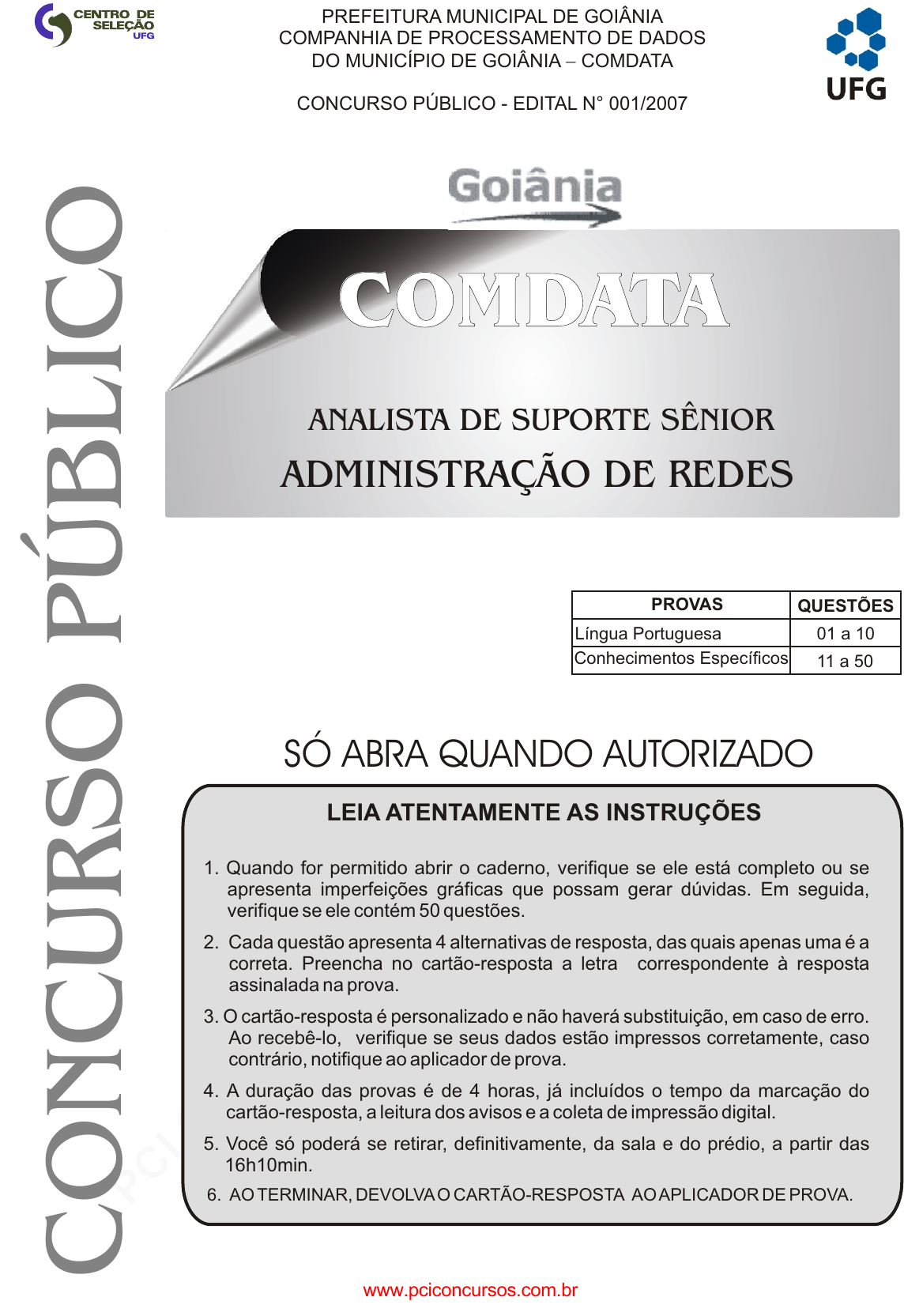 PREFEITURA MUNICIPAL DE GOIÂNIA CONCURSO PÚBLICO EDITAL Nº 001 /2007