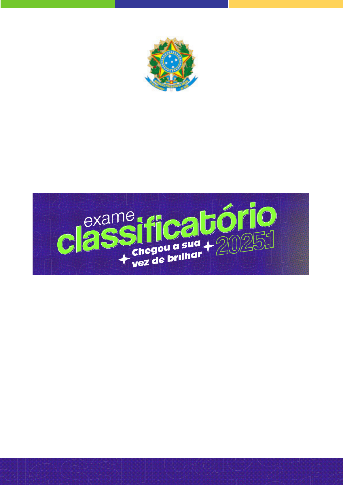 Ministério da Educação Instituto Federal de Educação, Ciência e Tecnologia do Piauí - IFPI Av. Jânio Quadros, 330, Santa Isabel, TERESINA / PI, CEP 64053-390 Fone: (86) 3131-1443 | www.ifpi.edu.br EDITAL 137/2024 - GAB/REI/IFPI, de 18 de outubro de 2024 Dispõe sobre o Exame Classificatório para ingresso na Educação Profissional Técnica de Nível Médio nas formas Integrada, Concomitante e/ou Subsequente, para o primeiro semestre letivo do ano de 2025, do Instituto Federal de Educação, Ciência e Tecnologia do Piauí (IFPI). O INSTITUTO FEDERAL DE EDUCAÇÃO, CIÊNCIA E TECNOLOGIA DO PIAUÍ (IFPI), por meio da PRÓ- REITORIA DE ENSINO, torna público o presente Edital contendo as normas e os procedimentos referentes à realização das inscrições, seleção e classificação dos candidatos ao Exame Classificatório para preenchimento de 4.420 (quatro mil e quatrocentas e vinte) vagas, ofertadas para o primeiro semestre letivo de 2025, nos cursos da Educação Profissional Técnica de Nível Médio, do Instituto Federal de Educação, Ciência e Tecnologia do Piauí, nas formas Integrada, Concomitante e/ou Subsequente ao Ensino Médio, distribuídas nos campi Angical, Campo Maior, Cocal, Corrente, Floriano, José de Freitas, Oeiras, Parnaíba, Paulistana, Pedro II, Picos, Pio IX, Piripiri, São João do Piauí, São Raimundo Nonato, Teresina Central, Teresina Dirceu, Teresina Zona Sul, Uruçuí e Valença. 2 CRONOGRAMA DO EXAME CLASSIFICATÓRIO 2025.1 ATIVIDADE PERÍODO DIVULGAÇÃO DO EDITAL 09/10/2024 Período de inscrições 11/10/2024 a 04/11/2024 Prazo para solicitação do nome social 11 e 12/10/2024 Resultado preliminar da solicitação de nome social 14/10/2024 Recurso referente ao resultado preliminar da solicitação de nome social 15/10/2024 Resultado final da solicitação de nome social 16/10/2024 Prazo para solicitação de isenção da taxa de inscrição 11 a 23/10/2024 Resultado preliminar da solicitação de isenção 24/10/2024 Prazo para recurso do resultado preliminar da solicitação de isenção 25/10/2024 Resultado final da solicitação de isenção 28/10/2024 Prazo para solicitação de heteroidentificação 11/10/2024 a 04/11/2024 Prazo para solicitação de atendimento especial 11/10/2024 a 04/11/2024 Último dia para pagamento da inscrição 05/11/2024 (Pagamento até às 16h) Resultado preliminar da solicitação de heteroidentificação e de atendimento especial 08/11/2024 Recurso referente ao resultado preliminar da solicitação de heteroidentificação e de atendimento especial (on-line) 11 e 12/11/2024 Resultado final da heteroidentificação e do atendimento especial 18/11/2024 Divulgação do Local de Prova 11/12/2024 APLICAÇÃO DAS PROVAS 15/12/2024 Divulgação do gabarito preliminar 16/12/2024 Recurso referente ao gabarito preliminar 17/12/2024 Resultado dos recursos e divulgação do gabarito definitivo A partir de 20/12/2024 Consulta ao Resultado Individual Exame Classificatório 08/01/2025 Recurso referente ao Resultado Individual 09/01/2025 Resultado Final do Exame Classificatório A partir de 14/01/2025 Matrícula dos candidatos aprovados Conforme calendário de cada campus do IFPI 3 1 - DAS DISPOSIÇÕES PRELIMINARES 1.1 O Exame Classificatório 2025.1 será regido por este Edital e seus anexos e está sob a responsabilidade da Pró-Reitoria de Ensino (PROEN), da Comissão de Supervisão e Acompanhamento dos Certames para Ingresso de Alunos do IFPI nomeada pela PORTARIA 1132/2024 - GAB/REI/IFPI, de 5 de abril de 2024, e da Comissão Geral do Exame Classificatório, nomeada pela PORTARIA 2784/2024 - GAB/REI/IFPI, de 19 de setembro de 2024, que será responsável por encaminhar à Diretoria de Comunicação do IFPI todas as informações necessárias para a divulgação do processo seletivo, além de planejar e coordenar as ações inerentes a suas fases de logística e execução. 1.2 O prazo de validade deste processo seletivo se encerra ao final do preenchimento de todas as vagas disponibilizadas neste Edital. 1.3 Cada campus participante do Exame Classificatório 2025.1 constituirá comissão local, que ficará responsável pela organização e execução deste certame no seu campus, sob supervisão e orientação da Comissão Geral. 1.4 O edital completo e as informações relativas às atividades do Exame Classificatório 2025.1 serão disponibilizados no endereço eletrônico https://selecao.ifpi.edu.br/. O acesso e o acompanhamento das informações divulgadas neste endereço eletrônico são de responsabilidade do candidato. 1.5 É obrigatório ao candidato ou ao seu responsável legal (pai, mãe, curador ou tutor) tomar conhecimento de todas as normas, procedimentos e documentos necessários para matrícula, indicados neste Edital e nas demais publicações pertinentes. 1.6 O Exame Classificatório 2025.1 contará com uma central de atendimento eletrônico, desde a publicação do Edital até a homologação do resultado final, exclusivamente pelo e-mail: classificatorio@ifpi.edu.br 2 - DOS CURSOS 2.1 Os cursos da Educação Profissional Técnica de Nível Médio, na forma Integrada ao Ensino Médio, na modalidade PRESENCIAL, serão oferecidos somente a quem já tenha concluído ou esteja concluindo, em 2024, o Ensino Fundamental, em estabelecimento de ensino devidamente reconhecido pelo MEC (art. 36-C, inciso I, da Lei nº 9.394/1996 – Lei de Diretrizes e Bases da Educação Nacional). 4 2.1.1 Para cursos na forma Integrada, o aluno, em um tempo mínimo de três anos, conforme estabelecido no Projeto Pedagógico do Curso, com matrícula única neste Instituto, concluirá, simultaneamente, uma habilitação profissional técnica e o ensino médio. 2.1.2 As turmas dos cursos na forma Integrada terão aulas semanais no turno indicado no ANEXO II e em seus respectivos contraturnos, em todos os campi. 2.2 Os cursos da Educação Profissional Técnica de Nível Médio, na forma Concomitante ao Ensino Médio, na modalidade