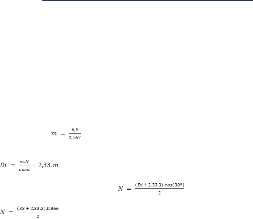 Se foi útil para você deixe um joinha Pergunta 1) A um grupo de projetistas foi dada a missão de dimensionar uma engrenagem helicoidal. Para isso, eles precisam calcular alguns dados dessa engrenagem, que trabalha em uma máquina de rotação média. Sabe-se que essa engrenagem tem diâmetro interno de 33 mm e um dente com altura de 6,5 mm. Com base nesses dados, assinale a alternativa correta para o número de dentes da engrenagem: Resposta: 18 Resposta correta. A alternativa está correta, pois, inicialmente, calculamos o módulo (m) por meio da equação da altura do dente (h = 2,167.m), sendo h = 6,5; substituindo, temos: 6,5 = 2,167.m. Então: e m = 2,99 ? 3. Com o valor do módulo, achamos o valor do número de dentes da engrenagem (N) pela equação do diâmetro interno (Di), em que: . Reorganizando a equação em função de N e sabendo que o ângulo dos dentes é 30º (média rotação), temos . Substituindo os valores , N = 19,5 ? 17. Sendo assim: N = 19 ou 20, mas, para ser mais conservador, consideramos N = 20. Pergunta 2) Um estagiário estava andando pela fábrica quando se deparou com um conjunto moto-bomba, que era composto pela bomba propriamente dita, um motor elétrico e um elemento que unia os dois; esse elemento era um acoplamento. O estagiário ficou curioso e foi estudar um pouco mais sobre aquele elemento que desconhecia. Após realizar uma pesquisa, o estagiário fez algumas anotações: Em relação aos elementos rígidos de transmissão de potência, analise as afirmativas a seguir e assinale V para a(s) Verdadeira(s) e F para a(s) Falsa(s). I. ( ) Os acoplamentos são elementos de máquina que têm, como uma das funções deles, compensar os desalinhamentos entre os eixos. II. ( ) A bomba e o motor observados estão ligados por um acoplamento tipo junta homocinética. III. ( ) A união por acoplamento elástico é mais suave, pois permite desalinhamentos paralelo, angular e axial. IV. ( ) O uso de acoplamentos flexíveis dispensa o alinhamento entre os eixos, já que o acoplamento é projetado para compensar possíveis desalinhamentos. Assinale a alternativa que apresenta a sequência correta. Resposta: V, F, V, F. Resposta correta. A sequência está correta. A afirmativa I é verdadeira, pois uma das funções do acoplamento é compensar os desalinhamentos entre os eixos. A afirmativa III é verdadeira, dado que o acoplamento elástico tem, como elementos transmissores, materiais elásticos, como pinos de borracha, fitas de aço, dentre outros. Pergunta 3) Uma fábrica de engrenagens cilíndricas de dentes retos tem, no estoque dela, engrenagens guardadas em prateleiras, divididas conforme o número do módulo delas, sendo: prateleira 1: módulo 1 a 1,75, inclusive; prateleira 2: módulo acima de 1,75 até 2,0, inclusive; prateleira 3: módulo acima de 2,0 até 2,75, inclusive; prateleira 4: módulo acima de 2,75 até 3,5 inclusive; e prateleira 5: módulo acima de 3,5 até 5,0, inclusive. Um vendedor da fábrica vendeu para um cliente uma engrenagem com 60 dentes e com um diâmetro interno aproximado de 101 mm. Com base nesses dados, assinale a alternativa correta sobre de qual prateleira de módulo o vendedor pegou essa engrenagem. Resposta: Prateleira 1. Resposta correta. A alternativa está correta, pois, para encontrar a prateleira correta, deve-se fazer o seguinte cálculo: sabe-se que o diâmetro interno é, aproximadamente, 101 mm e que a engrenagem tem 60 dentes. Então, pela equação do diâmetro interno, temos: di = m.(z – 2,33). Substituindo os valores, temos: 101 = m.(60 – 2,33), que 101 = 57,67m, ; sendo assim, m = 1,75 (o vendedor deve ir à prateleira 1, na qual está a engrenagem com módulo = 1,75). Pergunta 4) Uma fábrica está em parada programada e algumas engrenagens precisam ser analisadas para uma possível troca. Um operador, que está fazendo a inspeção nas máquinas, percebeu que uma engrenagem estava com as cabeças dos dentes danificadas. Então, ele contou a quantidade de dentes (50 dentes) e resolveu medir a altura total deles, chegando ao valor de 10,83 mm. Com base nessa medida, assinale a alternativa correta sobre qual é o diâmetro interno e o módulo da engrenagem, respectivamente. Resposta: di = 238,35 mm; m = 5. Resposta correta. A alternativa está correta, pois, como foi dada a altura do dente, inicialmente, calculamos o módulo pela equação: h = 2,167.m, em que h é a altura do dente, e m, o módulo. Substituindo o valor de h, temos: 10,83 = 2,166.m, em que , ou seja, m = 4,99 ? m = 5. Agora, pela equação: di = m. (z – 2,33). Tendo o valor de m (m = 5) e de z (z = 50 dentes), substituindo os valores, temos: di = 5.(50 – 2,33), di = 5.(47,67), ou seja, di = 238,35 mm. Pergunta 5) Usam-se engrenagens cilíndricas de dentes retos para a transmissão de movimento rotativo entre eixos paralelos; nesse caso, os dentes são retos e paralelos ao eixo de rotação. As partes de uma engrenagem cilíndrica de dentes retos estão representadas na figura a seguir. Fonte: Engrenagens... (2021, on-line). #PraCegoVer: a figura mostra o desenho de uma engrenagem de dentes retos contendo três dentes. Na direção horizontal da figura, temos entre o final do primeiro e o final do segundo dente, a cota “a)”. Entre o final do primeiro dente e o início do segundo dente, está cota “c)”. Na direção vertical da figura, temos, entre o meio dos dentes até a extremidade superior, a cota “d)”. E entre a linha mais inferior da figura até o meio dos dentes, está a cota ”b)”. ENGRENAGENS II. Essel, [2021]. Disponível em: https://essel.com.br/cursos/material/01/ElementosMaquinas/33elem.pdf. Acesso em: 25 ago. 2021. Sobre as letras em vermelho marcadas na figura, associe o que significa cada letra às denominações delas (a, b, c, d): ( ) Vão. ( ) Diâmetro primitivo. ( ) Passo. ( ) Cabeça do dente. A partir das relações feitas anteriormente, assinale a alternativa que apresenta a sequência correta. R