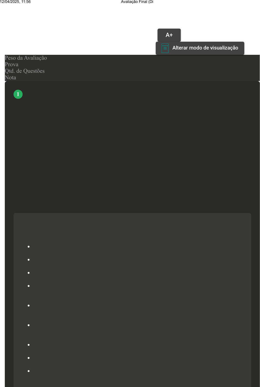Prova Impressa GABARITO | Avaliação Final (Discursiva) - Individual (Cod.:1027401) Peso da Avaliação 2,00 Prova 95834921 Qtd. de Questões 2 Nota 7,50 O enfermeiro necessita de diversas competências em sua prática profissional, pois é essencial que este profissional esteja qualificado para desempenhar um papel efetivo na consolidação dos princípios do sistema de saúde atual. Isso inclui a realização de atividades gerenciais, assistenciais e educativas, que exigem uma abordagem sistemática e o comprometimento com as necessidades individuais e coletivas. Portanto, é fundamental que o enfermeiro esteja constantemente desenvolvendo e mobilizando suas competências, visando à consolidação, expansão e transformações das Unidades Básicas de Saúde (UBS) com Estratégia de Saúde da Família (ESF). Fonte: adaptado de: LOPES, O. C. A. et al. Competências dos enfermeiros na estratégia Saúde da Família. Esc. Anna Nery, v. 24, n. 2, 2020. Disponível em: https://www.scielo.br/j/ean/a/zB5Npy99wyPDGX4jXzdNDYp/?lang=pt. Acesso em: 19 maio 2023. Diante do exposto, avalie o perfil de competências essenciais para atuação do enfermeiro e suas práticas (ESF), dissertando sobre cinco atribuições. Resposta esperada Realizar o registro das ações desenvolvidas em prontuário próprio do paciente. Alimentar e garantir a qualidade dos registros dos sistemas de informação vigentes. Realizar busca ativa e notificar doenças e agravos de notificação compulsória. Participar do acolhimento do usuário, de maneira humanizada e acolhedora, com escuta ativa. Identificar os diagnósticos de saúde da população sob sua responsabilidade, ou seja, os problemas de saúde. Promover parcerias com as instituições do território, organizações formais e organizações informais em prol da comunidade. Prestar assistência integral à população. Prezar pela promoção da saúde, realizando ações com esse objetivo. Realizar atividades em grupo, de acordo com a demanda da população. VOLTAR A+ Alterar modo de visualização 1 12/04/2025, 11:56 Avaliação Final (Discursiva) - Individual about:blank 1/4 Estimular a participação da comunidade no seu cuidado e autonomia à saúde, inclusive nos Conselhos de Saúde. Participar dos Conselhos de Saúde. Valorizar o vínculo com as famílias cadastradas no seu território. Participar das reuniões de equipe. Realizar visita domiciliar e/ou atendimento domiciliar conforme sua categoria profissional, incluindo Instituições de Longa Permanência (ILP), abrigos, entre outros tipos de moradia existentes no território. Atuar, conforme a sua categoria profissional, no atendimento às infecções sexualmente transmissíveis (ISTs) e outras doenças infecciosas (meningite, catapora, gripe e outras), aos ciclos de vida (criança, adolescente, mulher, homem, gestante e idosos), às condições crônicas prevalentes (hipertensão, diabetes, tuberculose, hanseníase) e outras condições conforme carteira de serviços e metas/indicadores vigentes. Realizar ações interdisciplinares. Acompanhar e registrar o Bolsa Família. Executar o atendimento a todos os ciclos de vida, bem como às condições crônicas existentes em seu território e outras condições de saúde conforme sua competência. Realizar atendimento e procedimentos regulamentados no exercício da sua profissão dentro e fora da unidade quando necessário, como no domicílio, em escolas e outros. Solicitar exames complementares, prescrever medicações conforme protocolos. Realizar/Supervisionar o acolhimento com escuta qualificada. Supervisionar as ações dos ACS e dos técnicos e/ou auxiliares de enfermagem. Promover ações de educação permanente aos ACS e aos técnicos e/ou auxiliares de enfermagem. Organizar as rotinas de trabalho da ESF. Referência bibliográfica: MARINS, Mariana. Saúde Coletiva e Assistência de Enfermagem na Atenção Primária e Secundária. Indaial - SC: Arqué, 2023. Composição e atribuições das ESF. Minha resposta • Realizar os registros das ações aplicadas em prontuário próprio do paciente. • Alimentar de forma adequada, garantindo a qualidade dos registros dos sistemas de informação vigentes. • Notificar doenças e agravos de notificação compulsória, realizando busca ativa. • Realizar escuta ativa, participando do acolhimento do usuário de maneira acolhedora e humanizada. • Identificar os problemas de saúde da população sob sua responsabilidade. • Oferecer assistência integral a população. • Solicitar parcerias de organizações informais, formais e instituições do território em favor da comunidade. • Realizar ações prezando pela promoção da saúde e atividades em grupo 12/04/2025, 11:56 Avaliação Final (Discursiva) - Individual about:blank 2/4 conforme demanda da população. • Estimular a participação da comunidade no seu autocuidado e autonomia da saúde e participação dos Conselhos de Saúde. • Participar das reuniões de equipe e prezar pelo vínculo das famílias cadastradas em seu território. • Supervisionar as ações e promover ações de educação permanente dos técnicos de enfermagem, auxiliares de enfermagem e ACS e organizar as rotinas de trabalho da ESF. • Realizar / monitorar o acolhimento com escuta qualificada. • Acompanhar e registrar o Bolsa Família, • Realizar atendimentos, procedimentos na unidade e fora dela quando necessário (visita domiciliar, escolas, ILP, abrigos e outros), solicitar exames complementares e prescrever medicações, tudo isso desde que estejam regulamentados no exercício da sua profissão. • Realizar ações interdisciplinares. • Realizar o atendimento a todos os ciclos de vida (criança, gestantes e idosos), às condições crônicas (exemplo hipertensão e diabetes), infecções sexualmente transmissíveis (IST), infecciosas (exemplo gripe e catapora) e outras condições de saúde, conforme sua competência. Retorno da correção Acadêm