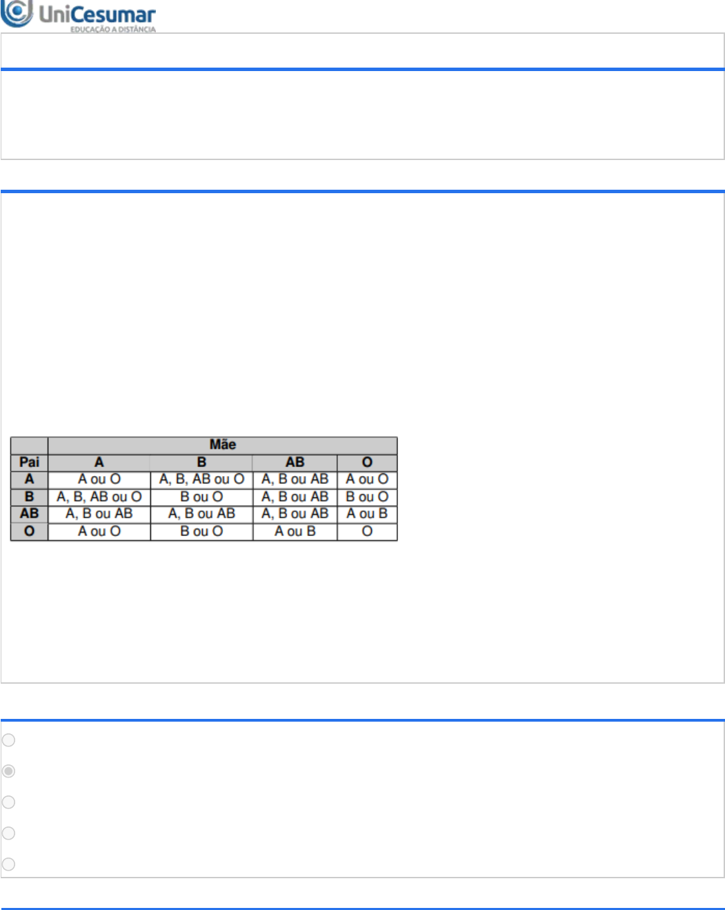 ATIVIDADE 3 - MAT - ESTATÍSTICA E PROBABILIDADE - 51_2025 Período:07/04/2025 08:00 a 27/04/2025 23:59 (Horário de Brasília) Status:ABERTO Nota máxima:0,50 Gabarito:Gabarito será liberado no dia 28/04/2025 00:00 (Horário de Brasília) Nota obtida: 1ª QUESTÃO Muitas teorias tentam explicar a razão de haver vários tipos sanguíneos. O mais provável, entretanto, é que uma característica genética evoluiu ao longo do tempo, como a cor dos cabelos ou dos olhos, sem que haja um tipo de sangue melhor ou pior. A diferença entre tais categorias é a presença de proteínas específicas nos glóbulos vermelhos, chamadas antígenos, as quais reconhecem os outros tipos de sangue e promovem uma reação rápida e que pode ser perigosa quando em contato com eles. Disponível em: https://bvsms.saude.gov.br/tipos-sanguineos/. Acesso em: 17 mar. 2025. Sobre os tipos sanguíneos, observe a tabela a seguir: Fonte: o autor. Na tabela anterior, estão as combinações de tipos sanguíneos que podem ocorrer em uma criança, de acordo com o tipo de sangue do pai e da mãe. Com base nas combinações, assinale a alternativa que demonstra corretamente a probabilidade de uma criança ter um tipo sanguíneo que seja apenas O. ALTERNATIVAS 3,25%. 6,25%. 9,00%. 12,25%. 15,00%. 2ª QUESTÃO Apesar do aumento dos métodos de login alternativos, as senhas ainda são o principal mecanismo de segurança para nossas contas on-line. Entretanto, muitas pessoas não tratam a segurança de suas senhas com a seriedade que deveriam. Isso é demonstrado perfeitamente pelo relatório anual de senhas produzido pela NordPass. No ranking das 200 senhas mais populares, foi constatado que ‘123456’ é a combinação mais popular em todo o mundo. É importante ressaltar que muitos dos dados para essa pesquisa são provenientes de senhas que foram comprometidas em violações de dados. Apesar de ser extremamente insegura, a sequência ‘123456’ tem sido a mais popular há quase uma década. Esperamos que, se você estiver lendo isso, não esteja usando ‘123456’ como sua senha. Disponível em: https://ibsec.com.br/a-importancia-de-senhas-fortes-e-de-uma-boa-gestao-de-senhas/. Acesso em: 17 mar. 2025. Refletido acerca da importância do uso de senhas, a tabela, a seguir, representa um teclado com números e letras para compor uma combinação: Fonte: o autor. A tecla que contém o número 2 traz as letras correlacionadas A, B e C. Cada toque nessa tecla mostra, sequencialmente, os seguintes caracteres: 2, A, B e C. Para os próximos toques, essa sequência se repete. As demais teclas funcionam da mesma maneira. João cadastrará uma senha que deve conter quatro caracteres, sendo dois algarismos (números) distintos seguidos de duas letras diferentes, nessa ordem. João cadastrará a sua primeira senha, podendo escolher entre as teclas que apresentam os números 1, 2, 5, 7 e 0 e as respectivas letras correlacionadas, quando houver. Assim, assinale a alternativa correta com o número de possibilidades diferentes que João tem para cadastrar sua senha. ALTERNATIVAS 28 possibilidades. 90 possibilidades. 500 possibilidades. 1000 possibilidades. 1800 possibilidades. 3ª QUESTÃO Um professor construiu o gráfico, a seguir, para representar o desempenho dos seus alunos em uma determinada avaliação. No esquema, tem-se associado o tempo de prova versus o número de alunos da seguinte maneira: Grupo 1 com dois alunos fez a prova no tempo de 20 a menos que 25 minutos; Grupo 2 com seis alunos fez a prova no tempo de 25 a menos que 30 minutos; Grupo 3 com 12 alunos fez a prova no tempo de 30 a menos que 35 minutos; e Grupo 4 com dez alunos fez a prova no tempo de 35 a menos que 40 minutos. Gráfico - Grupo versus número de alunos Fonte: o autor. Com base no gráfico e nas informações do texto, assinale a alternativa correta com o valor modal do tempo gasto pela turma para fazer a prova. ALTERNATIVAS 18,5 minutos. 22,5 minutos. 27,5 minutos. 32,5 minutos. 37,0 minutos. 4ª QUESTÃO O time de futsal da cidade de Irerê, pretende melhorar seu desempenho na conversão de gols, para isso fez um levantamento sobre a quantidade de gols convertida, por partida jogada, foram observados as últimas 50 partidas e o número de gols foram Nº DE GOLS 0 12 345 Nº DE PARTIDAS18710654 Com base nessas informações, avalie as afirmações a seguir. I. Em 36% das partidas observadas, o time não conseguiu marcar gols II. Em 70% das partidas observadas, o time converte no máximo 2 gols. III. Em 30% das partidas observadas, o time converte de 3 até 4 gols. É correto o que se afirma em: ALTERNATIVAS I, apenas. II, apenas. I e II, apenas. II e III, apenas. I, II e III. 5ª QUESTÃO Uma cerâmica fabrica tijolos de acordo com a norma de um grande cliente. A norma estabelece que os tijolos devem suportar, no mínimo, uma força de compressão média de 10 kg/cm e que o desvio padrão não deve ser superior a 5% da média. Num ensaio realizado em um lote de tijolos pelo Engenheiro da Qualidade do cliente, foram registrados os seguintes dados de uma amostra de 6 tijolos, para sua resistência, à compressão em kg/cm : 12; 11; 10; 9; 8,5 e 11,5. Fonte: Elaborado pelo professor. Nestas condições, o Engenheiro da Qualidade aprovará ou reprovará o lote de tijolos? ALTERNATIVAS Aprovará, pois a média da amostra é de exatamente 10 Kg/cm^2. Aprovará, pois o desvio padrão é menor que o limite exigido pela norma. Reprovará, pois a média entre os 6 tijolos não atende as especificações. Aprovará, pois todas as exigências em relação as normas são atendidas. Reprovará, pois o desvio padrão entre a amostra dos 6 tijolos é maior que os 5% permitidos em relação a média. 6ª QUESTÃO 2 2 Os números primos estão entre as ideias mais simples e mais misteriosas da matemática. A definição é simples: um inteiro n maior do que 1 é primo se ele admite apenas dois divisores, o próprio n e o 1. O modo como os primos se distribuem entre