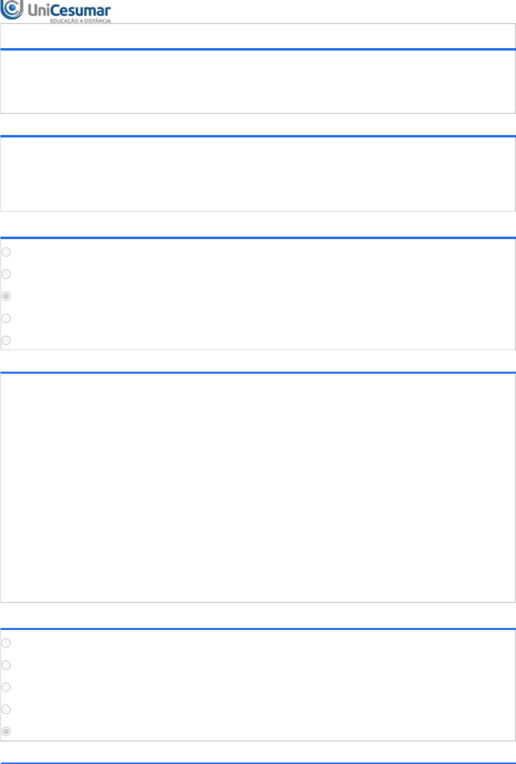 AVALIAÇÃO DIGITAL - ALFABETIZAÇÃO MATEMÁTICA Período:01/04/2025 08:00 a 30/04/2025 23:59 (Horário de Brasília) Status:ABERTO Nota máxima:10,00 Gabarito:Gabarito será liberado no dia 01/05/2025 00:00 (Horário de Brasília) Nota obtida: 1ª QUESTÃO O processo de construção numérica na infância é um processo gradual e individualizado, que se inicia muito antes da escolarização. Ao resgatar as concepções prévias das crianças sobre ações, o professor proporciona um aprendizado mais significativo e eficaz. Que ações são essas? Assinale a alternativa correta. ALTERNATIVAS Quantificar, dividir, subtrair, contar. Dividir, somar, subtrair, contar. Quantificar, somar, subtrair, contar. Quantificar, somar, subtrair, expressar. Dividir, somar, subtrair, expressar. 2ª QUESTÃO O processo de ensino e aprendizagem e o processo para a Alfabetização Matemática se constroem pautados em duas vertentes, que são os educandos e os educadores. Em relação ao processo de ensino e aprendizagem e a construção dos conhecimentos Matemáticos, analise as afirmativas abaixo: I- Um trabalho comunicativo e interdisciplinar em Matemática é prioridade. II- Aceitar o senso comum como base dos conhecimentos prévios. III- Cada educando traz consigo culturas e formas próprias de representar e organizar os fatos, cabendo à escola adaptar essa diversidade a realidade. IV- Possibilitar a preparação para o processo de Alfabetizar Matematicamente é atribuição do educador. É correto o que se afirma em: ALTERNATIVAS Somente I, III e IV. Somente I e II. Somente II e IV. Somente I, II e III. Todas as alternativas estão corretas. 3ª QUESTÃO 14/04/25, 09:58 Unicesumar - Ensino a Distância about:blank 1/10 A construção do processo da seriação é gradativa, intercalada por diversos fatores, passando por fases intermediárias. Em relação às fases evolutivas da seriação, analise as afirmativas: I- A criança agrupa os elementos sem nenhum ensaio de ordenação. II- A criança é capaz de realizar pequenas séries, mas sem uma organização dos elementos. III- A criança é capaz de intercalar objetos com êxito após várias tentativas. IV- A criança desenvolve a seriação operacional, ou seja, a seriação operacional é a compreensão e a extensão. É correto o que se afirma em: ALTERNATIVAS Somente I, III e IV. Somente II e IV. Somente I e III. Somente I, II e III. Todas as alternativas estão corretas. 4ª QUESTÃO Sabemos que existem inúmeros significados para a palavra sentido. Nesse sentido, com o olhar voltado para a aprendizagem Matemática, a palavra sentido parece estar cada vez mais presente nas preocupações dos professores sobre o ensino da matemática. Com relação ao que foi discutido por Panizza (2006) sobre significados adotados para a palavra sentido no Ensino da Matemática, leia as afirmativas a seguir e, em seguida, assinale a alternativa correta. I - A palavra \"sentido\" está relacionada à intenções, conquistas e frustrações. II - O sentido é algo que o docente dá ou o aluno constrói em condições quaisquer. III - O significado, geralmente, atribuído ao termo \"sentido\" não apresenta clareza e, inclusive, pode conter muitas distinções e contradições. IV - O termo \"dar sentido ao que fazem\" é frequentemente utilizado por professores de matemática, que estão sempre cientes de seu significado. ALTERNATIVAS Somente as afirmativas I e III estão corretas. Somente as afirmativas II e IV estão corretas. Somente as afirmativas I e IV estão corretas. Somente as afirmativas II e III estão corretas. Todas as afirmativas estão corretas. 5ª QUESTÃO 14/04/25, 09:58 Unicesumar - Ensino a Distância about:blank 2/10 Em se tratando de conceito alfabetização Matemática, podemos relacionar com a linguagem matemática com suas infinitas representações simbólicas e conceituais. Nesta perspectiva, assinale a alternativa correta: ALTERNATIVAS O despertar do raciocínio lógico deve acompanhar o desenvolvimento corporal da criança. A medida em que a criança mecaniza sobre determinado assunto matemático, seu cérebro vai arquivando e codificando conhecimentos que serão utilizados ao longo da vida. O processo de codificação só acontece se a criança conseguir relacionar a teoria com a prática. As informações adquiridas pelos meios são etapas do processo de memorização do conhecimento. Nenhuma das demais opções apresentadas está correta. 6ª QUESTÃO Segundo Kamii (1986), muitas crianças hoje demoram a raciocinar qual número representa determinada quantidade. Muitos aprendem de maneira mecânica, apenas decorando sequências, mas sem ter o conceito. Diante desse posicionamento, assinale a alternativa correta que indica o papel do professor nesse processo. ALTERNATIVAS O professor precisa transcrever livremente o seu pensar matemático, intervindo no processo como um problema. O professor precisa criar um espaço para transcrever livremente o seu pensar matemático, intervindo no processo como um problema. O professor apenas realiza a intervenção no processo como um problema. O professor precisa criar um espaço para que o alfabetizando possa transcrever livremente o seu pensar matemático, intervindo no processo como um problema. Nenhuma das demais opções apresentadas está correta. 7ª QUESTÃO A educação infantil é fundamental para o desenvolvimento da comunicação e da oralidade nas crianças, o que favorece a socialização e estimula o aprendizado da matemática. As primeiras manifestações da escrita surgem a partir de experiências lúdicas e da expressão oral. Com base nos estudos realizados, qual das afirmativas a seguir melhor representa a ideia de Smole? I- Ouvir, falar, ler, escreve e desenhar são competências básicas para que os alunos aprendam conceitos em qualquer tempo. II- Interagir uns com os outros para que desenvolvam uma melhor compreensão das noções envolvidas em uma dada atividade. III- Qu