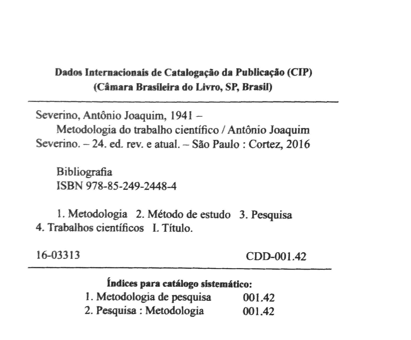 Dados Internacionais de Catalogação da Publicação (CIP) (Câmara Brasileira do Livro, SP, Brasil) Severino, Antônio Joaquim, 1941 - Metodologia do trabalho científico / Antônio Joaquim Severino. - 24. ed. rev. e atual. - São Paulo : Cortez, 2016 Bibliografia ISBN 978-85-249-2448-4 1. Metodologia 2. Método de estudo 3. Pesquisa 4. Trabalhos científicos I. Título. 16-03313 CDD-001.42 Índices para catálogo sistemático: 1. Metodologia de pesquisa 001.42 2. Pesquisa : Metodologia 001.42Metodologia do Trabalho 53 2.2. LEITURA E DOCUMENTAÇÃO 2.2.1. Diretrizes para a leitura, análise e interpretação de textos Os maiores obstáculos do estudo e da aprendizagem, em ciência e em filosofia, estão diretamente relacionados com a correspon- dente dificuldade que o estudante encontra na exata compreensão dos textos teóricos. Habituados à abordagem de textos literários, os estudantes, ao se defrontarem com textos científicos ou filo- sóficos, encontram dificuldades logo julgadas insuperáveis e que reforçam uma atitude de desânimo e de desencanto, geralmente acompanhada de um juízo de valor depreciativo em relação ao pensamento Em verdade, os textos de ciência e de filosofia apresentam obs- táculos específicos, mas nem por isso insuperáveis. É claro que não se pode contar com os mesmos recursos disponíveis no estudo de textos cuja leitura revela uma sequência de raciocínios e o enredo é apresentado dentro de quadros referenciais fornecidos pela imaginação, onde se compreende o desenvolvimento da ação descrita e percebe-se logo o encadeamento da história. Por isso, a leitura está sempre situada, tornando-se possível entender, sem maiores problemas, a mensagem transmitida pelo autor. No caso de textos de pesquisa positiva, acompanha-se o racioci- nio já mais rigoroso seguindo a apresentação dos dados objetivos sobre os quais tais textos estão fundados. Os dados e fatos levantados pela pesquisa e organizados conforme técnicas específicas às várias ciências permitem ao leitor, devidamente iniciado, acompanhar o encadeamento lógico destesDiante de exposições teóricas. como em geral são as encontradas textos e em textos relativos a pesquisas tea ricas, em em que o raciocínio é quase sempre dedutivo, a imaginação e a experiência objetiva não são de muita valia. Nestes casos, conta-se tão somente com as possibilidades da razão reflexiva, que exige muita ciplina intelectual para que a mensagem possa ser compreendida com devido proveito e para que a leitura se torne menos insípida. Na realidade, mesmo tratando-se de assuntos abstratos, para leitor em condições de "seguir fio da a leitura torna-se agradável e. sobretudo, proveitosa. Por isso é preciso criar condições de abordagem e de inteligibilidade do texto, aplicando alguns recursos que, apesar de não substituírem a capacidade de intuição do leitor na apreen- são da forma lógica dos raciocínios em jogo, ajudam muito na análise e interpretação dos textos. Todo texto é portador de uma mensagem, concebida e codificada por um e destinada a um leitor, que, para Antes de abordar as diretrizes para a leitura e análise de textos, reco- menda-se atentar para a função destes em termos de uma teoria geral da estabelecendo-se assim algumas justificativas psicológicas e epistemológicas fundamentais para a adoção destas normas metodológi- cas e técnicas, tanto para a leitura como para a redação de textos. Embora sem aprofundar a questão do significado e função do tex- to neste nível, que ultrapassaria os objetivos deste trabalho, serão apre- sentadas aqui algumas considerações para encaminhar a compreensão dos vários momentos do trabalho Pode-se partir da consideração de que a comunicação se dá quan- do da transmissão de uma mensagem entre um emissor e um receptor. 1 Essas considerações são válidas também para a elaboração da monografia científica, entendida como um trabalho de codificação de uma mensagem. Cf. especialmente Cap. 4.Metodologia do Trabalho 55 emissor transmite uma mensagem que é captada pelo receptor. Este é o esquema geral apresentado pela teoria da Para fins didáticos, pode-se desdobrar este esquema, que for- necerá mais elementos para a compreensão da origem e finalidade de um texto. Com efeito, considera-se emissor como uma consciência que transmite uma mensagem para outra consciência que é receptor. Por- tanto, a mensagem será elaborada por uma consciência e será igual- mente assimilada por outra Deve ser, antes de mais nada, pensada e depois transmitida. Para ser transmitida, porém, deve ser an- tes mediatizada, já que a comunicação entre as consciências não pode ser feita diretamente; ela pressupõe sempre a mediatização de sinais simbólicos. Tal é, com efeito, a função da linguagem. Assim sendo, texto-linguagem significa, antes de tudo, meio intermediário pelo qual duas consciências se comunicam. Ele é o código que cifra a mensagem. Ao escrever um texto, portanto, autor (o emissor) codifica sua mensagem que, por sua vez, já tinha sido pensada, e lei- tor (o receptor), ao ler um texto, decodifica a mensagem do autor, para então pensá-la, assimilá-la e personalizá-la, compreendendo-a: assim se completa a comunicação. Em todas as fases desse processo, homem, dada sua condição existencial de empiricidade e liberdade, sofre uma série de interferências pessoais e culturais que em risco a objetividade da comunicação. É por isso que se fazem necessárias certas precauções que garantam maior grau de objetividade na interpretação dessa comunicação. 2 Para maior aprofundamento conceitual dos diversos aspectos gramaticais da comunicação, con- sultar DANCE, F. E. (org.) Teoria da comunicação São Paulo: Cultrix, 1973 3 pensamento é um processo de ordem epistemológica muito complexo. Outros pormenores são apresentados na seção 2.3.Elaboração Leitura do trabalho do texto Emissor Mensage