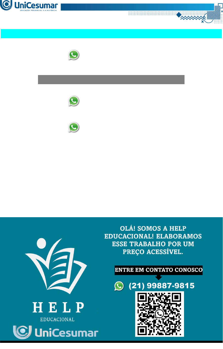 MAPA – MAT - ESTATÍSTICA E PROBABILIDADE - 51_2025 (21) 99887-9815 ASSESSORIA NOS SEUS TRABALHOS (21) 99887-9815 (21) 99887-9815 "Conhecimentos estatísticos são fundamentais para o Engenheiro, pois seus fundamentos estão presentes em outras disciplinas e, consequentemente, no seu trabalho. Algumas das áreas de aplicação são: qualidade, simulação e planejamento, e controle da produção. [...] Adicionalmente, também usam-se princípios de probabilidade e estatística na medição de erros de previsão e em modelos probabilísticos de inventário" (Dias, 2023). Fonte: DIAS, J. A importância da Estatística na Engenharia de Produção. Engenharia360, [s. l.], 2015 atualizado em 2023. Disponível em: https://engenharia360.com/importancia-da-estatistica-na-engenharia-de-producao/. Acesso em: 26 fev. 2025. Criada em 1979, a Associação Brasileira das Indústrias Exportadoras de Carnes (ABIEC) reúne 43 empresas do setor no país, responsáveis por 98% da carne negociada para mercados internacionais. Atualmente, o Brasil exporta cerca de 25% da carne bovina produzida aqui no país, negociada para centenas de países em todo o mundo, seguindo os mais rigorosos padrões de qualidade para atender às demandas do mercado. Fonte: https://www.abiec.com.br/. Acesso em: 26 fev. 2025. Com relação à exportação de carnes, os gráficos a seguir apresentam a evolução do abate de bovinos e da participação de machos e fêmeas, por trimestre (indicado por algarismo romano), segundo informações obtidas pelo IBGE. Figura 1 - Evolução abates Fonte: https://estrategia-prod-questoes.s3.amazonaws.com/images/8F648FEA-DEA4-B6ED-1487-F9C445367F80/8F648FEA-DEA4-B6ED-1487-F9C445367F80-400.png. Acesso em: 07 mar. 2025 Figura 2 - Evolução da participação de machos e fêmeas Fonte: https://estrategia-prod-questoes.s3.amazonaws.com/images/FABB5BFD-9302-0F84-C901-451125F61EF1/FABB5BFD-9302-0F84-C901-451125F61EF1-400.png. Acesso em: 07 mar. 2025. A partir dos dados observados nos gráficos, responda: a) Qual é a diferença entre as informações mencionadas no gráfico 1 e no gráfico 2? b) Qual é o período da maior quantidade de cabeças de gado abatidas? E quando foi? c) Qual é a quantidade de fêmeas no período de maior quantidade de cabeças de gado abatidas? Apresente os cálculos d) O abate de gado foi sempre crescente? Justifique sua resposta. e) Qual é a diferença entre o número de machos e o número de fêmeas abatidas no primeiro trimestre de 2021? Apresente os cálculos. f) Qual é a média de abate de bovinos no primeiro trimestre, considerando os valores de abate no primeiro trimestre de cada ano nos períodos mencionados no gráfico? Interprete o resultado. g) Qual é a mediana de abate de bovinos no primeiro trimestre, considerando os valores de abate no primeiro trimestre de cada ano nos períodos mencionados no gráfico? Interprete o resultado. h) Existe algum valor modal para o abate de bovinos, considerando-se os valores de abate no primeiro trimestre de cada ano nos períodos mencionados no gráfico? Se existir, qual é o valor? Interprete o resultado i) Entre os anos de 2019 a 2023 (inclusive), selecionando um trimestre aleatoriamente, qual é a probabilidade de o trimestre selecionado ser um número ímpar e ter a maior quantidade de bovinos abatidos no seu respectivo ano? OBSERVAÇÃO: para maior facilidade na execução dessa atividade, a seguir, apresentamos mais detalhes sobre a sua realização: I. Leia com atenção as informações contidas aqui e procure outras informações sobre o assunto que agreguem à sua atividade. II. No MATERIAL DA DISCIPLINA, encontra-se disponível um Template para a elaboração da atividade. III. Seu texto deve ser escrito na fonte Times New Roman ou Arial, com tamanho de letra 12. Não se esqueça de apresentar todos os cálculos realizados (apenas fotografias dos cálculos não serão aceitas!). IV. Realize uma cuidadosa revisão em sua atividade e anexe o arquivo nela, clicando sobre o botão "Selecionar Arquivo". Atente-se, pois o ambiente aceita apenas um arquivo. V. Após anexar o trabalho e se certificar de que se trata do arquivo correto, clique no botão "Responder" e, posteriormente, em "Finalizar Questionário" (após finalizar o questionário, não será possível reenviar a atividade ou realizar qualquer modificação no arquivo enviado). OLÁ! SOMOS A HELP EDUCACIONAL! ELABORAMOS ESSE TRABALHO POR UM PREÇO ACESSÍVEL. ENTRE EM CONTATO CONOSCO (21) 99887-9815 image4.jpeg image1.png image2.png image3.png image5.png