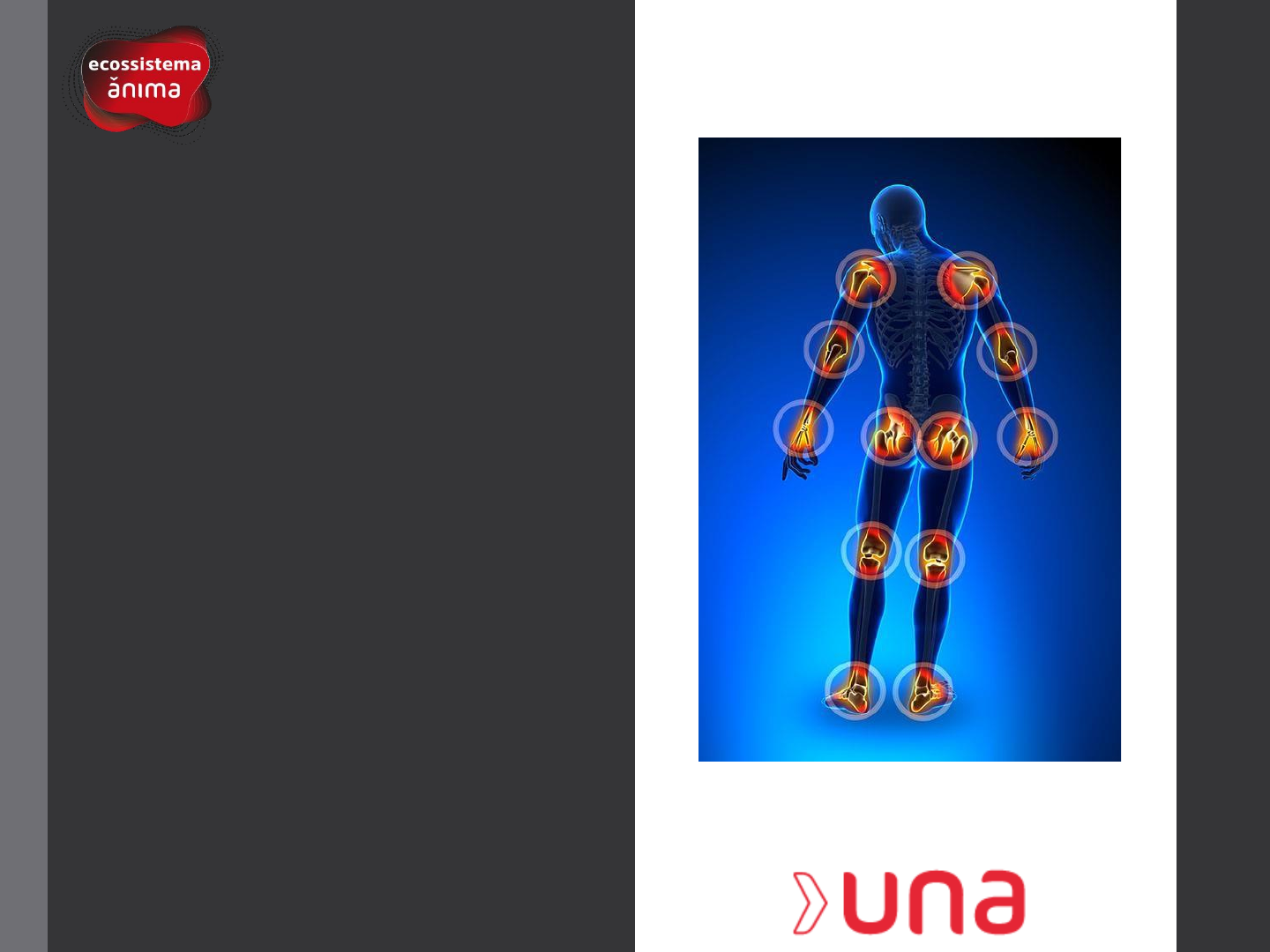 Sistema Articular e Ligamentar Biossistemas do Corpo Humano Profa. Aline Santos maria.aline@ulife.com.br O B J E T I V O S D E A P R E N D I Z A G E M • Compreender a função do sistema articular. • Compreender aos tipos articulações e seus funções. • Compreender a função do sistema ligamentar. F U N Ç Õ E S DAS ARTICULAÇÕES • União entre os Ossos • Mobilidade • Funcionalidade F U N Ç Õ E S DAS ARTICULAÇÕES • O grau de mobilidade das articulações depende de fatores como: • A forma como os ossos se articulam; • Pela flexibilidade dos ligamentos que mantém os ossos unidos; • Pela tensão dos músculos e tendões associados. Baseada no tecido de conexão entre os ossos. •Fibrosa: ausência de cavidade articular, sendo os ossos mantidos juntos por um tecido conjuntivo fibroso. •Cartilaginosa: ausência de cavidade articular, sendo os ossos conectados por cartilagem. • Sinovial: o principal meio de união entre as superfícies articulares é a cavidade articular, que possui líquido sinovial. CLASSIFICAÇÃO ESTRUTURAL CLASSIFICAÇÃO DAS ARTICULAÇÕES Estrutural Funcional Sinartrose (“imóvel”) Anfiartrose (semimóvel) Diartrose (móvel) Fibrosa (Tec. Conj. Fibroso) Cartilaginosa (Cartilagem) Sinovial (Cavidade – Líq. Sinovial) CLASSIFICAÇÃO FUNCIONAL Sinartrose: Ossos do crânio do adulto, dentes. Anfiartrose: Porção distal do rádio e da ulna ou da tíbia e da fíbula; ossos do crânio em crianças. Diartrose: Dedos, joelho, ombro, punho. Funcional Sinartrose (“imóvel”) Anfiartrose (semimóvel) Diartrose (móvel) CLASSIFICAÇÃO ESTRUTURAL Fibrosa (Tec. Conj. Fibroso) Cartilaginosa (Cartilagem) Sinovial (Cavidade – Líq. Sinovial) Estrutural Fibrosas: Divididas em suturas, gonfoses e sindesmoses. São as sinartroses. Cartilaginosas: Divididas em sincondroses e sínfises. São as anfiartroses. Sinoviais: São as diartroses ARTICULAÇÕES FIBROSAS Não há cavidade articular e os ossos são mantidos juntos por denso não modelado tecido conjuntivo (rico em fibras colágenas). S U T U R A G O N F O S E S I N D E S M O S E FIBROSAS (SINARTROSES) SUTURAS • (Crânio e Face) São articulações fibrosas formadas por uma fina camada de tecido conjuntivo denso não modelado, cuja função é unir os ossos do crânio e limitar os movimentos. Planas Serreadas Escamosas FIBROSAS (SINARTROSES) SUTURAS Planas Internasal Intermaxilar Interpalatina Serreadas FIBROSAS (SINARTROSES) SUTURAS Coronal (Frontoparietal) Sagital (Interparietal) Lambdóide (Occipitoparietal) Escamosa FIBROSAS (SINARTROSES) SUTURAS Escamosa (Parieto-Temporal) Esfeno-Temporal Crânio do Feto e Recém-nascido: Maior Mobilidade Fontanelas Crânio na Idade Avançada: Diminui a elasticidade Ossificação do tecido fibroso Nos recém nascidos e lactantes, a sutura classifica-se como anfiartrose. FIBROSAS (SINARTROSES) SUTURAS • G O N F O S E S O tecido fibroso do ligamento periodontal segura firmemente o dente no seu alvéolo. A presença de movimentos nesta articulação significa uma condição patológica. FIBROSAS (SINARTROSES) G O N F O S E S FIBROSAS (SINARTROSES) SIN DE SM O SE • S I N D E S M O S E Existe uma distância maior entre as superfícies articulares e mais tecido conjuntivo do que em uma sutura. Ele está organizado em um feixe (ligamento) e permite um grau mínimo de mobilidade. Ligamento interósseo ou Membrana interóssea Sindesmose rádio-ulnar Sindesmose tíbio-fibular ARTICULAÇÕES CARTILAGINOSAS • Os ossos são firmemente conectados por fibrocartilagem ou cartilagem hialina. Funcionalmente, classificam-se como anfiartroses (levemente móveis). S I N C O N D R O S E S Í N F I S E CARTILAGINOSAS (ANFIARTROSE) SINCONDROSE • S I N C O N D R O S E • o material de conexão é a cartilagem hialina. Sincondrose temporária E p i f i s e – cartilagem de crescimento CARTILAGINOSAS (ANFIARTROSE) SÍNFISES • S Í N F I S E S • Os ossos são conectados por um disco largo e plano de fibrocartilagem: suporta altas pressões! Sínfise Púbica Sínfise Intervertebral ARTICULAÇÕES SINOVIAIS Apresenta cavidade articular (sinovial) e permite amplo movimento articular. Portanto, funcionalmente classifica-se como diartrose. Cartilagem articular (tipo hialina) Cápsula Articular (Membrana Sinovial) Cavidade Articular (Líquido Sinovial) Articulações Sinoviais O elemento que se interpõem entre as estruturas é o líquido sinovial, ou a sinóvia; Nas articulações sinoviais, o principal meio de união é representado pela cápsula articular. Junturas sinoviais: SINOVIAIS (DIARTROSES) Cápsula articular: Envolve as extremidades articulares como um manguito. Elementos: Membrana fibrosa (externa): reforçada por ligamentos, que estabilizam e reforçam a articulação. Membrana sinovial (interna): produz o líquido sinovial - substância que lubrifica as superfícies articulares. ESTRUTURAS DAS ARTICULAÇÕES SINOVIAIS • Ligamentos • Formações cartilaginosas (discos, meniscos e labrum) • Bolsas ou Bursas sinoviais • Corpos adiposos articulares LIGAMENTOS Constituídos por fibras colágenas dispostas paralelamente ou intimamente entrelaçadas umas as outras. Os ligamentos são fortes, resistentes e inelásticos (não cedem facilmente à ação de forças.) LIGAMENTOS • Ligamentos situados fora da cápsula articular (fixados na porção fibrosa da cápsula articular). • Ligamentos independentes da cápsula articular (intra-articulares). Ligamento cruzado anterior Ligamento colateral lateral Ligamento cruzado posterior Ligamento colateral medial LIGAMENTOS - J O E L H O ▪ Ligamento colateral lateral e colateral medial ▪ Ligamento da patela (tendão patelar) ▪ Ligamento cruzado anterior e cruzado posterior Ligamento cruzado anterior Ligamento colateral lateral Ligamento cruzado posterior Ligamento colateral medial LIGAMENTOS - OMBRO ▪ Ligamento coracoumeral, coracoacromial ▪ Ligamento transverso superior da escápula FORM AÇÕE S CA