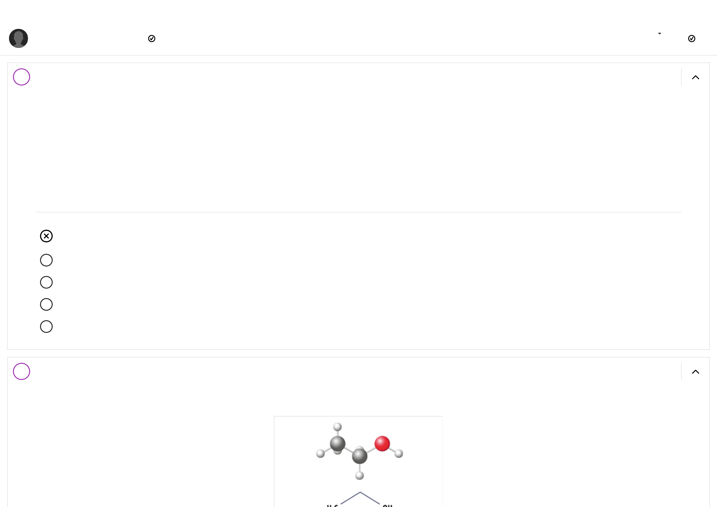 Atividade de Autoaprendizagem 3 1 MÚLTIPLA ESCOLHA INCORRETO 0 / 0 2 MÚLTIPLA ESCOLHA INCORRETO 0 / 0 Leia o excerto a seguir: “Atualmente estamos produzindo CO2 muito mais rapidamente do que ele tem sido absorvido. Químicos tem monitorado as concentrações de CO2 atmosférico desde 1958. A análise do ar confinado no gelo da Antártida e Groenlândia possibilita determinar os níveis atmosféricos de CO2 durante os últimos 160 mil anos. Essas medições revelam que o nível de CO2 permaneceu razoavelmente constante desde o último período glacial, cerca de 10 mil anos atrás, até aproximadamente o início da revolução industrial, cerca de 300 anos atrás. Desde então, a concentração de CO2 aumentou por volta de 25%.” Fonte: BROWN, T. L.; LEMAY H. E.; BURSTEN, B. E. Química: a ciência central. 9. ed. São Paulo: Pearson Universidades, 2012. p. 88. Considerando essas informações e o conteúdo estudado sobre a cálculos estequiométricos a partir de equações balanceadas, analise as asserções a seguir e a relação proposta entre elas: I. A reação de combustão na presença de excesso de oxigênio da gasolina, composta principalmente por octano e seus isômeros (C8H18), produz mais CO2 comparado à combustão do etanol (C2H5OH). Porque: II. A relação estequiométrica entre a massa de CO2 e a massa de combustível na combustão da gasolina é maior do que na combustão do etanol. A seguir, assinale a alternativa correta: Incorreta: A asserção I é uma proposição falsa, e a II é uma proposição verdadeira. B A asserção I é uma proposição falsa, e a II é uma proposição verdadeira. C A asserção I é uma proposição verdadeira, e a II é uma proposição falsa. D As asserções I e II são proposições verdadeiras, mas a II não é uma justificativa correta da I. E Resposta corretaAs asserções I e II são proposições verdadeiras, e a II é uma justificativa correta da I. As substâncias ou compostos químicos podem ser representados de diversas formas para facilitar sua identificação. Por exemplo, a partir do modelo tridimensional de esferas e bastões, conforme ilustrado na figura a seguir, pode-se reconhecer que tal composto é um já bem conhecido solvente orgânico obtido, em geral, pela fermentação de açúcares e amplamente utilizado como combustível para veículos. RECIBO: 2D91799A3A674C25AAB3D92D25DB8E9E TENTATIVA 3/5 (ENVIADA EM 21/04/25 19:18)Nota final Tentativa com a nota mais alta 3 MÚLTIPLA ESCOLHA INCORRETO 0 / 0 Considerando essas informações e o conteúdo estudado sobre fórmulas mínimas e fórmulas moleculares, pode-se afirmar que: A Resposta corretase trata da molécula do etanol, cuja fórmula molecular é C2H6O, tendo a mesma fórmula como fórmula empírica ou mínima. B a molécula apresentada é do álcool metílico, cuja fórmula molecular pode ser representada por C2H6O e a fórmula empírica por CHO. C a molécula em questão é o etanol e a obtenção desse álcool se refere à hidratação do metanol ou do gás metano em altas temperaturas. D a molécula corresponde ao álcool etílico e sua fórmula mínima do pode ser representada como CH3OH ou CH4O. E se trata da molécula de gás etílico que possui como fórmula empírica e molecular a fórmula química C2H5OH. Leia o trecho a seguir: “A massa em gramas de 1 mol de certa substância (isto é, a massa em gramas por mol) é chamada de massa molar. A massa molar (em g/mol) de uma substância é sempre numericamente igual a sua massa molecular (em u). O NaCl, por exemplo, tem massa molar de 58,5 g/mol.” Fonte: BROWN, T. L.; LEMAY H. E.; BURSTEN, B. E. Química: a ciência central. 9. ed. São Paulo: Pearson Universidades, 2012. p. 79. Considerando essas informações e o conteúdo estudado sobre os conceitos de mol, massa molar e fração molar, analise as afirmat I. A massa atômica do nitrogênio molecular (N2(g)) é de 14 u. II. O íon de prata tem massa atômica de 107,9 u. A I, III e IV. 4 MÚLTIPLA ESCOLHA INCORRETO 0 / 0 5 MÚLTIPLA ESCOLHA INCORRETO 0 / 0 B III e V. C IV e V. D I, II e IV. E Resposta corretaII e V. Leia o excerto a seguir: “Um reagente limitante é como uma parte em uma fábrica de motocicletas. Imagine que só existem oito rodas e sete chassis de motos. Como cada chassi requer duas rodas, só existem rodas suficientes para quatro motos. Em outras palavras, as rodas fazem o papel de reagente limitante. Quando todas as rodas forem usadas, três chassis permanecerão sem uso porque há chassis em excesso.” Fonte: ATKINS, P. W.; JONES, L. Princípios de química: questionando a vida moderna e o meio ambiente. 5. ed. Porto Alegre: Bookman, 2012. p. F96. Considerando essas informações e o conteúdo estudado sobre reagente limitante, analise as asserções a seguir e a relação proposta entre elas: I. Na reação de 100 g carbeto de cálcio (CaC2) com 100 g água para formar hidróxido de cálcio e gás acetileno, o CaC2 é o reagente limitante. Porque: II. A razão molar da reação indica que a quantidade de H2O presente é duas vezes a de CaC2. A seguir, assinale a alternativa correta: A A asserção I é uma proposição verdadeira, e a II é uma proposição falsa. B As asserções I e II são proposições verdadeiras, e a II é uma justificativa correta da I. C As asserções I e II são proposições falsas. D A asserção I é uma proposição falsa, e a II é uma proposição verdadeira. E Resposta corretaAs asserções I e II são proposições verdadeiras, mas a II não é uma justificativa correta da I. Os aspectos quantitativos de uma reação podem ser abordados em estequiometria com o intuito de se delimitar a quantidade de reagente(s) envolvido(s) na formação do(s) produtos(s). A utilização de fórmulas químicas (fórmula molecular, mínima e/ou centesimal), representando cada substância, permite que sejam relacionadas as proporções volumétricas que tal substância precisará na reação química. Consi