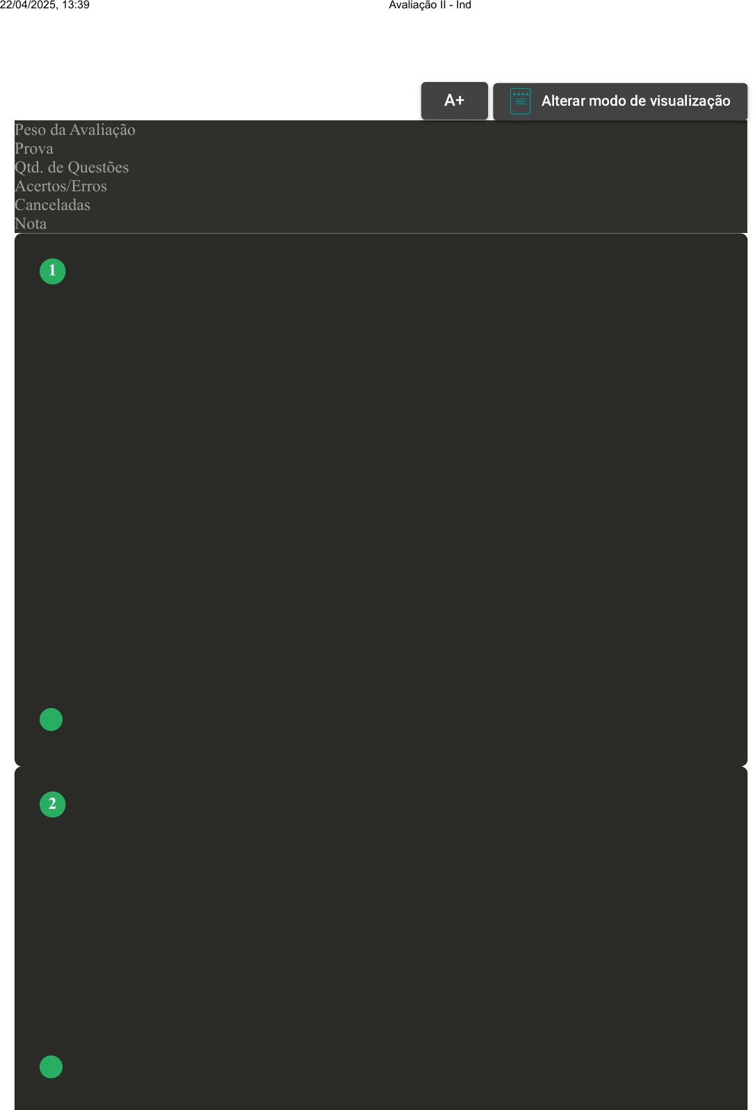 Prova Impressa GABARITO | Avaliação II - Individual (Cod.:741661) Peso da Avaliação 1,50 Prova 47378043 Qtd. de Questões 10 Acertos/Erros 6/2 Canceladas 2 Nota 8,00 Dentre os tipos de conhecimento, nos deparamos com o conhecimento científico, que se confronta diretamente com o senso comum, pois o científico tem um caráter objetivo, enquanto o senso comum é subjetivo, ou seja, carece de um método objetivo que estabeleça critérios de validade. Com relação ao conhecimento científico, classifique V para as sentenças verdadeiras e F para as falsas: ( ) No conhecimento científico, os métodos estão em segundo plano, pois o que vale é a autoridade subjetiva do cientista. ( ) O conhecimento científico se caracteriza pelo fato de o ponto de vista pessoal ceder lugar à observação imparcial. ( ) O conhecimento científico segue rigorosamente os métodos de pesquisa, buscando a maior exatidão possível em seus resultados. ( ) Centra-se no objeto da pesquisa, pois seu método não se assenta nas opiniões particulares do observador. Assinale a alternativa que apresenta a sequência CORRETA: A F - V - F - F. B V - F - F - V. C V - V - F - F. D F - V - V - V. No que concerne ao idealismo trascendental, temos várias questões associadas. Sobre esse tema, assinale a alternativa CORRETA: A Idealismo transcendental é a teoria do não conhecimento desenvolvida por Immanuel Kant. B Idealismo transcendental é a leitura do conhecimento desenvolvida por Immanuel Kant. C Idealismo transcendental é a teoria do conhecimento desenvolvida por Immanuel Kant. VOLTAR A+ Alterar modo de visualização 1 2 22/04/2025, 13:39 Avaliação II - Individual about:blank 1/6 D Idealismo transcendental é a teoria do conhecimento não desenvolvida por Immanuel Kant. Como qualquer outra área da Filosofia, a estética possui objetos específicos de estudo, como a questão do feio e do belo, nesse caso. Embora haja muita discussão sobre a caracterização de uma coisa, uma arte, um objeto etc. como feio ou bonito, a estética busca fazer a avaliação de maneira mais profunda, a fim de estabelecer os critérios. Sobre o feio e o belo, assinale a alternativa CORRETA: A A ética é a filosofia moral ou pensamento filosófico acerca da moralidade dos problemas morais e dos juízos imorais. B A estética normativa procura pela objetividade do belo ao adotar regras tendo como base a concepção racionalista da arte. C O filósofo inglês David Hume se posiciona contrariamente à concepção racionalista do belo, pois, para ele, a beleza está relacionada diretamente às regras objetivas da razão para avaliação do que é o belo. D Para os racionalistas, o belo é plenamente subjetivo, ou seja, depende da concepção racional de cada sujeito. A finalidade da bioética é refletir sobre os problemas da existência humana a partir de uma perspectiva mais humanista e menos científico-tecnicista. É pensar sobre a vida em sua totalidade. Sobre esse tema, assinale a alternativa CORRETA: A O terceiro grupo de técnicas é o que diz respeito ao comportamento do homem em relação à natureza e visa à produção e acúmulo de bens e à degradação da natureza. B A ética e a técnica discutem a moralidade de determinadas técnicas utilizadas em nossa sociedade para chegarmos aos objetivos desejados. 3 Revisar Conteúdo do Livro 4 22/04/2025, 13:39 Avaliação II - Individual about:blank 2/6 C A discussão das técnicas de melhoramento humano impactam indiretamente na competitividade egoísta entre as pessoas. D A técnica é uma forma de dominação e manipulação dos indivíduos e exploração da humanidade. Atenção: Esta questão foi cancelada, porém a pontuação foi considerada. (IBADE 2017 - adaptado) Uma certa caracterização de Hobbes assinala que ele “analisa” a natureza sob certa perspectiva. Qual é essa perspectiva? A Materialista. B Idealista. C Otimista. D Mecanicista. Compreender os conceitos fundamentais da lógica formal é um princípio elementar no estudo desta área da filosofia. Nesse sentido, é fundamental que o estudante de filosofia compreenda tais conceitos a fim de se utilizar deles ao analisar o conteúdo e a forma dos argumentos. Partindo disso, analise as sentenças a seguir: I- O termo é um conceito na lógica formal que implica na finalização de um enunciado. II- O argumento é um conceito que trata de uma coleção de enunciados que estão relacionados uns com os outros. III- Proposições categóricas são compostas por um sujeito, um verbo de ligação e um predicado, que afirmam algo sobre duas classes incluindo ou excluindo, total ou parcialmente uma classe da outra. IV- Silogismo é o argumento que é composto de uma premissa maior, uma menor e a conclusão. Assinale alternativa CORRETA: A As sentenças II, III e IV estão corretas. B Somente a sentença IV está correta. 5 Revisar Conteúdo do Livro 6 22/04/2025, 13:39 Avaliação II - Individual about:blank 3/6 C Somente a sentença III está correta. D As sentenças I e II estão corretas. A maneira como o sujeito conhece o mundo depende de como ele está posicionado frente ao objeto conhecido. Assim, podemos afirmar que existem diferentes tipos de conhecimento, pois os sujeitos estão posicionados ou se posicionam conscientemente frente ao objeto conhecido. Sobre os tipos de conhecimento, assinale a alternativa CORRETA: A Por ser impreciso, o conhecimento científico indica que segue rigorosamente os métodos da pesquisa para obter resultados exatos, embora não sejam resultados infalíveis, pois tal conhecimento é dinâmico por natureza, sempre deixando possibilidades para novas descobertas. B O conhecimento mítico ou religioso pode ser entendido como um tipo conhecimento baseado na sensibilidade religiosa de perceber o mundo em sua volta e expressá-lo de uma forma não comum. C O conhecimento filosófico se difere do senso comum ou popular, porque nasce a partir das reflexões que o ser humano faz sobre q