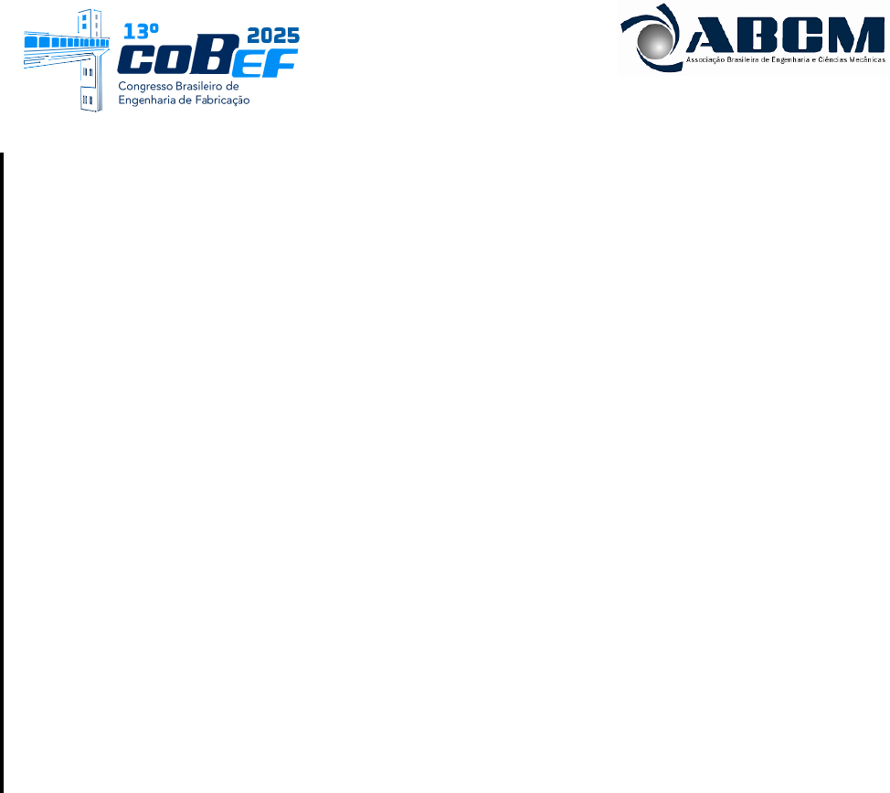 13º Congresso Brasileiro de Engenharia de Fabricação 7 a 9 de maio de 2025, Salvador, BA, Brasil COMPORTAMENTO DE PARÂMETROS DE RUGOSIDADE DO AÇO VP100 APÓS A RETIFICAÇÃO PLANA COM REBOLO DE ÓXIDO DE ALUMÍNIO BRANCO Victor Tallis Bazon, victorbazon@ufu.br1 Rosemar Batista da Silva, rosemar.silva@ufu.br1 1Universidade Federal de Uberlândia, Faculdade de Engenharia Mecânica, Avenida João Naves de Ávila, 2121, Uberlândia, MG, 38400-89, Brasil - Laboratório de Ensino e Pesquisa em Usinagem (LEPU) Resumo: Os plásticos são amplamente utilizados na indústria, exigindo moldes com geometrias complexas e materiais de alta dureza. Para garantir a qualidade dos produtos, esses moldes demandam um acabamento superficial de alta precisão, tornando essencial o entendimento dos processos de usinagem. A retificação é amplamente empregada para obter alta precisão dimensional e rigorosas tolerâncias geométricas, sendo os resultados dependentes da seleção adequada das condições de corte. Este estudo avaliou a rugosidade (𝑅𝑎 e 𝑅𝑡) do aço VP100 após retificação plana tangencial com rebolo de Óxido de Alumínio Branco (AA46K8V). Foram analisados os efeitos da velocidade da peça (𝑣𝑤: 2,7 e 7,5 m/min) e da penetração de trabalho (𝑎𝑒: 10 e 30 µm). Os menores valores de rugosidade ocorreram com menor penetração de trabalho. Para 𝑅𝑎, reduções de 23,53 % (𝑣𝑤 = 2,7 m/min) e 16,98 % (𝑣𝑤 = 7,5 m/min) foram observadas. Para 𝑅𝑡, as reduções foram de 49,55 % (𝑣𝑤 = 2,7 m/min) e 0,77 % (𝑣𝑤 = 7,5 m/min). Ao aumentar a velocidade da peça, houve diminuição de 𝑅𝑎 em 15,38 % (𝑎𝑒 = 10 µm) e 22,06 % (𝑎𝑒 = 30 µm). Para 𝑅𝑡, houve um aumento de 17,77 % (𝑎𝑒 = 10 µm, com alto desvio padrão) e redução de 38,18 % (𝑎𝑒 = 30 µm). A análise regional mostrou maior rugosidade na entrada da peça em comparação à saída, com aumentos de 𝑅𝑎 de 8,82 % (𝑣𝑤 = 2,7 m/min) e 17,65 % (𝑣𝑤 = 7,5 m/min). Para 𝑅𝑡, os aumentos foram de 13,40% e 43,09 %, respectivamente. Com 𝑎𝑒 = 30 µm, esse efeito não foi significativo. Contudo, houve queima visível nessa condição. Os valores de 𝑅𝑎 ficaram abaixo de 0,5 µm, destacando a eficácia dos parâmetros de corte e do rebolo na obtenção de um acabamento de alta qualidade. Este estudo reforça a importância da otimização das condições de corte na retificação para melhorar a integridade superficial e a qualidade final dos moldes. Palavras-chave: Retificação, Rugosidade, Óxido de Alumínio Branco, VP100. 1. INTRODUÇÃO O aço VP100 é caracterizado por um baixo teor de carbono e a adição de elementos microligantes, como titânio e vanádio. Esses componentes possibilitam que o aço seja endurecido em condições de resfriamento distintas da têmpera convencional, alcançando uma dureza homogênea em torno de 32 HRc. A presença reduzida de elementos de liga, como o cromo, resulta em custos de fabricação mais baixos, o que torna o aço VP100 uma opção mais competitiva no mercado (Medeiros, 2011). Este aço também é empregado na fabricação de moldes para injeção de plásticos não clorados. Os aços utilizados em moldes de plástico, embora frequentemente tenham baixo teor de ligas, apresentam propriedades específicas microestruturais e de processamento que os distinguem dos aços convencionais (Roberts et al., 1998). No processo de fabricação desses componentes, as etapas de usinagem e o acabamento superficial demandam atenção especial, sendo frequentemente responsáveis por uma parte significativa do custo total de produção (Mesquita e Barbosa, 2007). O estudo da usinabilidade desses aços é crucial, pois, em geral, há um grande volume de material removido durante a produção de moldes e matrizes. As características qualitativas do material dependem de fatores metalúrgicos e das condições de usinagem, como velocidade, tipo de ferramenta, fluido de corte, entre outros. Embora haja diversos estudos na literatura sobre a usinabilidade dessa classe de aços em processos como torneamento, fresamento e furação, ainda são escassos os trabalhos que apresentam resultados sobre a retificação desses materiais (Guimarães, 2016). Freire (1978) define a qualidade superficial, ou acabamento superficial, como a condição que uma ou mais superfícies de uma peça devem ter, de acordo com a função e a operação que a peça desempenhará. Com base nessa operação, o projetista escolhe o grau de acabamento necessário. A qualidade superficial ou textura superficial pode ser caracterizada por dois níveis de irregularidades: o perfil de rugosidade e a ondulação. A rugosidade refere-se a irregularidades com espaçamento mais curto, enquanto a ondulação se refere a irregularidades com espaçamento maior (Santos e Sales, 2007). De acordo com Hecker e Liang (2003), a rugosidade é representada pelas microirregularidades geométricas resultantes do processo de fabricação, sendo um parâmetro comum para quantificar a qualidade topográfica da superfície de uma peça. A rugosidade da superfície torna-se ainda mais relevante quando as tolerâncias dimensionais, de forma e posição Bazon, V.T., Da Silva, R.B. Comportamento de Parâmetros de Rugosidade do Aço VP100 Após a Retificação Plana com Rebolo de Óxido de Alumínio Branco não são suficientes para garantir a funcionalidade da peça fabricada. A qualidade do acabamento superficial das peças é avaliada por meio da medição de sua rugosidade, utilizando equipamentos específicos para essa aferição, cujos procedimentos são normalizados e os valores expressos em micrômetros (Marco Filho e Canabrava Filho, 1996). Hecker e Liang (2003) afirmam que um método eficiente para mensurar a qualidade da superfície produzida é por meio do parâmetro denominado rugosidade, o qual pode ser representado pelos valores de 𝑅𝑎 (média dos valor