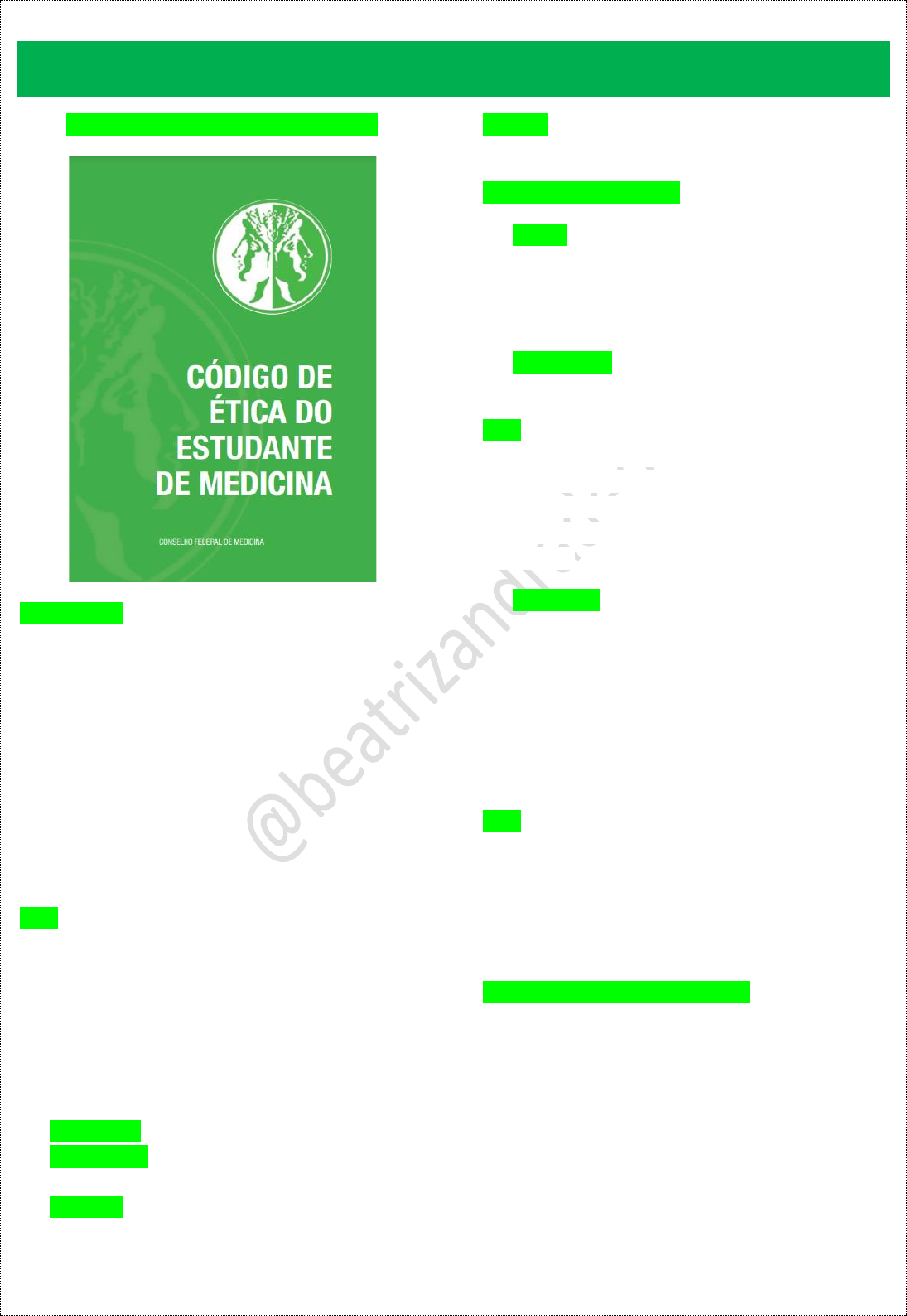 RESUMO DE HABILIDADES E ATITUDES MEDICAS Código de Ética do Estudante de Medicina Moral X Ética: A moral está baseada em costumes e convenções estabelecidas por cada grupo. Por sua vez, a ética se vincula ao estudo e à aplicação desses valores e princípios no âmbito das relações humanas, seria basicamente o ‘’modo de ser’’ de cada um. No Brasil, o Código de ética médica é um documento que estabelece de forma positivista os limites, os deveres e os direitos que os médicos precisam observar nas suas relações no exercício da medicina. Obs.: O Código de ética do estudante de medicina é composto por seis eixos, não sendo necessário saber exatamente o que se diz em cada artigo, no entanto, é bom realizar a leitura na íntegra, provavelmente será disponibilizado no CANVAS. No código de Ética temos a classificação de más condutas como: Negligência: omissão de atos necessários; Imprudência: inobservância das precauções necessárias; Imperícia: falta de capacitação para realizar determinado procedimento; Bioética: reflexão sobre a adequação das ações que envolvem a vida. Principalismos da Bioética: Justiça: deve ser justo nas decisões em saúde assim como ser imparcial em questões sociais e religiosas. Seria a obrigação ética em tratar o indivíduo de forma adequada e correta individualizando cada caso. Beneficência: buscar maximizar o benefício e minimizar o risco e/ou o dano ao paciente. Obs.: No Código de Ética Médica temos o Capítulo V - Relação com pacientes e familiares - É vedado ao médico: Artigo 32. Deixar de usar todos os meios disponíveis de diagnóstico e tratamento, cientificamente reconhecidos e a seu alcance, em favor do paciente. Autonomia: O Princípio da Autonomia nos ensina que, fora em situação de risco de morte, cabe ao paciente decidir sobre as práticas diagnósticas e terapêuticas a que quer se submeter. Não maleficência: O Princípio da Não Maleficência nos faz buscar minimizar o risco e/ou o dano ao paciente, ou seja, o axioma hipocrático "Primum non nocere". Obs.: No Código de Ética Médica vemos o Capítulo III - Responsabilidade profissional - É vedado ao médico: Artigo 1º. Causar dano ao paciente, por ação ou omissão, caracterizável como imperícia, imprudência ou negligência. Parágrafo único. A responsabilidade médica é sempre pessoal e não pode ser presumida. Alguns dos princípios fundamentais: Art. 13: O estudante de medicina guardará respeito ao cadáver, no todo ou em parte, incluindo qualquer peça anatômica, assim como modelos anatômicos utilizados com finalidade de aprendizado. Art. 22: O estudante de medicina deve preservar a imagem do professor, solicitando autorização prévia para gravações em áudio e/ou vídeo do conteúdo ministrado, não sendo permitida sua comercialização. Art. 24: É vedado ao acadêmico de medicina identificar-se como médico, podendo qualquer ato por ele praticado nessa situação ser caracterizado como exercício ilegal da medicina. Art. 25: É vedado ao estudante de medicina divulgar informação sobre assunto médico de forma sensacionalista, promocional ou de conteúdo inverídico. Art. 31: O estudante de medicina deve escrever de forma correta, clara e legível no prontuário do paciente. Art. 32: O estudante de medicina deve manusear e manter sigilo sobre informações contidas em prontuários, papeletas, exames e demais folhas de observações médicas, assim como limitar o manuseio e o conhecimento dos prontuários por pessoas não obrigadas a sigilo profissional. Art. 33: O estudante de medicina não pode receber honorários ou salário pelo exercício de sua atividade acadêmica institucional, com exceção de bolsas regulamentadas. Art. 43: O estudante de medicina deve respeitar a atuação de cada profissional no atendimento multiprofissional ao paciente. Art. 44: O estudante de medicina deve alertar, de forma respeitosa, qualquer profissional de saúde quando identificada alguma situação que julgue oferecer risco potencial à segurança do paciente. Prontuário Documento único constituído de um conjunto de informações, sinais e imagens registradas, geradas a partir de fatos, acontecimentos e situações sobre a saúde do paciente e a assistência a ele prestada, de caráter legal, sigiloso e científico, que possibilita a comunicação entre membros da equipe multiprofissional e a continuidade da assistência prestada ao indivíduo. A Comissão de Revisão de Prontuários deverá manter estreita relação com a Comissão de Ética Médica da unidade, com a qual deverão ser discutidos os resultados das avaliações realizadas. Regulamentação ético-legal do prontuário Médico: O preenchimento incorreto ou incompleto do prontuário é uma infração à ética médica. É vedado ao médico deixar de elaborar prontuário legível para cada paciente É vedado ao médico: Art.87: deixar de elaborar prontuário legível para cada paciente. Art.88: negar ao paciente ou à seu representante legal, acesso ao seu prontuário, deixar de lhe fornecer cópia quando solicitada, bem como deixar de lhe dar explicações necessárias à sua compreensão, salvo quando ocasionarem riscos ao seu próprio paciente ou a terceiros. Art.89: liberar cópias do prontuário sob sua guarda, exceto para atender a ordem judicial, ou para sua própria defesa, assim como quando autorizado por escrito pelo paciente. Art.90: deixar de fornecer cópia do prontuário médico de seu paciente quando de sua requisição pelo CRM. Principais componentes do prontuário: Identificação dos indivíduos Anamnese Exame físico Exames complementares Diagnóstico Evolução Procedimentos Obs.: A folha de evolução clínica diária deve conter: Identificação: nome, idade e sexo Dias de internação Diagnóstico Terapêutica básica Data e hora do atendimento Obs.: O prontuário deve ser guardado por 20 anos, a partir do último registro pelo prof