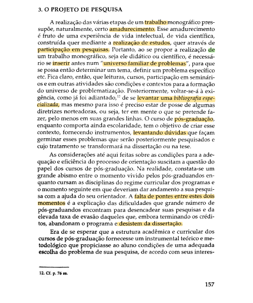 PDF Studio For Evaluation. http://www.qoppa.com/pdfstudio A realização das várias etapas de um trabalho monográfico pres- supõe, naturalmente, certo amadurecimento. Esse amadurecimento é fruto de uma experiência de vida intelectual, de vida científica, construída quer mediante a realização de estudos, quer através de participação em pesquisas. Portanto, ao se propor a realização de um trabalho monográfíco, seja ele didático ou científico, é necessá- rio se inserir antes num "universo familiar de problemas", para que se possa então determinar um tema, definir um problema específico etc. Fica claro, então, que leituras, cursos, participação em se-;Fnári- os e em outras atividades são condições e contextos para a í itna ;ão do universo de problematização. Posteriormente, volta. -se-a Ç. exí- gência, como já foi adiantado? de se levantar uma ' u/iog, «fia espe- cializada, mas mesmo para isso é preciso estar de 'aos e nc algumas diretrizes norteadoras, ou seja, ter em mente c 'jut se pretende fa- zer, pelo menos em suas grandes linhas. C curso de pós-graduação, enquanto comporta ainda escolaridade, *rm a ob¡etivo de criar esse contexto, fornecendo instrumentos, levan. \nau dúvidas que façam germinar esses problemas que serão POSI. *riormente pesquisados e cujo tratamento se transforma' a na diqseícação ou na tese. As considerações até aqui .Litas obre as condições para a ade- quação e eficiência do processo d. orientação suscitam a questão do papel dos cursos de pós gr rluação. Na realidade, constata-se um grande abismo entre o mc .ne nto vivido pelos pós-graduandos en- quanto cursam as di' ciprnas do regime curricular dos programas e o momento seguinte en que deveriam dar andamento a sua pesqui- sa com a ajuda ç o se 1 o. 'entador A falta de pontes entre estes dois momentos *xylcação das dificuldades que grande número de pós~gr^d11a. ~dos encontram para desencadear suas pesquisas e da eleve .da ta. 1 uv: evasão daqueles que, embora terminando os crédi- tos, band. .tam o programa e desistem da dissertação. Era ae se esperar que a estrutura acadêmica e curricular dos cursos de pós-graduação fornecesse um instrumental teórico e me- todológico que propiciasse ao aluno condições de uma adequada escolha do problema de sua pesquisa, de acordo com seus interes- 12. Cí. p. 76 157 Juliana Bernardino Juliana Bernardino Juliana Bernardino Juliana Bernardino Juliana Bernardino Juliana Bernardino Juliana Bernardino Juliana Bernardino Juliana Bernardino Juliana Bernardino Juliana Bernardino Juliana Bernardino Juliana Bernardino - O amadurecimento do trabalho academico exige realizacao de estudos e pesquisas aprofundadas além de levantar bibliografias especializadas PDF Studio - PDF Editor for Mac, Windows, Linux. For Evaluation. http://www.qoppa.com/pdfstudio ses, encaminhando-o ao levantamento preliminar de fontes e da- dos necessários à pesquisa, para testar sua viabilidade. Inclusive deveria orientar o aluno para o levantamento bibliográfico, pre- dispondo-o e habilitando-o ao diálogo com os autores que trata- ram do assunto. Não se trata -- não basta - de fornecer um certo domínio de técnicas de pesquisa: é preciso toda uma imersão num universo teórico e conceitual, onde se encontram necessariamente as coordenadas epistemológicas e antropológicas de toda discus- são relevante e crítica que hoje qualquer área científica possa de- senvolver. Espera-se, pois, do conteúdo programático uma pro- posta provocadora de reflexão e de pesquisa, mediante un aro- cesso contínuo de problematização das temáticas, cin iifdação permanente com os textos significativos de outros p *ns>dores. A pós-graduação, mais que um conjunto de ci tsc s, c everia cons- tituir-se num espaço onde se desdobrasse um ;'11 stante debate de idéias, de troca de conhecimentos, de reflt vã., c.? estudo, de leitura e de discussão. Não só nas salas de au". nas também em grupos informais interessados em temas afins, "rn icuniões extracurriculares, em encontros culturais e científicos, em c 'afesas de tese etc. Mas estas observações tzm c *eu reverso. Não há estrutura acadêmica que possa garantir a efinência do processo, se os pró- prios pós-graduandos não o assumirem com uma postura crítica e comprometida decorrer ,e r. * uma opção prévia, de dimensão po- litico-existencial, ciontt s le sua responsabilidade social. A integração, particip ção v atuação no processo de produção cientí- fica, como já se dise, _ í se viabilizam e se justificam se se vincula- rem ao projeto polít co e ao projeto existencial do pós-graduando pesquisador. “ses projetos implicam necessariamente um irredp.; el *ompromisso com a seriedade científica, com o traba- lho dedica io e persistente, corn o estudo sistemático, com o en- fren amer .o de todas as dificuldades estruturais e conjunturais, com a busca incessante de informações, deixando-se de lado todas as motivações alheias ao significado profundo que educação e ciên- cia têm numa sociedade tão pobre e carente como a brasileira. Os problemas e fracassos da pós-graduação brasileira não decorrem apenas de suas limitações estruturais mas também de limitações da opção político-existencial dos pós-graduandos nem sempre crí- tica e competentemente comprometida com um projeto de trans- formação da sociedade e de superação das suas carências. 158 Juliana Bernardino Juliana Bernardino Juliana Bernardino PDF Studio - PDF Editor for Mac, Windows, Linux. For_ Evaluation, http://www.qoppa.com/pdfstudio0 que ;a se disse sobre o sentido ivolitici) da pesquisa con- cluí-se clairainentc* que a escolha e a delimitação de um tema de ¡wesquisai ¡aressupõeni sua relevância não só acadêmica mas sobre- tudo social. Na sociedade lãrasileira, marcada por tantas e tão gra~ ves contradições, a questão da relevância social dos temas de pes- quisa assume