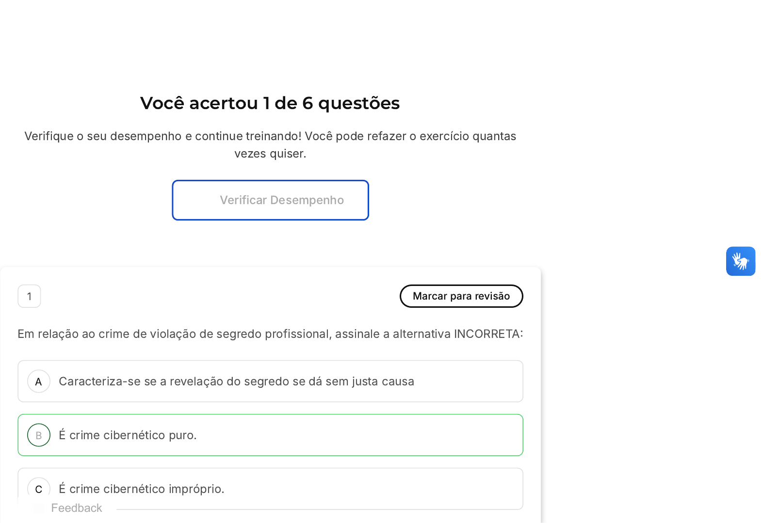 Você acertou 1 de 6 questões Verifique o seu desempenho e continue treinando! Você pode refazer o exercício quantas vezes quiser. Verificar Desempenho A B C 1 Marcar para revisão Em relação ao crime de violação de segredo profissional, assinale a alternativa INCORRETA: Caracteriza-se se a revelação do segredo se dá sem justa causa É crime cibernético puro. É crime cibernético impróprio. Feedback D E É crime cibernético impuro. Apenas caracteriza crime de violação de segredo profissional se o agente estiver em cargo de alta gestão. Resposta incorreta Opa! A alternativa correta é a letra B. Confira o gabarito comentado! Gabarito Comentado A alternativa B está incorreta porque a violação de segredo profissional não é necessariamente um crime cibernético puro. O crime de violação de segredo profissional pode ocorrer de diversas formas, não apenas por meio de tecnologias digitais ou cibernéticas. Portanto, não é correto classificá-lo como um crime cibernético puro. A violação de segredo profissional ocorre quando um profissional revela informações confidenciais sem justa causa, independentemente do meio utilizado para essa revelação. 2 Marcar para revisão No Brasil, são todos documentos destaques da governança corporativa, EXCETO: A B C D E Código Brasileiro de Governança Corporativa - Companhias Abertas Documento do Banco Central intitulado Governança Cooperativa Instrução nº 480 de 2009 da Comissão de Valores Mobiliários (CVM) Código Civil Código de Melhores Práticas de Governança Corporativa do Instituto Brasileiro de Governança Corporativa (IBGC) Resposta correta Parabéns, você selecionou a alternativa correta. Confira o gabarito comentado! Gabarito Comentado A alternativa correta é o Código Civil. Embora seja um documento legal importante, o Código Civil não é especificamente um documento de destaque na governança corporativa no Brasil. Os outros documentos listados são todos específicos para a governança corporativa, incluindo o Código Brasileiro de Governança Corporativa, o documento do Banco Central sobre Governança Cooperativa, a Instrução nº 480 da A B C D E CVM e o Código de Melhores Práticas do IBGC. Portanto, o Código Civil é a exceção nesta lista. 3 Marcar para revisão Sobre o crime de violação de dispositivo informático, é INCORRETO dizer que: O mero acesso não autorizado à base de dados caracteriza o crime. Invadir dispositivo significa o acesso não autorizado. Para caracterização do crime, é necessária a violação de algum mecanismo de segurança. É crime cibernético puro ou próprio. Se ocorrer prejuízo econômico, a Lei determina ser causa de aumento de pena. A B C Resposta incorreta Opa! A alternativa correta é a letra A. Confira o gabarito comentado! Gabarito Comentado A alternativa A é a incorreta. O mero acesso não autorizado à base de dados não caracteriza o crime de violação de dispositivo informático. Para que seja considerado crime, é necessário que haja a violação de algum mecanismo de segurança, conforme mencionado na alternativa C. Portanto, o simples acesso não autorizado, sem a violação de segurança, não é suficiente para a caracterização do crime. 4 Marcar para revisão No Brasil, a principal Lei que representa o compliance é: Lei de Lavagem de Dinheiro Lei Anticorrupção Código Penal D E Código Civil Lei de Licitações Resposta incorreta Opa! A alternativa correta é a letra B. Confira o gabarito comentado! Gabarito Comentado A Lei Anticorrupção é a principal representante do compliance no Brasil. O termo "compliance" refere-se ao conjunto de disciplinas para fazer cumprir as normas legais e regulamentares, as políticas e as diretrizes estabelecidas para o negócio e para as atividades da instituição ou empresa, bem como evitar, detectar e tratar qualquer desvio ou inconformidade que possa ocorrer. Nesse sentido, a Lei Anticorrupção, oficialmente Lei nº 12.846/2013, estabelece regras estritas para empresas em relação à prevenção e combate à corrupção, sendo, portanto, um pilar fundamental do compliance no país. 5 Marcar para revisão São sanções da Lei Anticorrupção, EXCETO: A B C D E Multa de até 20% do faturamento bruto Multa de até 20% da receita líquida Publicação extraordinária da sanção Multa de até R$ 60.000.000,00 caso o faturamento bruto não possa ser usado como critério Reparação do dano Resposta incorreta Opa! A alternativa correta é a letra B. Confira o gabarito comentado! Gabarito Comentado De acordo com a Lei Anticorrupção, as sanções possíveis incluem multa de até 20% do faturamento bruto, publicação extraordinária da sanção, multa de até R$ 60.000.000,00 caso o faturamento bruto não possa ser usado como critério e reparação do dano. No entanto, a alternativa que menciona "Multa de até 20% da A B C D E receita líquida" não está correta, pois a lei não prevê essa sanção. Portanto, a alternativa B é a única que não é uma sanção prevista na Lei Anticorrupção. 6 Marcar para revisão A tecnologia do Blockchain pode ser entendida como: Um mecanismo on-line de armazenamento centralizado Um mecanismo on-line de armazenamento descentralizado Um mecanismo off-line de armazenamento descentralizado Um mecanismo off-line de armazenamento centralizado Sinônimo de armazenamento em nuvem Resposta incorreta Opa! A alternativa correta é a letra B. Confira o gabarito comentado! Gabarito Comentado A tecnologia do Blockchain é caracterizada por ser um mecanismo on-line de armazenamento descentralizado. Isso significa que os dados não são armazenados em um único local centralizado, mas sim distribuídos por vários nós em uma rede, tornando o sistema mais seguro e resistente a falhas. Portanto, a alternativa B é a correta.