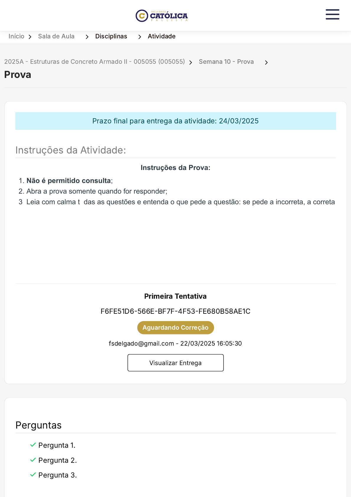 Início 〉 Sala de Aula 〉 Disciplinas 〉 Atividade 2025A - Estruturas de Concreto Armado II - 005055 (005055) 〉 Semana 10 - Prova 〉 Prova Instruções da Atividade: Prazo final para entrega da atividade: 24/03/2025 Instruções da Prova: 1. Não é permitido consulta; 2. Abra a prova somente quando for responder; 3. Leia com calma todas as questões e entenda o que pede a questão: se pede a incorreta, a correta e qual o tema da questão; 4. Responda as questões dissertativas com suas próprias palavras de forma clara e objetiva; 5. Você tem 3h para finalizar a prova; 6. Lembre-se de Clicar no botão "Enviar"; 7. A nota da prova será somada às notas das atividades semanais. Boa sorte! Primeira Tentativa F6FE51D6-566E-BF7F-4F53-FE680B58AE1C Aguardando Correção fsdelgado@gmail.com - 22/03/2025 16:05:30 Visualizar Entrega Perguntas Pergunta 1. Pergunta 2. Pergunta 3. https://ava.uca.edu.br/aluno/sala-de-aula/disciplina/modulo/atividade/300898 https://ava.uca.edu.br/aluno/sala-de-aula/disciplina/modulo/atividade/300898 https://ava.uca.edu.br/aluno/sala-de-aula/disciplina https://ava.uca.edu.br/aluno/sala-de-aula/disciplina/modulo/atividade/:id/:nome javascript:void(0); Pergunta 4. Pergunta 5. Pergunta 6. Pergunta 7. Pergunta 8. Pergunta 9. Pergunta 10. Pergunta 11. Pergunta 12. Esta atividade têm tempo limite de 3 horas pontos: 0,200Pergunta 1. O projetista precisa ter em mente que o projeto de um sistema de protensao é complicado, pois tem diversas variáveis envolvidas, de modo que o melhor projeto é obtido de forma iterativa. Podem ser descritos três diferentes procedimentos para o projeto de peças protendidas à flexão, são eles: Múltipla Escolha: A. Para a condição de grandes vãos, a peça mais eficiente pode resultar tomando como base as tensões admissíveis do concreto na escolha da seção transversal, fazendo as tensões atuantes serem maiores que as tensões admissíveis. B. Podemos adotar a seção transversal e calcular o valor de excentricidade da força de protensão, considerando os carregamentos atuantes ou fase mais importante, verificando na sequência as tensões atuantes no concreto para diferentes estágios de carregamentos, fazendo as tensões atuantes serem menores ou iguais às tensões admissíveis. C. Temos a determinação da seção transversal, seguida pela determinação das forças de protensão e o perfil da armadura ativa, ao final podemos realizar modificações de forma a atender as tensões atuantes. javascript:void(0); D. Podemos adotar a seção transversal e calcular o valor de excentricidade da força de protensão, considerando os carregamentos atuantes ou fase mais importante, verificando na sequência as tensões atuantes no concreto para diferentes estágios de carregamentos, fazendo as tensões atuantes serem maiores ou iguais às tensões admissíveis. E. Para os problemas de verificação, é necessário conhecer somente os carregamentos atuantes e as tensões admissíveis, pois com esses fatores podemos verificar o ELS. pontos: 0,200Pergunta 2. Podemos compreender que a força de protensão no elemento estrutural reduz ou elimina a tensão de tração atuante na seção transversal, que por sua vez reduz a ocorrência de fissuração, em função do nível de protensão. Tal condição está vinculada com o nível de protensão, denominado como grau de protensão (Kp). Explique o conceito de grau de protensão, bem como sua relevância em projeto de elementos protendido. Múltipla Escolha: A. O grau de protensão (Kp), é definido como a relação entre o momento fletor de descompressão (M0) e o momento fletor máximo (Mmax) atuante na estrutura. O momento fletor de descompressão (Mo) é definido como o momento que atinge o Estado Limite de Descompressão (ELS-D), ou seja, que não proporciona uma tensão normal zero na seção transversal da peça. O grau de protensão avalia se na seção em que atua o momento fletor máximo ocorre ou não tensão de compressão. B. O grau de protensão (Kp), é definido como a relação entre o momento fletor de descompressão (M0) e o momento fletor máximo (Mmax) atuante na estrutura. O momento fletor de descompressão (Mo) é definido como o momento que atinge o Estado Limite de Descompressão (ELS-D), ou seja, que proporciona uma tensão normal zero em algum ponto da seção transversal da peça (geralmente a borda tracionada pelo momento fletor máximo). O grau de protensão avalia se na seção em que atua o momento fletor máximo ocorre ou não tensão de compressão. Por exemplo, Uma viga fletida com kp = 1 está sob protensão total, e valores inferiores definem a protensão limitada e a protensão parcial. C. O grau de protensão (Kp), é definido como a relação entre o momento fletor de descompressão (M0) e o momento fletor máximo (Mmax) atuante na estrutura. O momento fletor de javascript:void(0); descompressão (Mo) é definido como o momento que atinge o Estado Limite de Descompressão (ELS-D), ou seja, que proporciona uma tensão normal zero em algum ponto da seção transversal da peça (geralmente a borda tracionada pelo momento fletor máximo). O grau de protensão avalia se na seção em que atua o momento fletor máximo ocorre ou não tensão de tração. Por exemplo, Uma viga fletida com kp = 1 está sob protensão total, e valores inferiores definem a protensão limitada e a protensão parcial. D. O grau de protensão (Kp), é definido como a relação entre o momento fletor de descompressão (M0) e o momento fletor máximo (Mmax) atuante na estrutura. O momento fletor de descompressão (Mo) é definido como o momento que atinge o Estado Limite de Descompressão (ELS-D), ou seja, que não proporciona uma tensão normal zero na seção transversal da peça. O grau de protensão avalia se na seção em que atua o momento fletor máximo ocorre ou não tensão de tração. E. O grau de protensão (Kp), é definido como a relação entre o momento fletor de de