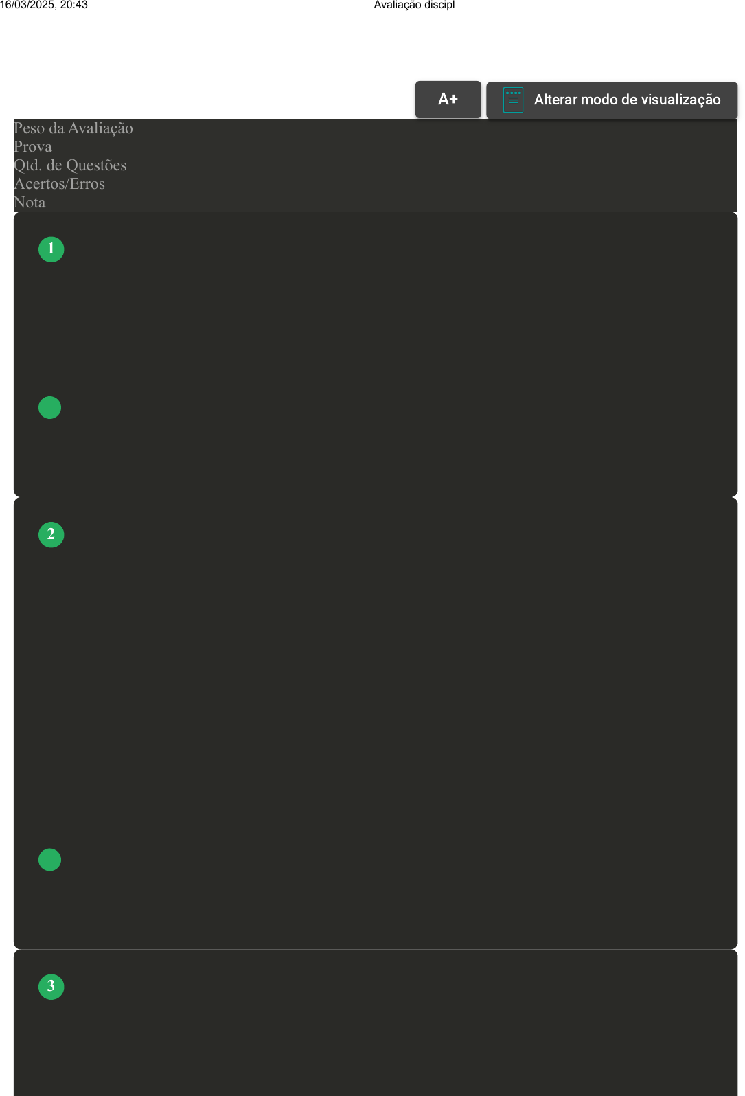 Prova Impressa GABARITO | Avaliação disciplina on-line (Cod.:1018566) Peso da Avaliação 10,00 Prova 94206590 Qtd. de Questões 10 Acertos/Erros 10/0 Nota 10,00 O caráter dialógico implica ida e volta no fluxo de informação e comunicação. Já quando o fluxo é predominantemente de uma via, é chamado de monológico. Dentre os tipos de interação, qual é a que tem caráter monológico? A Interação mediada. B Interação face a face. C Quase interação mediada. D Interação complementar. Não é só de emissor e receptor que uma comunicação é feita. Há diversas outras particularidades do processo comunicativo. Sobre isso, associe os itens, utilizando o código a seguir: I- Canal. II- Mensagem. III- Informação. ( ) Conteúdo da mensagem. ( ) Meio pelo qual a mensagem é enviada. ( ) Unidade básica da comunicação. Assinale a alternativa que apresenta a sequência CORRETA: A II - III - I. B I - III - II. C III - I - II. D II - I - III. Dentro dos estudos sobre comunicação, pode-se citar uma que pesquisa especificamente a linguagem do corpo. São os estudos da cinésica. Para compreendê-la, foram estabelecidos alguns pressupostos. Analisando essas informações, classifique V para as sentenças verdadeiras e F para as falsas: ( ) O contexto não fornece significado ao movimento ou expressão corporal. VOLTAR A+ Alterar modo de visualização 1 2 3 16/03/2025, 20:43 Avaliação disciplina on-line about:blank 1/4 ( ) A cultura padroniza a postura corporal, o movimento e a expressão facial. ( ) O comportamento dos membros de um grupo é influenciado pelas suas próprias atividades corporais e fonéticas. ( ) Não se tem significados culturalmente reconhecidos e validados para os comportamentos. Assinale a alternativa que apresenta a sequência CORRETA: A V - V - F - F. B V - F - V - F. C F - F - V - V. D F - V - V - F. Quanto aos tipos de interação, um dos aspectos abordados é a orientação das atividades. Somente uma das interações é orientada para um número indefinido de receptores potenciais. Qual é essa interação? A Quase interação mediada. B Interação face a face. C Interação complementar. D Interação mediada. Há alguns elementos que são necessários para que o processo de comunicação ocorra. Dois fatores primordiais são o emissor e o receptor. O que é o receptor? A Unidade básica da comunicação. B Conteúdo da mensagem. C Sujeito que dirige a mensagem; fonte. D Sujeito a quem a mensagem é dirigida. A palavra "comunicação" deriva de "comum + ação". Na comunicação, os participantes procuram ter um entendimento de determinadas entidades não materiais. Basicamente, pode-se dizer que existem três princípios na comunicação interpessoal. Sobre esses princípios, analise as afirmativas a seguir: I- O termo "comunicação" designa as relações em que existem elementos que se destacam de um fundo de isolamento. II- Existe a intenção de romper o isolamento. III- Necessita-se de um conhecimento profundo das regras gramaticais de determinada língua. IV- Sua forma de expressão se faz por palavras escritas. 4 5 6 16/03/2025, 20:43 Avaliação disciplina on-line about:blank 2/4 V- Está em jogo a ideia de uma realização em comum. Assinale a alternativa CORRETA: A As afirmativas I, III e V estão corretas. B As afirmativas II, III e IV estão corretas. C As afirmativas I, II e V estão corretas. D As afirmativas II, IV e V estão corretas. Para que uma relação interpessoal ocorra, é importante a utilização da comunicação, porém alguns aspectos ficam em segundo plano num momento inicial. Sobre formas de comunicação, analise as afirmativas a seguir: I- A comunicação pode ser feita a partir de gestos. II- Quando se trata de comunicação, ela é realizada somente de forma oral ou gestual. III- A forma escrita não é considerada como comunicação porque não há contato presencial entre o autor e o leitor. Assinale a alternativa CORRETA: A Somente a afirmativa II está correta. B As afirmativas I e III estão corretas. C Somente a afirmativa I está correta. D Somente a afirmativa III está correta. Quanto aos tipos de interação, um dos aspectos abordados é a possibilidade de deixas simbólicas. Somente uma das interações permite a multiplicidade de deixas simbólicas. Qual é essa interação? A Interação mediada. B Interação complementar. C Interação quase mediada. D Interação face a face. Thompson (1998) afirma que há três tipos de interação: interação face a face, interação mediada e quase interação mediada. Sobre a interação mediada, classifique V para as sentenças verdadeiras e F para as falsas: ( ) Acontecem por meios como papel, fios elétricos e ondas eletromagnéticas. 7 8 9 16/03/2025, 20:43 Avaliação disciplina on-line about:blank 3/4 ( ) Tal comunicação não oferece tantas possibilidades de deixas simbólicas. ( ) As mensagens transmitidas não precisam de interpretação por parte dos indivíduos. Assinale a alternativa que apresenta a sequência CORRETA: FONTE: THOMPSON, John B. A mídia e a modernidade uma teoria social da mídia. Petrópolis: Vozes, 1998. A V - V - F. B V - F - F. C F - V - F. D V - F - V. Há alguns elementos que são necessários para que o processo de comunicação ocorra. Dois fatores primordiais são o emissor e o receptor. O que é o emissor? A Sujeito a quem a mensagem é dirigida. B Sujeito que dirige a mensagem; fonte. C Conteúdo da mensagem. D Unidade básica da comunicação. 10 Imprimir 16/03/2025, 20:43 Avaliação disciplina on-line about:blank 4/4