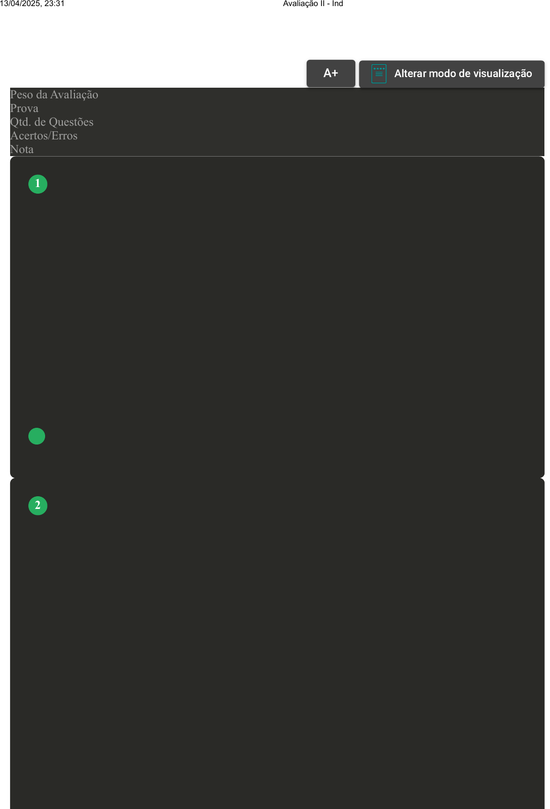 Prova Impressa GABARITO | Avaliação II - Individual (Cod.:1026319) Peso da Avaliação 2,00 Prova 95953129 Qtd. de Questões 10 Acertos/Erros 8/2 Nota 8,00 O sistema de marcação que caracteriza-se pelo confonto direto entre dois jogadores, chamado de homem-a-homem. Diante disso, assinale a alternativa CORRETA: A Marcação mista. B Marcação por zona. C Marcação parcial. D Marcação individual. Ao analisar as possibilidades de ensino e treinamento de ataque, as metodologias que podem ser utilizadas e um olhar reflexivo sobre o ensino nos diferentes contextos e faixas etárias no futebol, deve-se avaliar as peculiaridades do esporte para tecer as melhores estratégias de jogo. Sobre esse assunto, assinale a alternativa INCORRETA: A Entre as tendências atuais do ensino dos esportes de equipe se destaca a teoria estruturalista. Ela guia-se pela estrutura do jogo, tendo como base a resolução de problemas, integrando formas e jogadas dentro de um contexto de disciplina tática e hábitos de jogo. B Destacam alguns pontos principais que devem ser observados na fase ofensiva do futebol; é preciso ter o controle da bola, para ter domínio das ações ofensivas durante o ataque; amplitude de jogo, ou seja, encontrar os espaços dentro do campo adversário para jogar utilizando as laterais; e mobilidade. VOLTAR A+ Alterar modo de visualização 1 2 13/04/2025, 23:31 Avaliação II - Individual about:blank 1/6 C Existem os princípios gerais e inseridos nestes os princípios operacionais e fundamentais. Os princípios gerais são independentes da fase do jogo e dão um "norte" para conduzir as regras básicas de ação de jogo. São os seguintes: evitar a igualdade numérica; não permitir a inferioridade numérica; e tentar criar superioridade numérica. D Um princípio básico de ataque é manter a bola com a equipe, mas é aceitável deixar o adversário ficar com a bola, bem como, os dois times tentarem criar espaços e superioridade no campo de ataque um do outro. O futsal é um jogo de ataque e defesa constante, por isso, os jogadores devem desempenhar as funções de atacantes quando a equipe está com a posse de bola e de defensores quando estão sem ela. Em relação às ações de marcação e combate no futsal, analise as sentenças a seguir: I- A marcação, no futsal, pode ser realizada nos jogadores sem a bola e no que está com a bola. II- Na tentativa de desarmar o adversário e retomar a posse de bola, busca-se fazer com que o oponente se direcione para a lateral de jogo para poder apertar o cerco e fazer com que este tenha menor ângulo para o gol. III- Realizar o desarme somente quando estiver com o corpo bem próximo do corpo do adversário é a chave mais importante no combate. IV- A marcação passiva é uma ação que não intenciona roubar a bola do adversário, observando o que ele irá fazer, portando-se passivamente em quadra e cercando o oponente. Assinale a alternativa CORRETA: A Somente a sentença II está correta. B As sentenças I, II, III e IV estão corretas. C Somente a sentença III está correta. D Somente a sentença I está correta. 3 13/04/2025, 23:31 Avaliação II - Individual about:blank 2/6 O futsal possui algumas características táticas específicas devido às regras e particularidades da modalidade. Dessa forma, os estudiosos do esporte padronizaram algumas classificações táticas do futsal. Com base nisso, assinale a alternativa INCORRETA: A A tática no futsal pode ser dividida e classificada em sistemas defensivos e ofensivos. B O futsal pode ser dividido em três fases de jogo, a de defesa, uma de transição e outra ofensiva. C O sistema tático de jogo 4 x 0 é considerado o mais complexo e moderno do futsal. D A marcação no futsal pode ser realizada de maneira mista, individual ou por zona. Como se sabe, existem princípios ofensivos e defensivos. Bom, vamos nos concentrar, por enquanto, nos princípios táticos defensivos. Quanto aos princípios defensivos, assinale a alternativa CORRETA que indica melhor os princípios fundamentais de um sistema defensivo: A Contenção, cobertura ofesnviva, equilíbrio e unidade defensiva. B Contenção, cobertura defensiva, equilíbrio, concentração e unidade defensiva. C Contenção, cobertura defensiva, equilíbrio, desatenção e unidade defensiva. D Contenção, cobertura defensiva, equilíbrio, concentração e unidade ofensiva. Determinado sistema tático é responsável pela nomenclatura das posições adotadas no futsal: pivô, alas e fixo. 4 Revisar Conteúdo do Livro 5 6 13/04/2025, 23:31 Avaliação II - Individual about:blank 3/6 Assinale a alternativa CORRETA que indica qual é esse sistema: A 2 X 2. B 3 X 2. C 3 X 1. D 4 X 0. Sistemas táticos utilizados no futsal tem algumas peculiaridades específicas. Sobre os aspectos físicos do futsal, quanto às características do jogo em relação às regras não há como fixar apenas um padrão tático no futsal. Com base nisso, classifique V para as sentenças verdadeiras e F para as falsas: ( ) A tática no futsal pode ser dividida em defensiva e ofensiva. ( ) Existem duas grandes fases de jogo no futsal: a de ataque, quando a equipe está com a bola, e a de defesa quando o comportamento dos jogadores vai ser baseado em ações sem bola. ( ) A tática é o elemento inteligente do jogo, acontece, em um primeiro momento, no plano mental. ( ) A tática não possui relação direta com a posição que o atleta assume dentro da quadra de jogo. Assinale a alternativa que apresenta a sequência CORRETA: A V – V – F – V. B V – V – V – F. C F – F – F – V. Revisar Conteúdo do Livro 7 13/04/2025, 23:31 Avaliação II - Individual about:blank 4/6 D V – F – V – V. No futsal existem características específicas das posições de jogo, que se nomeiam: alas, pivô, fixo e goleiro. Assinale a alternativa que apresenta as características dos alas: A Precisa ter um bom passe e uma boa visão de jogo em sua totalidade. B P