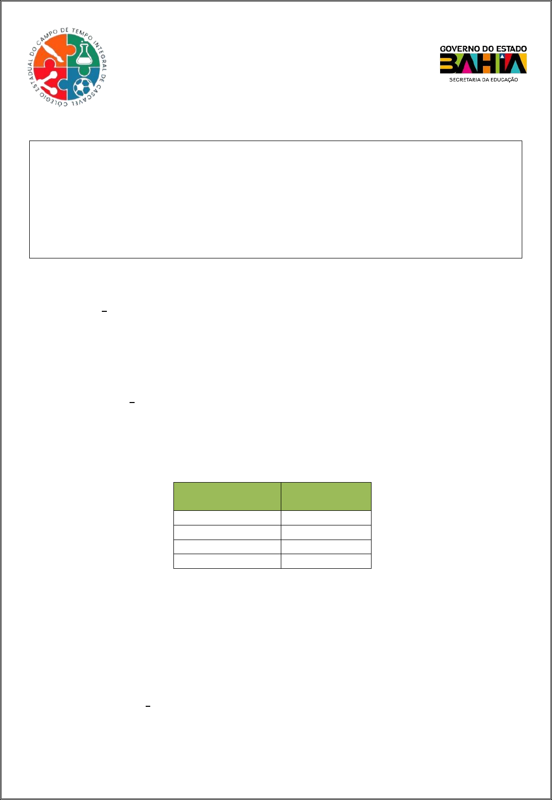 COLÉGIO ESTADUAL DO CAMPO DE TEMPO INTEGRAL DE CASCAVEL Educador: Jabson Costa Disciplina: Matemática Série/ano: __________ Turno: ________________ Estudante: ____________________________________ Lista de Exercícios de Matemática Instruções para a Lista de Exercícios • Faça a atividade e busque revisitar os conceitos trabalhados até o presente momento na unidade; • Tente solucionar as questões recorrendo ao caderno apenas em última instância. Ao fazer isso, você estudará, do contrário, será apenas um copista; • Utilize uma regra para construir os gráficos; • A lista contabilizará uma pontuação (a ser definida até o final da unidade); • Busque deixar letras e cálculos nítidos. Organize-se! Que a sua nota seja condizente com os seus esforços e estudos! Bons estudos! Questão 1: Classifique cada função 𝑓: 𝑅 → 𝑅 em afim, linear, constante ou identidade. a) 𝑓(𝑥) = 3 2 𝑥 − 5 b) 𝑓(𝑥) = 𝑥 c) 𝑓(𝑥) = −3𝑥 d) 𝑓(𝑥) = −5 e) 𝑓(𝑥) = 15 − 4 5 𝑥 f) 𝑓(𝑥) = −𝑥 Questão 2: A seguir está indicado o perímetro de um pentágono regular em função da medida, em centímetros, de seu lado. Medida do lado do pentágono (cm) Perímetro (cm) 2 10 4 20 5,5 27,5 8 40 a) Apresente uma função que permite calcular o perímetro 𝑃 do pentágono regular em função da medida 𝑙 do seu lado. b) Dado um pentágono regular de lado 52 com, determine seu perímetro. Questão 3: Escreva uma função afim na forma 𝑓(𝑥) = 𝑎𝑥 + 𝑏, sabendo que: a) 𝑎 = 3 𝑒 𝑏 = 10 b) 𝑓(−1) = 5 𝑒 𝑏 = 0 c) 𝑓(2) = 1 𝑒 𝑎 = 1 4 d) 𝑓(3) = 11 𝑒 𝑏 = 5 e) 𝑓(1) = 3 𝑒 𝑓(3) = 5 f) 𝑓(−2) = 7 𝑒 𝑓(0) = 3 Questão 4: Uma pizzaria oferece serviço de entrega e cobra por isso uma taxa fixa de R$2,00 mais R$0,80 por quilômetro rodado no trajeto entre o estabelecimento e o local da entrega. a) Escreva uma função que permita calcular o valor 𝑇 da taxa de entrega, em reais, em função da distância 𝑑 percorrida, em quilômetros. b) Qual será o valor da taxa se o local da entrega for a 13 km da pizzaria? E se o local for a 8,5 km? Questão 5: O gafanhoto-do-deserto é um inseto capaz de comer cerca de 1,5 grama de folhas por dia, um número aparentemente pequeno, mas se considerarmos que algumas nuvens desses gafanhotos podem conter cerca de 50 milhões de indivíduos, a devastação alcança grandes proporções. a) Escreva uma função afim que relacione a quantidade 𝑔 de gafanhotos com a massa 𝑚, em gramas, de folhas que eles são capazes de comer por dia. b) Quantas toneladas de folhas uma nuvem com 50 milhões de gafanhotos-do-deserto pode comer em um único dia? Questão 6: Um ônibus faz uma viagem de São Paulo a Curitiba a uma velocidade média de 62 𝑘𝑚/ℎ. a) Nessas condições, sabendo que a distância entre as duas cidades é de 409 km, em quanto tempo a viagem é realizada? b) Calcule a distância média percorrida pelo ônibus: • 1 hora • 2 horas • 5 horas • 6 horas c) Escreva uma função que relacione a distância média 𝐷 percorrida, em quilômetros, em função do tempo 𝑡, em horas. Questão 7: Um técnico em informática, que presta serviços a empresas, realizou um trabalho de 3 horas e cobrou 𝑅$ 295,00. Sabendo que esse técnico cobra 𝑅$ 65,00 por hora de trabalho mais um valor fixo, escreva uma função que represente o valor 𝑃 que ele cobra por 𝑡 horas de trabalho. Questão 8: Júlio trabalha como vendedor em uma loja e seu salário mensal é calculado da seguinte maneira: uma quantia fixa de 𝑅$ 1.200,00 mais 5% do valor das vendas que ele efetuar no mês. a) Escreva uma função que permita calcular o salário 𝑆 de Júlio em função do valor das vendas 𝑣 e efetuadas por ele. b) Em determinado mês, Júlio vendeu o equivalente a 𝑅$ 20.000,00 em produtos, qual será o valor do seu salário? c) Em certo mês, Júlio recebeu 𝑅$ 2.020,00 de salário. Quantos reais ele vendeu nesse mês? Questão 9: Sandra possuía 𝑅$ 100,00 e, para fazer uma viagem no final do ano, ela guardou, a partir de janeiro 𝑅$ 60,00 em cada mês. a) Quantos reais Sandra possuía ao final do 6º mês? b) Escreva uma função que relacione a quantia em reais 𝑄 com o tempo 𝑡, em meses. c) Sabendo que a viagem será feita no final do mês de novembro do mesmo ano e que Sandra conseguiu guardar exatamente a quantia necessária para pagá-la, qual o preço dessa viagem? Questão 10: Determine a função afim 𝑔(𝑥) = 𝑎𝑥 + 𝑏 cuja a representação gráfica é uma reta que passa pelo ponto de coordenadas (1,3) e é paralela ao gráfico de 𝑓(𝑥) = 2𝑥 + 3 Questão 11: Calcule o zero de cada função: a) 𝑓(𝑥) = 3𝑥 − 12 b) 𝑓(𝑥) = −𝑥 + 9 c) 𝑓(𝑥) = 2𝑥 + 3 4 d) 𝑓(𝑥) = − 1 5 𝑥 − 6 Questão 12: Duas das escalas de temperatura mais utilizadas são a Celsius e a Fahrenheit. Para convertermos uma temperatura F medida em Fahrenheit em uma C, medida em Celsius, utilizamos a função 𝐶(𝐹) = 5 9 (𝐹 − 32). a) Quando um termômetro registra 50℉, a mesma temperatura corresponde a quantos graus Celsius? b) Qual o zero dessa função? Nesse contexto, o que o zero representa? Questão 13 (UERJ – 2014): O reservatório A perde água a uma taxa constante de 10 litros por hora, enquanto o reservatório B ganha água a uma taxa constante de 12 litros por hora. No gráfico, estão representados, no 𝑒𝑖𝑥𝑜 𝑦, os volumes, em litros, da água contida em cada um dos reservatórios, em função do tempo, em horas, representado no 𝑒𝑖𝑥𝑜 𝑥. Determine o tempo 𝑥0, em horas, indicado no gráfico. Questão 14: As tartarugas são conhecidas pela dureza dos seus cascos e pela lentidão com que se movimentam. No entanto, na água algumas espécies se movem com boa velocidade. As tartarugas marinhas podem nadar a uma velocidade de até 19 𝑚/𝑠. Escreva uma
