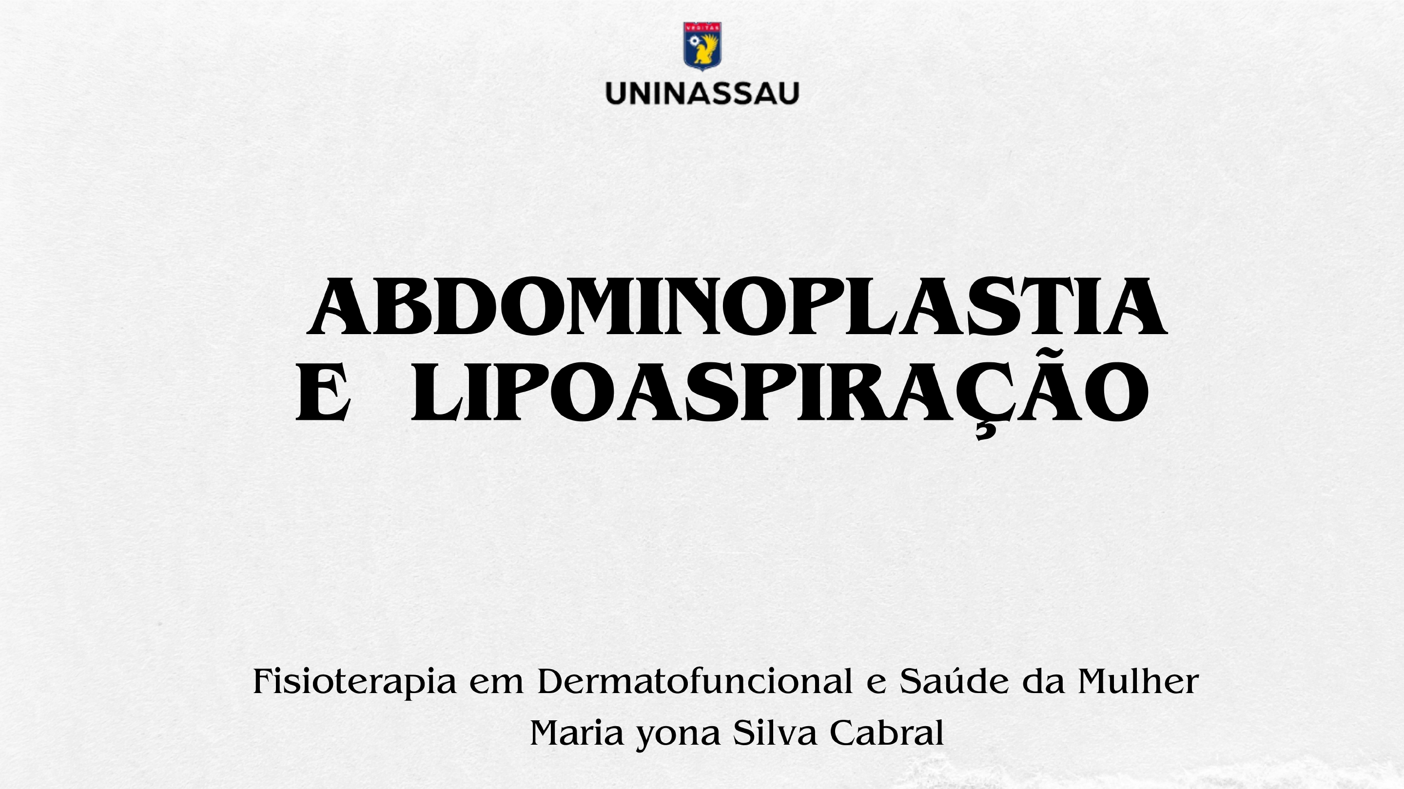 UNINASSAU ABDOMINOPLASTIA E LIPOASPIRAÇÃO Fisioterapia em Dermatofuncional e Saúde da Mulher Maria yona Silva CabralQUE É?A B COMO SÃO REALIZADAS Inicialmente é feito toda marcação da abdominoplastia e da lipoaspiração Ja com paciente anestesiado, comeca com as cânulas sugando todas as gorduras que esta sobrando no abdômen do paciente Faz uma incisao para retirar a FLACIDEZ Continua com as cânulas para sugar as gorduras que ficam abaixo das costelas e do meio do abdômen.COMO SÃO REALIZADAS Faz outra sutura na musculatura do reto abdominal, para deixar a paciente mais acinturada e acabar com estômago alto. Finaliza a cirurgia puxando a pele de cima do estômago para baixo, os pontos ficam escondidos a baixo da linha da calcinha. Cria um novo umbigo para a paciente e assim é finalizado a cirurgiaINDICAÇOES E CONTRAINDICAÇÕES Abdominoplastia INDICAÇÃO -para corrigir flacidez abdominal; -Excesso de pele e gordura; -Diástase muscular; -Mulheres que ficam com a barriga flácida após gravidez; -Pessoas magras que tem gordura localizada na região abdominal. CONTRAINDICAÇÃO -pessoas com doenças cardíacas graves; -pessoas com diabetes descontrolada; -pessoas com histórico de recuperação; -pessoas que fuma; -mulheres grávidaINDICAÇOES E CONTRAINDICAÇÕES Lipoaspiração : INDICAÇÃO -É indicada para pessoas que tem gordura localizada em alguma parte do corpo, mas que estão no peso ideal. Seu objetivo é modelar corpo e não perder peso; -Pele firme e elástica; -É indicada para pessoas saudáveis( não fumantes). CONTRAINDIÇÃO: -Ser obeso; -Ter instabilidade de peso; -Ter condições de saúde que prejudicam a recuperação pós operatória; -Ser gestante ou mulher a menos de 6 meses partoCUIDADO DA FISIOTERAPIA NO PRÉ OPERATORIO Avaliação inicial: postura, tônus muscular e riscos circulatórios/respiratórios. Exercícios respiratórios: melhora da capacidade pulmonar e prevenção de secreções. Drenagem linfática manual (se necessário): redução de edema pré-existente. Orientação postural: prevenção de tensões na cicatriz e treino de mobilidade. Condicionamento muscular leve: fortalecimento abdominal e lombar. Educação do paciente: importância da fisioterapia e prevenção de complicações.CUIDADOS NO PÓS OPERATÓRIO Ajuda a reduzir dores e hematomas. Drenagem linfática manual Exercícios respiratórios Exercícios de recuperação funcional Prevenção de fibroses Prevenção de trombose Uso de ultrassom terapêutico Correção posturalA importância da drenagem linfática manual no pós-operatório de abdominoplastia The importance of manual lymphatic drainage in the postoperative period of abdominoplasty DOI: 10.55892/jrg.v7i14.1286 ARK: 57118/JRG.v7i14.1286 Recebido: 11/04/2024 Aceito: 26/06/2024 Publicado on-line: 27/06/2024 Camila Rodrigues https://orcid.org/0000-0002-8628-2234 UNIP Universidade Paulista, DF, Brasil E-mail: milinhalima95@gmail.com lel Marciano de Moraes https://orcid.org/0000-0002-0798-3949 UNIP Universidade Paulista, DF, Brasil Check for E-mail: ielfilho@yahoo.com.br updates Resumo A abdominoplastia é um procedimento cirúrgico estético com fins reparadores, frequentemente associado à lipoaspiração e/ou suas variantes. Embora seja considerada uma cirurgia segura, existem riscos de complicações, tais como seroma, hematoma, necrose, infecção e assimetrias, além de complicações sistêmicas como doença tromboembólica e insuficiência respiratória. Essas complicações locais, em particular, podem requerer tratamentos como a drenagem linfática manual (DLM). objetivo deste trabalho foi discutir a relevância da DLM no pós-operatório de abdominoplastia. Para isso, foi realizada uma revisão bibliográfica. Os resultados indicaram que a DLM é importante na recuperação pós-abdominoplastia, contribuindo para a redução de edemas, hematomas e dor, além de melhorar a estética e o bem- estar dos pacientes. A DLM é mais eficaz quando iniciada precocemente, prevenindo complicações como seromas. Embora dez sessões de DLM sejam geralmente suficientes, casos de edema e parestesia podem exigir um número maior de sessões. Portanto, a DLM é essencial e amplamente recomendada no pós-operatório de abdominoplastia. No entanto, sugere-se que estudos futuros explorem a necessidade de revisar a quantidade de sessões prescritas para a melhoria eficaz do edema pós- operatório em abdominoplastias.REFERÊNCIAS BARCELOS, F.V.T et al. Análise anatômica da abdominoplastia. Rev. Bras. Cir. Plást. 2017;32(2):272-281. DOI: 10.5935/2177-1235.2017RBCP0044. 2015. SONCINI, J.A; BAROUDI, R. Revisão da técnica de abdominoplastia com dissecção reduzida e fixação com pontos de Baroudi. Rev. Bras. Cir. Plást. 2016;31(2):166-171. DOI: 2016. GOMES, R. S; NICOLAU, G. V. Lipoaspiração abdominal: evoluindo de alta para média definição. Rev. Bras. Cir. Plást. 2021;36(2):134-143. DOI: 10.5935/2177- 1235.2021RBCP0059. 2020.
