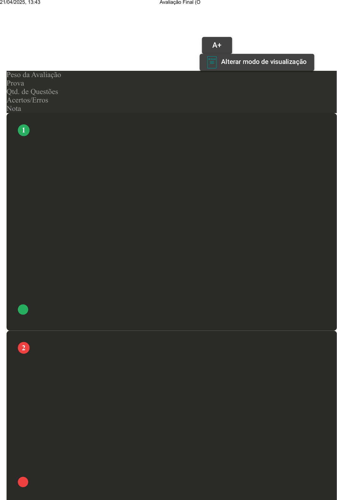 Prova Impressa GABARITO | Avaliação Final (Objetiva) - Individual (Cod.:1024235) Peso da Avaliação 4,00 Prova 96202400 Qtd. de Questões 10 Acertos/Erros 6/4 Nota 6,00 A sustentabilidade está relacionada ao uso dos recursos biofísicos, econômicos e sociais, segundo sua capacidade em um espaço geográfico, para obter bens e serviços diretos e indiretos da agricultura e dos recursos naturais para satisfazer as necessidades das gerações futuras e presentes. O valor presente dos bens e serviços deve representar mais que o valor das externalidades e dos insumos incorporados, melhorando ou pelo menos mantendo de forma indefinida a produtividade do ambiente biofísico e social. Com relação aos objetivos do desenvolvimento sustentável, analise as sentenças a seguir: I- Controle biológico e manejo integrado de pragas. II- Eficiência no sistema de irrigação. III- Utilização de plantações mais eficientes.Assinale a alternativa CORRETA: A Somente a sentença I está correta. B Somente a sentença II está correta. C Somente as sentenças II e III estão corretas. D Somente a sentença III está correta. E As sentenças I, II e III estão corretas. O processo de conversão de informações analógicas para digitais é uma atividade que consome muito recurso financeiro e tempo. Esse processo de conversão de dados a partir de mapas em papel para arquivos em computador é denominado de digitalização. O uso da tecnologia SIG mais atual possibilita que este processo seja automatizado por meio da tecnologia de scanning, entretanto, projetos de menor proporção poderão utilizar a digitalização manual por meio de uma mesa digitalizadora. Dessa forma, os dados geográficos precisam ser convertidos para um formato adequado. Com relação a esses formatos, analise as sentenças a seguir: I- O formato matricial tem uma estrutura de células de grade. II- No formato matricial os elementos possuem atributos, que consistem em texto ou informação numérica que descrevem os elementos. III- O formato vetorial representa o modo de visualizar os elementos do mundo real dentro do ambiente SIG. Assinale a alternativa CORRETA: A Somente a sentença III está correta. VOLTAR A+ Alterar modo de visualização 1 2 21/04/2025, 13:43 Avaliação Final (Objetiva) - Individual about:blank 1/5 B Somente a sentença I está correta. C Somente as sentenças I e III estão corretas. D Somente as sentenças I e II estão corretas. E Somente as sentenças II e III estão corretas. A agricultura de precisão deve ser compreendida como uma maneira de manejo sustentável, na qual as alterações ocorrem com mitigação dos impactos ambientais (PITASSI et al., 2014; EMBRAPA, 2018; MASSRUHÁ et al., 2020). Portanto, um manejo sustentável é algo além da manutenção dos índices de produtividade (FREITAS et al., 2012). FONTE: EMBRAPA. Visão 2030: o futuro da agricultura brasileira. Brasília, DF: Embrapa, 2018. FREITAS, C. C. G. et al. Transferência tecnológica e inovação por meio da sustentabilidade. Revista de Administração Pública, Rio de Janeiro, v. 46, n. 2, p. 363-384, 2012. MASSRUHÁ, S. M. F. S. et al. Agricultura digital: pesquisa, desenvolvimento e inovação nas cadeias produtivas. Brasília, DF: EMBRAPA, 2020. PITASSI, C.; GONCALVES, A. A.; MORENO JUNIOR, V. A. Fatores que influenciam a adoção de ferramentas de TIC nos experimentos de bioinformática de organizações biofarmacêuticas. Ciência & Saúde Coletiva, Rio de Janeiro, v. 19, n. 1, p. 257-268, 2014. Assinale a alternativa CORRETA: A Nos microrganismos benéficos, encontram-se os vírus que atuam na mobilização e transporte de nutrientes; produção de compostos orgânicos que auxiliam no desenvolvimento e, ainda, promovem a proteção contra patógenos, doenças e situações adversas. B O plantio direto é considerado uma tecnologia cara economicamente, podendo enquadrar-se nas diferentes regiões e níveis de tecnologias, auxiliando para uma agricultura sustentável. C A adubação madura é considerada um processo essencial, apesar de ser inviável, sua função principal é o retirar nutrientes das plantas pela utilização de leguminosas e gramínea. D A adubação verde é considerada um processo viável economicamente e sustentável, sua função principal é o fornecimento de nutrientes às plantas pela utilização de leguminosas e gramínea. E A mecanização sustentável pode aumentar de modo significativo a carga de trabalho do agricultor, levando em consideração suas necessidades específicas e melhorando o acesso a máquinas apropriadas. Para o efetivo uso de qualquer Sistema de Informação Gerencial, é importante que o usuário conheça os erros associados com a informação espacial. Os erros podem ser segmentados como idade dos dados, cobertura areal, escala, densidade de observações, relevância, formato entre outros. Com relação aos tipos de erros, analise as sentenças a seguir: I-O formato, referente aos meios de armazenamento, está relacionado aos aspectos técnicos de como os dados serão gravados (DVD, PEN DRIVE, entre outros) para serem transferidos para o computador. II- A acurácia posicional do problema sempre está ligada aos atributos dos pontos, linhas e área na base de dados geográfica, a qual sempre está correta. Revisar Conteúdo do Livro 3 4 21/04/2025, 13:43 Avaliação Final (Objetiva) - Individual about:blank 2/5 III-A acurácia do conteúdo está depende fundamentalmente do tipo de dados, sendo que seus erros são sempre resultados do processo de digitalização. Assinale a alternativa CORRETA: A II, apenas. B II e III, apenas. C I, apenas. D I e III, apenas. E III, apenas. A agricultura para o setor econômico brasileiro é essencial para a geração de riquezas. A agricultura brasileira se modificou no início da década de 1990, isto é, ocorreu a concentração do controle do setor para grandes empresas nacionais e transnacionais. Cabe destacar ainda que a agricultura