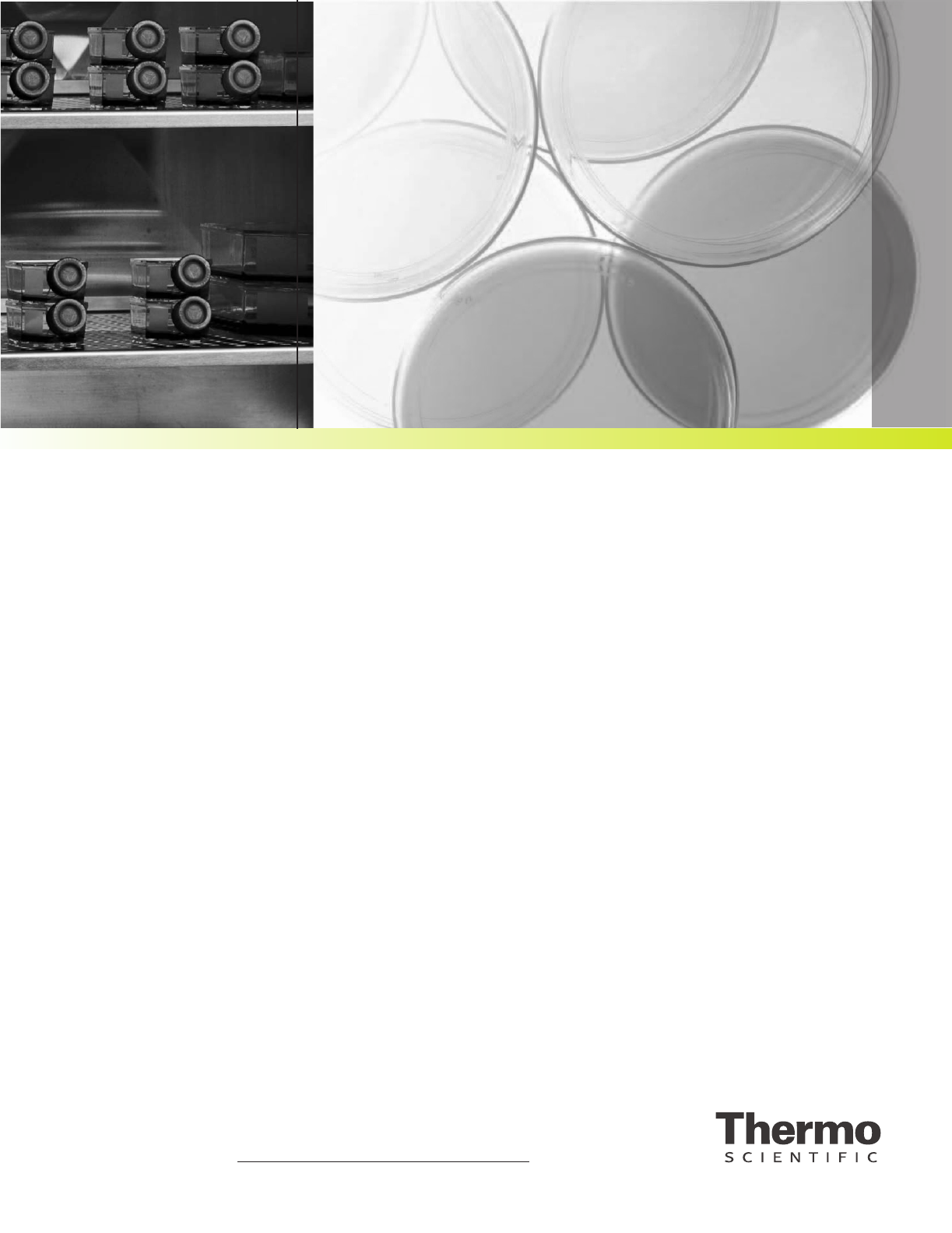 U ser M anual Model 4100 Series Forma Series 3 Water Jacket CO2 Incubator Operating Manual 7004100 Rev. 13 Visit us online to register your warranty www.thermoscientific.com/labwarranty http://www.thermoscientific.com/warranty Thermo Scientific Preface Water Jacketed CO2 Incubator i Preface MANUAL NUMBER 7004100 13 ECNM-002105 03/09/23 Updated assembly drawings in page 9-4 and 9-5. TFI 12 ECNM-002047 07/19/22 Updated the Shelf count in page 8-2. TFI 11 ECNM-001141 09/29/2020 Added tubing inspection details to preventive maintenance section in page 5-5. TFI 10 ECNM-000588 01/10/20 Removed fluorinated greenhouse gases para Pg 8-3, added safety instructions Pg.iii. Updated Micro Board and Display Board Assembly Parts. TFI 9 40539 6/16/17 Updated Alarms table bpg 8 41345 05/02/17 Added F-gas statement bpg 7 40511 02/08/17 Update cabinet frame assy drawing slb 6 40539 12/20/16 Revise section 5 , 4100 series alarms slb 5 40087/IN-4743 7/27/16 Changed the label on the remote alarm artwork to a note - pg 7-4 ccs 4 40507 9/16/15 Updated analog output board artwork (pg 7-6) and elec schematics ccs 3 31734 1/19/15 Corrected typos - IT, fig 6-21, PM, warranty ccs 2 31231/IN-4401 10/2/14 Added reversing door swing information, T/C models and options ccs 1 31414 9/15/14 Corrections to control panel references ccs 0 31414 7/24/14 Original ccs REV ECR/ECN DATE DESCRIPTION By Table 2. Single Chamber Models Model CO2 Sensor* O2 Voltage** 4110 T/C No 115 4111 T/C No 230 4120 IR No 115 4121 IR No 230 4130 T/C Yes 115 4131 T/C Yes 230 4140 IR Yes 115 4141 IR Yes 230 *T/C is a thermal conductivity sensor. IR is an infrared sensor. **All units are 50/60 Hz. Thermo Scientificii Water Jacketed CO2 Incubator Preface Important Read this instruction manual. Failure to read, understand and follow the instructions in this manual may result in damage to the unit, injury to operating personnel, and poor equipment performance. s Caution All internal adjustments and maintenance must be performed by qualified service personnel. s Material in this manual is for information purposes only. The contents and the product it describes are subject to change without notice. Thermo Fisher Scientific™ makes no representations or warranties with respect to this manual. In no event shall Thermo be held liable for any damages, direct or incidental, arising out of or related to the use of this manual. Intended purpose of the device Correct use The CO2 Water Jacket incubator is a general purpose laboratory device for preparing and cultivating cell and tissue cultures. The device allows the simulation of the special physiological ambient conditions for these cultures due to the exact control of temperature, CO2 content, O2 content, and increased relative humidity. Fields of application The CO2 Water Jacket incubator has been designed for installation and operation in the following fields of application: • Laboratories for cytobiological and biotechnological experiments of safety levels L1, L2, and L3. • Medical-microbiological laboratories in accordance with DIN 58 956. • Laboratories in the central area of clinics and hospitals. Gas supply system The gases required for the incubator (CO2 and / or O2) are supplied to the device from a separate gas supply system, either from gas cylinders or from a central pressurized gas container. The layout of the gas supply system must ensure that the operating pressure of the gas supply lines can be set to a range between 0.8 bar (min.) to 1 bar (max.) and that the pressure cannot be changed. If the device is equipped with the optional gas monitoring system, up to four devices can be interconnected in line, independent of the of the gas supply system capacity. The CO2 incubator is suitable for continuous operation. Incorrect use Do not use cell or tissue cultures in the device that are not in accordance with the regulations of safety levels L1, L2, and L3. Do not use tissues, substances or liquids that: • are easily ignitible or explosive, • release vapors that form combustible or explosive mixtures when exposed to air, • release poisons. The 4100 Series Water Jacket Incubators are for general purposes, not intended for use in any medical application, e.g. not intended for use as a Microbiological Incubator (21 CFR 866.2540) and also are not approved for use in assisted reproductive procedures for the incubation of ova and embryos (21 CFR 884.6120). Contains Parts and Assemblies Susceptible to Damage by Electrostatic Discharge (ESD) CAUTION Important operating and/or maintenance instructions. Read the accompanying text carefully. Potential electrical hazards. Only qualified persons should perform procedures associated with this symbol. Equipment being maintained or serviced must be turned off and locked off to prevent possible injury. Hot surface(s) present which may cause burns to unprotected skin, or to materials which may be damaged by elevated temperatures. Asphyxiation Hazard Warning. High concentrations of CO2 and N2 can displace oxygen and cause asphyxiation! Lifting Hazard Warning. The incubator weighs more than 200 lbs (91 kgs). Take adequate safety measures when moving this device. 4-Person Lift. The incubator weighs more than 200 lbs (91 kgs). It is recommended that four persons lift this device together to move it WEEE Compliance: Thermo Fisher Scientific has contracted with companies for recycling/disposal in each EU Member State to discard/recycle, For further information, email to weee.recycle@ thermofisher.com. 4 Always use the proper protective equipment (clothing, gloves, goggles, etc.) 4 Always dissipate extreme cold or heat and wear protective clothing. 4 Always follow good hygiene practices. 4 Each individual is responsible for his or her own safety. © 2023 Thermo Fisher Scientific Inc. All rights reserved. All (other) trademarks are the property of Thermo Fisher Scientific and its subsidiaries. In case of conflicting translations1. Place an accurate independent ins