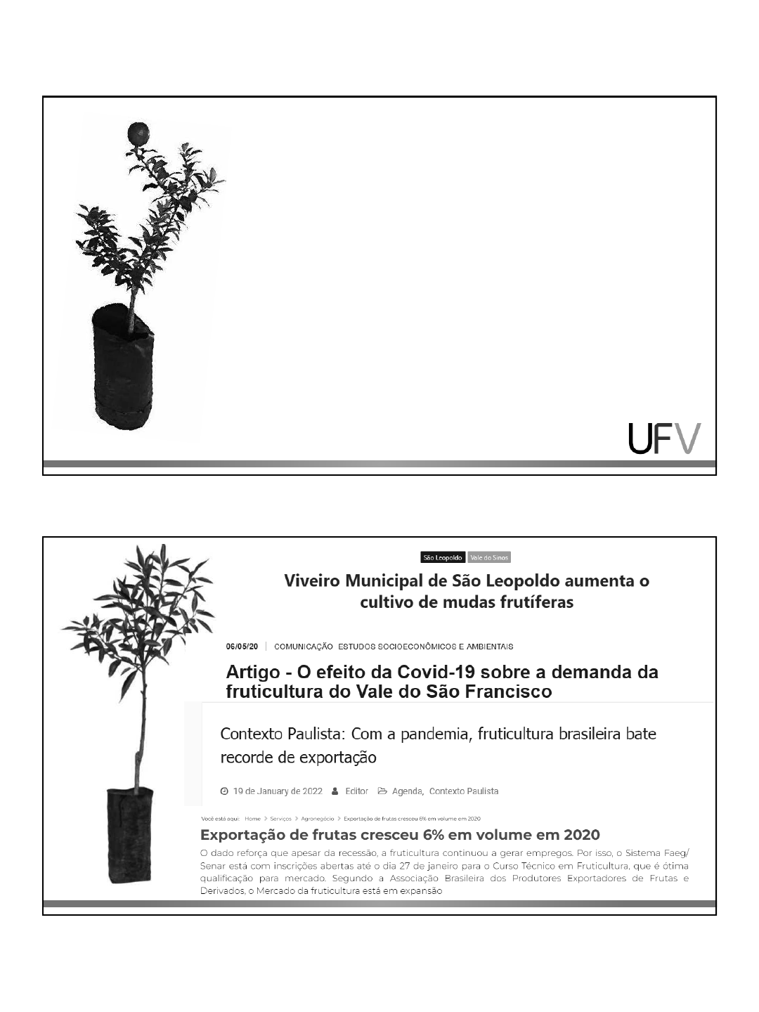 15/04/2023 1 PRODUÇÃO DE MUDAS FRUTÍFERAS DIEGO ISMAEL ROCHA diego.rocha@ufv.br 15/04/2023 2 O QUE É MUDA? Material de propagação vegetal de qualquer gênero, espécie ou cultivar, proveniente de reprodução sexuada ou assexuada, que tenha finalidade específica de plantio. MUDA LEI N 10.711 (2003) 15/04/2023 3 A qualidade da muda é fator essencial para o estabelecimento de um pomar produtivo e uniforme, capaz de produzir frutos de qualidade durante longo tempo e rentável para o produtor. A IMPORTÂNCIA DA PRODUÇÃO DE MUDAS A MUDA SE DESTACA COMO O MAIS IMPORTANTE INSUMO NA FORMAÇÃO DO POMAR. - Porta enxerto; - Sanidade das Mudas; - Fidelidade Varietal A IMPORTÂNCIA DA PRODUÇÃO DE MUDAS Muitos fatores ligados à qualidade das mudas não podem ser observados por análise visual Portanto, a honestidade do viveirista é algo apreciado no mercado de mudas! 15/04/2023 4 Regula TODAS as etapas inerentes à cadeia produtiva de sementes e mudas, bem como a certificação e a comercialização desses produtos no país. LEGISLAÇÃO DE PRODUÇÃO DE SEMENTES E MUDAS A legislação que se refere à produção e à comercialização de sementes e mudas é a Lei N.º 10.711, de 05 de agosto de 2003. Dispõe sobre o Sistema Nacional de Sementes e Mudas (SNSM) Garantir a identidade e a qualidade do material de multiplicação e de reprodução vegetal produzido, comercializado e utilizado em todo o território nacional OBJETIVO 15/04/2023 5 - CAP 1 - DISPOSIÇÕES PRELIMINARES - CAP 2 - DO SISTEMA NACIONAL DE SEMENTES E MUDAS (SNSM) - CAP 3 - DO REGISTRO NACIONAL DE SEMENTES E MUDAS (RENASEM) - CAP 4 - DO REGISTRO NACIONAL DE CULTIVARES (RNC) - CAP 5 - DA PRODUÇÃO E DA CERTIFICAÇÃO - CAP 6 - DA ANÁLISE DE SEMENTES E DE MUDAS - CAPS 7 e 8 - DO COMÉRCIO INTERNO E INTERNACIONAL - CAPS 9 e 10 - DA UTILIZAÇÃO E FISCALIZAÇÃO - CAP 11 - DAS COMISSÕES DE SEMENTES E MUDAS - CAP 12 - DAS PROIBIÇÕES - CAP 14 - DISPOSIÇÕES FINAIS - CAP 13 - DAS MEDIDAS CAUTELARES E DAS PENALIDADES LEI Nº 10.711 / 2003 - CAP 1 - DISPOSIÇÕES PRELIMINARES - CAP 2 - DO SISTEMA NACIONAL DE SEMENTES E MUDAS (SNSM) - CAP 3 - DO REGISTRO NACIONAL DE SEMENTES E MUDAS (RENASEM) - CAP 4 - DO REGISTRO NACIONAL DE CULTIVARES (RNC) - CAP 5 - DA PRODUÇÃO E DA CERTIFICAÇÃO - CAP 6 - DA ANÁLISE DE SEMENTES E DE MUDAS - CAPS 7 e 8 - DO COMÉRCIO INTERNO E INTERNACIONAL - CAPS 9 e 10 - DA UTILIZAÇÃO E FISCALIZAÇÃO - CAP 11 - DAS COMISSÕES DE SEMENTES E MUDAS - CAP 12 - DAS PROIBIÇÕES - CAP 14 - DISPOSIÇÕES FINAIS - CAP 13 - DAS MEDIDAS CAUTELARES E DAS PENALIDADES LEI Nº 10.711 / 2003 15/04/2023 6 LEI Nº 10.711 / 2003 - CAPÍTULO 2 - DO SNSM Art. 4o Compete ao Mapa promover, coordenar, normatizar, supervisionar, auditar e fiscalizar as ações decorrentes desta Lei e de seu regulamento. Art. 5o Compete aos Estados e ao Distrito Federal elaborar normas e procedimentos complementares relativos à produção de sementes e mudas, bem como exercer a fiscalização do comércio estadual. Parágrafo único. A fiscalização do comércio estadual de sementes e mudas poderá ser exercida pelo Mapa, quando solicitado pela unidade da Federação. Art. 6o Compete privativamente ao Mapa a fiscalização do comércio interestadual e internacional de sementes e mudas. O Renasem é o registro único, válido em todo o território nacional, cuja finalidade é habilitar perante o Ministério da Agricultura, Pecuária e Abastecimento pessoas físicas ou jurídicas que exerçam as atividades relacionadas a cadeia produtiva de sementes e mudas LEI Nº 10.711 / 2003 - CAPÍTULO 3 - DO RENASEM Que atividades? Atividades de produção, de beneficiamento, de reembalagem, de armazenamento, de análise ou de comércio de sementes ou de mudas e as atividades de responsabilidade técnica, de certificação, de amostragem, de coleta ou de análise de sementes ou de mudas previstas na Lei nº 10.711, de 2003, neste Decreto e em norma complementar. 15/04/2023 7 Art. 8o § 1o O Mapa credenciará, junto ao Renasem, pessoas físicas e jurídicas que atendam aos requisitos exigidos no regulamento desta Lei, para exercer as atividades de: I - responsável técnico; II - entidade de certificação de sementes e mudas; III - certificador de sementes ou mudas de produção própria; IV - laboratório de análise de sementes e de mudas; V - amostrador de sementes e mudas. LEI Nº 10.711 / 2003 - CAPÍTULO 3 - DO RENASEM Responsável técnico: engenheiro agrônomo ou engenheiro florestal, registrado no respectivo Conselho Regional de Engenharia, Arquitetura e Agronomia - Crea, a quem compete a responsabilidade técnica pela produção. Registro Nacional de Cultivares (RNC) – visa habilitar cultivares previamente para produção, comercialização e utilização de sementes e mudas em todo território nacional. LEI Nº 10.711 / 2003 - CAPÍTULO 4 - DO RNC Com o estabelecimento do RNC, o agricultor brasileiro passou a contar com um novo instrumento de proteção contra a venda indiscriminada de sementes e mudas de cultivares não testadas ou validadas para as diversas condições de solo e clima, sob as quais a agricultura brasileira é explorada. 15/04/2023 8 O Decreto nº5.153 / 2004 de 23 de julho de 2004 aprova o Regulamento da Lei nº 10.711, de 5 de agosto de 2003, que dispõe sobre o Sistema Nacional de Sementes e Mudas - SNSM, e dá outras providências. X O Decreto nº 10.586, de 18 de dezembro de 2020 modifica o decreto anterior e regulamenta a Lei nº 10.711, de 5 de agosto de 2003, que dispõe sobre o Sistema Nacional de Sementes e Mudas - SNSM, e dá outras providências. 15/04/2023 9 Cap. 2 - Art. 6º A inscrição e o credenciamento no Renasem terão validade de cinco anos e poderão ser renovados por períodos iguais sucessivamente, desde que solicitado e atendidas as exigências previstas neste Decreto e em norma complementar DECRETO Nº 10.586 / 2020 Cap. 3 - Art. 22. A inscrição da cultivar no RNC terá validade de quinz