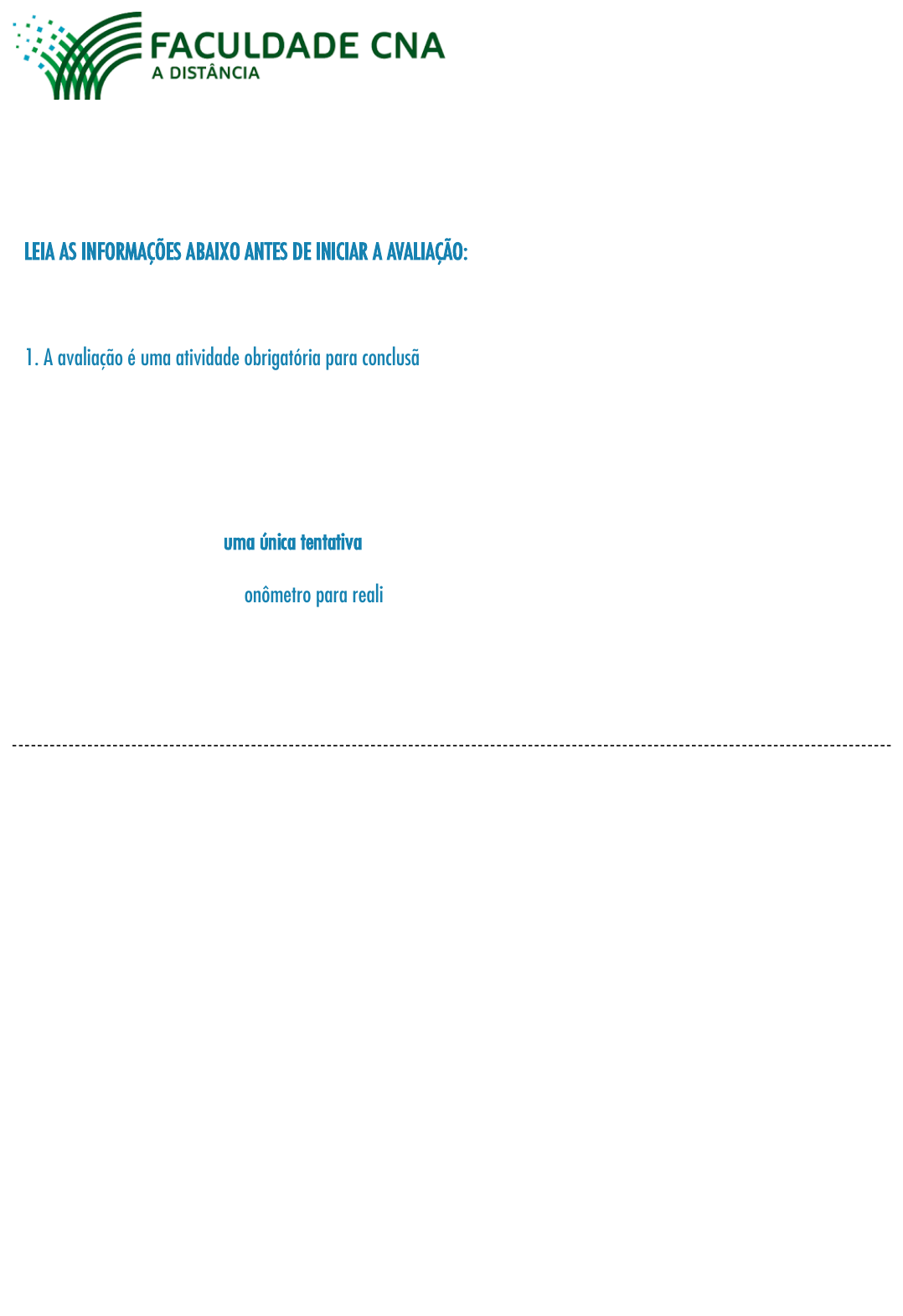 Sair Avaliação Avaliação final LEIA AS INFORMAÇÕES ABAIXO ANTES DE INICIAR A AVALIAÇÃO: 1. A avaliação é uma atividade obrigatória para conclusão do Módulo; 2. Esta avaliação possui apenas questões objetivas; 3. Leia atentamente o enunciado e as alternativas de cada questão: ao inserir sua resposta, releia e verifique se está de acordo com o que foi proposto na questão; 4. O AVA permite o envio de uma única tentativa de resposta à avaliação; 5. A avaliação não possui um cronômetro para realização, apenas atente-se ao prazo do módulo; 6. Após realizar todas as questões e revisar suas respostas, clique no botão “FINALIZAR AVALIAÇÃO” ao final da tela. Nome: Emerson Nakano Costa Junior CPF: 056.189.341-16 Data Nascimento: 05/01/1997 1) (0,5 ponto) Observe os dados de uma de uma propriedade com foco na ovinocaprinocultura: 06/05/2025, 20:46 Avaliações https://lms.faculdadecna.com.br/avaliacao/avaliacao/496.16051.16977327.b8598 1/15 https://lms.faculdadecna.com.br/avaliacao/logout Login Inválido. 06/05/2025, 20:46 Avaliações https://lms.faculdadecna.com.br/avaliacao/avaliacao/496.16051.16977327.b8598 2/15 Login Inválido. 06/05/2025, 20:46 Avaliações https://lms.faculdadecna.com.br/avaliacao/avaliacao/496.16051.16977327.b8598 3/15 Login Inválido. 06/05/2025, 20:46 Avaliações https://lms.faculdadecna.com.br/avaliacao/avaliacao/496.16051.16977327.b8598 4/15 A partir dos dados apresentados, calcule o COT da atividade e assinale a alternativa que contém a afirmativa correta. COT = R$ 81.856,30/ano COT = R$ 75.987,29/ano COT = R$ 83.367,75/ano COT = R$ 76.588,50/ano COT = R$ 78.808,78/ano 2) (0,5 ponto) Analise o seguinte caso hipotético: O Sr. Antônio é um tradicional pecuarista de corte, porém sua região vem sofrendo profundas modificações com a chegada das culturas de soja e cana-de-açúcar. Dos seus 1.500 hectares de terra, uma indústria sucroalcooleira arrendou cerca de 600 hectares para o plantio de cana. Na época, por não realizar a gestão da sua atividade, o Sr. Antônio aceitou receber o que lhe foi oferecido, uma vez que não teria trabalho e receberia uma "renda fixa" com esse arrendamento. Ele também resolveu plantar soja, a exemplo de outras propriedades da região. Inicialmente, dos 900 hectares restantes, destinou 300 para o plantio e permaneceu com 600 para a criação de gado. Com o tempo, ele foi aumentando a área destinada ao plantio de soja e, atualmente, possui apenas 300 hectares para o gado e 600 para a soja. Login Inválido. 06/05/2025, 20:46 Avaliações https://lms.faculdadecna.com.br/avaliacao/avaliacao/496.16051.16977327.b8598 5/15 As inovações tecnológicas implementadas permitiram otimizar o uso da terra, fazendo com que a produtividade do gado melhorasse, assim como os resultados gerais da fazenda. Agora, contando com sua Assistência Técnica e Gerencial, o Sr. Antônio encontra-se em um dilema e espera que você possa ajudá-lo a resolver. Ele possui um trator com valor igual a R$ 200.000,00, que já está com 10 anos de uso. A expectativa de vida útil do veículo é de 15 anos e ele precisa receber uma manutenção que está estimada em R$ 24.500,00. O uso desse trator foi corretamente rateado em 85% para agricultura e 15% para pecuária. Então ele quer saber: "Posso atribuir essa despesa no COE da agricultura, porque ela utilizar mais o trator?" Nessa situação, a diversificação da atividade em uma propriedade rural é causa de análise dos custos de produção. Sabendo que na região o valor atualizado do bem em questão é R$ 90.000,00, assinale a resposta correta no que se refere à análise de custos: Esse custo deve ser rateado proporcionalmente entre as atividades soja e bovinocultura (85% e 15%, respectivamente), devendo ser lançado como investimento na atividade soja e COE na atividade bovinocultura de corte. Provavelmente a máquina se desgastou devido ao uso excessivo na atividade agrícola, e seu custo de manutenção deve ser lançado como investimento da atividade soja, por ter ultrapassado o limite de 30% estabelecido pela metodologia. Esse custo deve ser rateado proporcionalmente entre as atividades soja e bovinocultura (85% e 15%, respectivamente), devendo ser lançado em ambos os casos como COE, por não ter ultrapassado o limite de 30% estabelecido pela metodologia. Provavelmente a máquina se desgastou devido ao uso excessivo na atividade agrícola, e seu custo de manutenção deve ser lançado no COE da atividade soja, por não ter ultrapassado o limite de 30% estabelecido pela metodologia. Esse custo deve ser rateado proporcionalmente entre as atividades soja e bovinocultura (85% e 15%, respectivamente), devendo ser lançado como investimento em ambos os casos, por ter ultrapassado o limite de 30% estabelecido pela metodologia. 3) (0,5 ponto) O custo total (CT) de produção representa a somatória de todos os esforços que uma empresa ou pessoa necessita suportar para que possa ofertar determinado produto ao mercado consumidor, sendo o valor de venda a recompensa por esses esforços. É importante conhecer o CT, justamente para que o gestor avalie se é compensatório ou não continuar oferecendo seus produtos frente aos valores recebidos por eles. Entre os elementos que compõem o custo total, há alguns que são pagos a terceiros e outros que retornam ao produtor rural, constituindo parte de seus rendimentos anuais. Identifique a alternativa que contém elementos que retornam em forma de rendimentos anuais ao produtor e assinale a alternativa correta. Custo de oportunidade e custo operacional efetivo. Custo de oportunidade e depreciação. Mão de obra familiar e custo operacional efetivo. Mão de obra familiar e depreciação. Login Inválido. 06/05/2025, 20:46 Avaliações https://lms.faculdadecna.com.br/avaliacao/avaliacao/496.16051.16977327.b8598 6/15 Mão de obra familiar e custo de oportunidade. 4) (0,5 ponto) A margem bruta é o primeiro indicador econômico da 