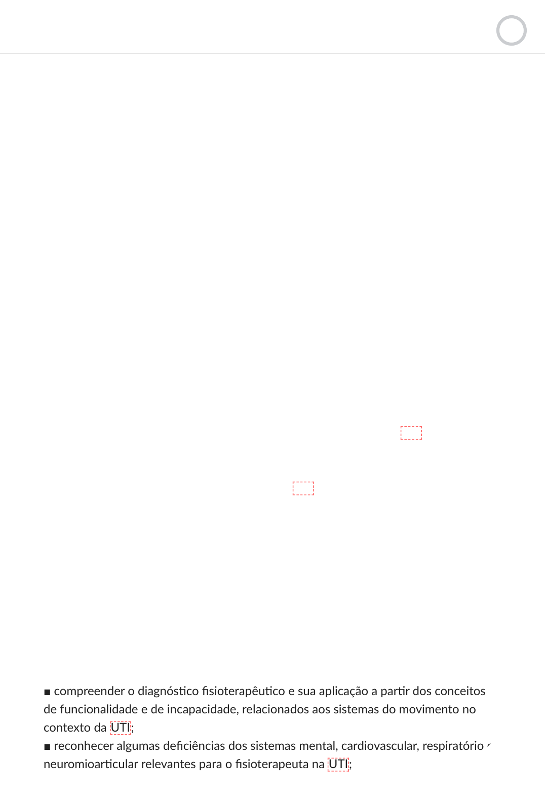 27/02/2023, 22:28 DIAGNÓSTICO FISIOTERAPÊUTICO NA UNIDADE DE TERAPIA INTENSIVA - SECAD https://portal.secad.artmed.com.br/artigo/diagnostico-fisioterapeutico-na-unidade-de-terapia-intensiva 1/25 DIAGNÓSTICO FISIOTERAPÊUTICO NA UNIDADE DE TERAPIA INTENSIVA BRUNO PRATA MARTINEZ ■ INTRODUÇÃO O diagnós�co fisioterapêu�co pode ser definido como o processo de registro das impressões relacionadas aos distúrbios do movimento e de seus fatores causais, relacionados aos sistemas mental, cardiovascular, respiratório e neuromioar�cular. Neste sen�do, é necessário que o fisioterapeuta realize avaliação qualita�va e quan�ta�va das funções e estruturas corporais relacionadas ao movimento, das limitações de a�vidades e das restrições à par�cipação social, bem como dos fatores pessoais e ambientais, que podem estar alterados pelas diversas modificações do estado de saúde, principalmente nas unidades de terapia intensiva (UTIs). O fisioterapeuta, segundo o seu código de é�ca profissional, está habilitado a realizar esse procedimento, visando a iden�ficar os efeitos da doença sobre os diversos sistemas do movimento, principalmente na UTI. A par�r do conhecimento das alterações funcionais, ele será capaz de traçar os obje�vos terapêu�cos, além de prescrever o plano de tratamento, avaliando as respostas às condutas a curto, médio e longo prazos. Alguns fatores, como a influência do modelo médico, focado apenas na doença, e o tecnicismo dificultam a realização do diagnós�co fisioterapêu�co, levando-o a se preocupar mais com a execução da técnica fisioterapêu�ca do que com a compreensão dos fatores causais e do momento no qual a mesma deve ser realizada. ■ OBJETIVOS Ao final da leitura deste ar�go, o leitor deverá ser capaz de: ■ compreender o diagnós�co fisioterapêu�co e sua aplicação a par�r dos conceitos de funcionalidade e de incapacidade, relacionados aos sistemas do movimento no contexto da UTI; ■ reconhecer algumas deficiências dos sistemas mental, cardiovascular, respiratório e neuromioar�cular relevantes para o fisioterapeuta na UTI; 1-4 5 3 Aa AA https://portal.secad.artmed.com.br/ https://portal.secad.artmed.com.br/ https://secadartmed.zendesk.com/hc/pt-br https://portal.secad.artmed.com.br/chatbot 27/02/2023, 22:28 DIAGNÓSTICO FISIOTERAPÊUTICO NA UNIDADE DE TERAPIA INTENSIVA - SECAD https://portal.secad.artmed.com.br/artigo/diagnostico-fisioterapeutico-na-unidade-de-terapia-intensiva 2/25 ■ iden�ficar os instrumentos de avaliação u�lizados na UTI a par�r do conceito de funcionalidade e incapacidade; ■ elaborar o diagnós�co fisioterapêu�co na UTI. ■ ESQUEMA CONCEITUAL ■ DIAGNÓSTICO FISIOTERAPÊUTICO Como o principal obje�vo do fisioterapeuta é avaliar o impacto que as alterações do estado de saúde e a ina�vidade exercem sobre os sistemas responsáveis pelo movimento humano, o diagnós�co pode ser baseado nos conceitos da Classificação Internacional da Funcionalidade, Incapacidade e Saúde (CIF), publicada pela Organização Mundial de Saúde (OMS) em 2001. Essa classificação define domínios necessários para elaboração do diagnós�co, que englobam os seguintes termos: ■ funcionalidade: estruturas e funções do corpo, a�vidades e par�cipação social; ■ incapacidade: deficiência, limitação de a�vidade e restrição à par�cipação social. Algumas definições da CIF, referentes aos seus domínios, encontram-se descritas no Quadro 1, a seguir. Quadro 1 6 Aa AA https://portal.secad.artmed.com.br/ https://portal.secad.artmed.com.br/ https://secadartmed.zendesk.com/hc/pt-br https://portal.secad.artmed.com.br/chatbot 27/02/2023, 22:28 DIAGNÓSTICO FISIOTERAPÊUTICO NA UNIDADE DE TERAPIA INTENSIVA - SECAD https://portal.secad.artmed.com.br/artigo/diagnostico-fisioterapeutico-na-unidade-de-terapia-intensiva 3/25 CONCEITOS DA CLASSIFICAÇÃO INTERNACIONAL DA FUNCIONALIDADE, INCAPACIDADE E SAÚDE Domínios De�nição Funções do corpo Funções fisiológicas dos sistemas orgânicos (incluindo as funções psicológicas), ou seja, refere-se a como cada sistema executa seus obje�vos. Exemplo: a função do sistema cardiovascular é bombear sangue para os diversos tecidos do corpo; porém, para isso, é necessário que existam estruturas anatômicas preservadas, como coração e vasos Estruturas do corpo Partes anatômicas do corpo, como órgãos, membros e seus componentes A�vidade Execução das diversas tarefas ou ações pelo indivíduo no seu dia a dia Par�cipação social Envolvimento que o indivíduo pode ter com as diversas situações da vida real Deficiência Toda a alteração das funções e estruturas do corpo. Exemplo: o indivíduo que tem miocardiopa�a chagásica dilatada terá deficiência de estrutura (coração com anatomia modificada) e de função (débito cardíaco reduzido) Limitação de a�vidade Problemas que o indivíduo apresenta na execução de suas a�vidades. Exemplo: um indivíduo paraplégico tem limitação para andar; porém, pode locomover-se com disposi�vos auxiliares, como cadeira de rodas Restrição de par�cipação Problemas que o indivíduo pode enfrentar nas situações da vida real. Exemplo: um indivíduo com hemiplegia poderá ter restrição para par�cipação social de ir à igreja de forma independente Esses domínios têm como obje�vo descrever a saúde e os estados de saúde alterados pelas diversas doenças e por condições relacionadas como a ina�vidade. A CIF engloba todas as estruturas e funções corporais, não se restringindo apenas aos aspectos relacionados ao movimento humano. Por isso, é um instrumento u�lizado por todos os profissionais de saúde, diferentemente da Classificação Internacional da Doença (CID), u�lizada apenas pelo médico para classificação das doenças. A avaliação da funcionalidade serve para que exista uma linguagem comum em todo 