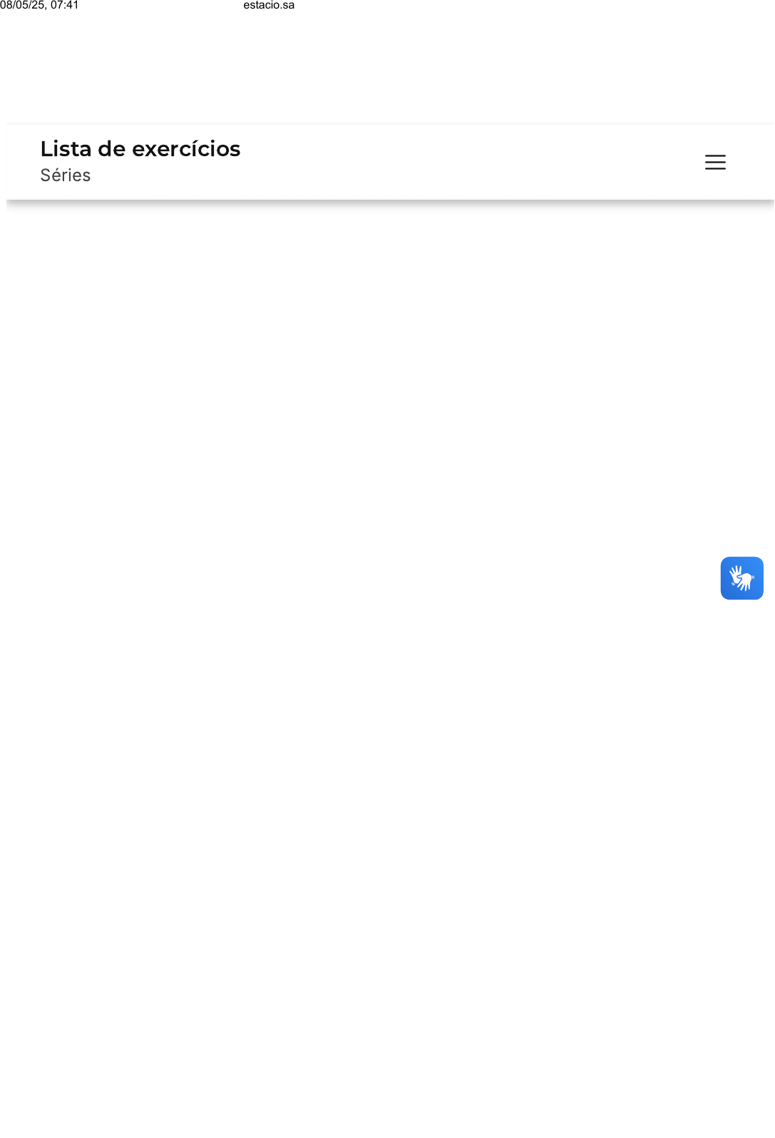 Lista de exercícios Séries 08/05/25, 07:41 estacio.saladeavaliacoes.com.br/exercicio/681be2c4a863e464b0b8eb6e/gabarito/ https://estacio.saladeavaliacoes.com.br/exercicio/681be2c4a863e464b0b8eb6e/gabarito/ 1/11 Você acertou 7 de 10 questões Verifique o seu desempenho e continue treinando! Você pode refazer o exercício quantas vezes quiser. Verificar Desempenho A B C D E 1 Marcar para revisão Marque a alternativa correta relacionada à série Σn 1 n+1 (n+1)(n+8) É divergente É convergente com soma 1 10 É convergente com soma 1 8 É convergente com soma 1 9 É convergente com soma 1 11 Resposta correta Parabéns, você selecionou a alternativa correta. Confira o gabarito comentado! Gabarito Comentado A série em questão é convergente e sua soma é . Isso pode ser determinado através da aplicação de técnicas de cálculo para séries infinitas 1 10 08/05/25, 07:41 estacio.saladeavaliacoes.com.br/exercicio/681be2c4a863e464b0b8eb6e/gabarito/ https://estacio.saladeavaliacoes.com.br/exercicio/681be2c4a863e464b0b8eb6e/gabarito/ 2/11 A B C D E infinitas. 2 Marcar para revisão Marque a alternativa correta em relação às séries e . sn = Σ∞ 1 n3+2n √n7+1 tn = Σ∞ 1 4 5n−1 Ambas são divergentes. Ambas são convergentes. A série é divergente e é convergente.sn tn A série é convergente e é divergente.sn tn Não é possível analisar a convergência das séries. Resposta correta Parabéns, você selecionou a alternativa correta. Confira o gabarito comentado! Gabarito Comentado A alternativa correta é a que afirma que a série é divergente e a série é convergente. Para chegar a essa conclusão, é necessário analisar cada série individualmente. A série é divergente, pois seu termo geral não tende a zero quando n tende ao infinito. Já a série é convergente, pois seu termo geral tende a zero quando n tende ao infinito e a série é decrescente, satisfazendo assim o critério de convergência de séries positivas. sn tn sn tn 08/05/25, 07:41 estacio.saladeavaliacoes.com.br/exercicio/681be2c4a863e464b0b8eb6e/gabarito/ https://estacio.saladeavaliacoes.com.br/exercicio/681be2c4a863e464b0b8eb6e/gabarito/ 3/11 A B C D E 3 Marcar para revisão Determine o raio e o intervalo de convergência, respectivamente, da série de potência Σ∞ 1 (x − 5)k(k + 1)! 0 e [5] 1 e (1, 5) 0 e [−5] ∞ e [5] ∞ e (−∞, ∞) Resposta incorreta Opa! A alternativa correta é a letra A. Confira o gabarito comentado! Gabarito Comentado A alternativa correta é a que indica que o raio de convergência da série de potência é 0 e o intervalo de convergência é [5]. O raio de convergência de uma série de potência é a distância a partir do centro da série até o ponto mais distante no qual a série converge. Neste caso, a série converge apenas para x = 5, portanto, o raio de convergência é 0. O intervalo de convergência é o conjunto de todos os valores de x para os quais a série converge, que neste caso é apenas o número 5, representado pelo intervalo [5]. 4 Marcar para revisão Marque a alternativa correta em relação à série .Σ∞ 1 3 1+5n 08/05/25, 07:41 estacio.saladeavaliacoes.com.br/exercicio/681be2c4a863e464b0b8eb6e/gabarito/ https://estacio.saladeavaliacoes.com.br/exercicio/681be2c4a863e464b0b8eb6e/gabarito/ 4/11 A B C D E + É divergente É convergente com soma no intervalo ( , )1 6 1 3 É convergente com soma no intervalo ( , )1 4 3 4 É convergente com soma no intervalo ( , )1 4 1 3 É convergente com soma no intervalo ( , )1 2 3 4 Resposta correta Parabéns, você selecionou a alternativa correta. Confira o gabarito comentado! Gabarito Comentado A série dada é uma série geométrica com razão menor que 1, portanto, é convergente. A soma de uma série geométrica é dada pela fórmula S = a / (1 - r), onde a é o primeiro termo e r é a razão. Neste caso, o primeiro termo é3 / (1 + 5) e a razão é 1/5. Substituindo esses valores na fórmula, obtemos que a soma da série está no intervalo .( , )1 2 3 4 5 Marcar para revisão Determine o raio e o intervalo de convergência, respectivamente, da série de potência Σ∞ 1 (x+4)k (k+1)! ( ] 08/05/25, 07:41 estacio.saladeavaliacoes.com.br/exercicio/681be2c4a863e464b0b8eb6e/gabarito/ https://estacio.saladeavaliacoes.com.br/exercicio/681be2c4a863e464b0b8eb6e/gabarito/ 5/11 A B C D E A B e ( − , ]1 2 1 2 1 2 1 e ( − , ]1 2 1 2 0 e [ ]1 2 e ( − 1, ]1 2 1 2 ∞ e (−∞, ∞) Resposta correta Parabéns, você selecionou a alternativa correta. Confira o gabarito comentado! Gabarito Comentado O raio de convergência de uma série de potência é o valor de x𝑥 para o qual a série converge. Neste caso, a série converge para todos os valores de x𝑥, o que significa que o raio de convergência é infinito. O intervalo de convergência é o conjunto de todos os valores de x𝑥 para os quais a série converge. Neste caso, a série converge para todos os valores reais de x𝑥, portanto, o intervalo de convergência é (−∞,∞). 6 Marcar para revisão Marque a alternativa que apresenta a série de Maclaurin da função .f(x) = ex f(x) = 1 + x + + + +. . .x2 2! x3 3! x4 4! f(x) = x + + + +x2 x3 x4 08/05/25, 07:41 estacio.saladeavaliacoes.com.br/exercicio/681be2c4a863e464b0b8eb6e/gabarito/ https://estacio.saladeavaliacoes.com.br/exercicio/681be2c4a863e464b0b8eb6e/gabarito/ 6/11 B C D E A B C D f(x) = x + + + +. . . 3! 4! 5! f(x) = 1 − x + − + +. . .x2 2! x3 3! x4 4! f(x) = 1 + x + + + +. . .x2 2 x3 3 x4 4 f(x) = 1 − x + − + +. . .x2 2 x3 3 x4 4 Resposta correta Parabéns, você selecionou a alternativa correta. Confira o gabarito comentado! Gabarito Comentado A série de Maclaurin para a função exponencial é dada por . Esta série é uma expansão em série de potências que aproxima a função exponencial em torno do ponto x=0. Cada termo da série é derivado da função original, sendo dividido pelo fatorial do número da derivada. f(x) = ex f(x) = 1 + x + + + +. . .x2 2! x3 3! x4 4