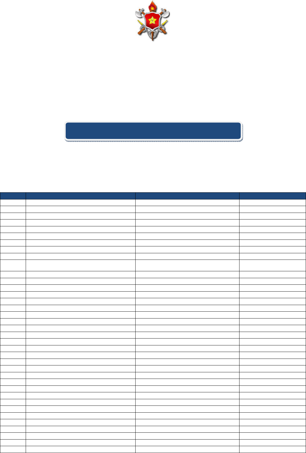 1 EDITAL DE HOMOLOGAÇÃO DE INSCRIÇÕES CORPO DE BOMBEIROS MILITAR DO DISTRITO FEDERAL GABINETE DO COMANDANTE-GERAL COMISSÃO PERMANENTE DE CONCURSOS CONCURSO PÚBLICO PARA MATRÍCULA NO CURSO DE HABILITAÇÃO DE OFICIAIS BOMBEIROS MILITARES (CHOBM) DOS QUADROS DE OFICIAIS BOMBEIROS MILITARES DE SAÚDE E COMPLEMENTAR DO CORPO DE BOMBEIROS MILITAR DO DISTRITO FEDERAL EDITAL Nº 001, DE 1º DE JULHO DE 2016 O Instituto responsável pela organização e coordenação do certame, IDECAN, no uso das atribuições concedidas pelo Edital Nº 001 de 2016 que normatiza o Concurso Público para Matrícula no Curso de Habilitação de Oficiais Bombeiros Militares (CHOBM) dos Quadros de Oficiais Bombeiros Militares de Saúde e Complementar do Corpo de Bombeiros Militar do Distrito Federal, vem, após a verificação de regularidade, apresentar: 1 – Relação de candidatos homologados para a realização da prova escrita: Inscrição Nome Curso de Formação Data / Horário da inscrição 727006926 Abikeila Moreira Da Costa Aspirante/Complementares - Enfermagem 17/08/2016 10:41:50 727009531 Abner Pereira De Oliveira Aspirante/Complementares - Engenharia Elétrica 31/08/2016 23:04:19 727012164 Ada Fafias Oliveira Lima Aspirante/Complementares - Enfermagem 18/12/2016 18:31:54 727001589 Adaiana Souza Da Silva Aspirante/Complementares - Farmácia-Bioquímica 21/07/2016 12:13:27 727008235 Adália Raissa Alves Da Costa Aspirante/Complementares - Serviço Social 18/08/2016 23:53:56 727011984 Adalto Alves Costa Filho Aspirante/Complementares - Engenharia Civil 14/12/2016 22:08:08 727005892 Adelian Araujo Branquinho Aspirante/Médico - Cirurgia Vascular 13/08/2016 19:53:02 727009841 Adelson Henrique De Holanda Filho Aspirante/Complementares - Psicologia Clínica 01/09/2016 20:14:41 727006931 Ademar Bandeira Rufino Aspirante/Complementares - Engenharia Civil 17/08/2016 10:50:18 727006402 Ademário Regis De Britto Neto Aspirante/Complementares - Psicologia Organizacional e do Trabalho 15/08/2016 22:55:59 727012349 Ademir Faria Campos Aspirante/Complementares - Engenharia Civil 19/12/2016 16:44:17 727012137 Adenilton Carvalho De Souza Aspirante/Complementares - Enfermagem 18/12/2016 11:50:38 727004896 Adhemar Henrique Da Costa Santos Aspirante/Complementares - Engenharia Civil 08/08/2016 11:23:55 727003309 Adilson Roque Da Silva Junior Aspirante/Médico - Ortopedia e Traumatologia 29/07/2016 13:18:37 727007038 Adilson Silva Rebelo De Melo Aspirante/Complementares - Fisioterapia 17/08/2016 14:49:45 727005857 Adlla Rabelo Silva Dos Anjos Aspirante/Complementares - Nutrição 13/08/2016 10:46:56 727005846 Adonai Patrick De Oliveira Gabriel Aspirante/Complementares - Farmácia-Bioquímica 13/08/2016 06:33:08 727006486 Adria Do Prado Barros De Souza Aspirante/Complementares - Farmácia-Bioquímica 16/08/2016 10:35:45 727007037 Adriana Abreu Resende Aspirante/Médico - Cardiologia 17/08/2016 14:47:08 727003877 Adriana Arao Da Silva Reis Aspirante/Complementares - Serviço Social 02/08/2016 09:35:21 727005199 Adriana Boreli De Oliveira Aspirante/Complementares - Enfermagem 09/08/2016 16:11:09 727009507 Adriana De Jesus Macedo Aspirante/Cirurgião-Dentista - Endodontia 31/08/2016 21:39:39 727009230 Adriana Feijó Da Costa Aspirante/Complementares - Fisioterapia 30/08/2016 14:11:19 727000127 Adriana Fernandes Barreto Aspirante/Complementares - Fisioterapia 18/07/2016 15:04:52 727000065 Adriana Fernandes De Amorim Campello Aspirante/Cirurgião-Dentista - Endodontia 18/07/2016 14:28:32 727001924 Adriana Fontenele Ferreira Aspirante/Complementares - Enfermagem 22/07/2016 15:41:20 727009260 Adriana Franco Gomes Vieira Aspirante/Complementares - Enfermagem 30/08/2016 15:34:10 727004579 Adriana Giacomini Carrett Aspirante/Complementares - Fisioterapia 05/08/2016 14:30:01 727008935 Adriana Junqueira Borges Aspirante/Complementares - Enfermagem 28/08/2016 14:25:09 727002910 Adriana Lima De Freitas Neri Aspirante/Complementares - Nutrição 27/07/2016 14:16:17 727004007 Adriana Lobo Dos Prazeres Spohr Aspirante/Complementares - Serviço Social 02/08/2016 16:09:03 727001246 Adriana Mendonça Bonadio Barbosa Aspirante/Complementares - Nutrição 20/07/2016 12:31:49 727003488 Adriana Paulino De Oliveira Aspirante/Complementares - Enfermagem 31/07/2016 11:52:56 727008554 Adriana Pereira Torres Aspirante/Complementares - Nutrição 22/08/2016 22:39:46 727001833 Adriana Silva Lopes Aspirante/Complementares - Nutrição 22/07/2016 10:49:33 727006252 Adriana Sousa Freire Aspirante/Médico - Radiologia 15/08/2016 15:54:41 727011041 Adriana Tiemi Yamagata Aspirante/Complementares - Farmácia-Bioquímica 23/11/2016 14:43:55 2 Inscrição Nome Curso de Formação Data / Horário da inscrição 727007751 Adriane Barbosa De Brito Aspirante/Complementares - Serviço Social 18/08/2016 14:29:40 727009912 Adriane Barbosa Gomide Aspirante/Complementares - Fisioterapia 01/09/2016 22:19:46 727004415 Adriane Cordova De Almeida Campos Aspirante/Complementares - Museologia 04/08/2016 14:01:24 727000455 Adriane Guedes Ferreira Aspirante/Complementares - Farmácia-Bioquímica 18/07/2016 20:04:44 727006137 Adriane Rocha Moura Aspirante/Complementares - Nutrição 15/08/2016 10:51:44 727010218 Adriano Alvares Da Silva Aspirante/Complementares - Engenharia Civil 15/11/2016 14:27:03 727008289 Adriano Ferreira Da Silva Aspirante/Complementares - Psicologia Clínica 19/08/2016 11:51:22 727005515 Adriano Ferreira De Santana Aspirante/Complementares - Enfermagem 10/08/2016 22:43:45 727001274 Adriano Luis Silva Guimaraes Aspirante/Complementares - Farmácia-Bioquímica 20/07/2016 13:13:35 727004259 Adriano Pereira Beserra Aspirante/Complementares - Psicologia Clínica 03/08/2016 17:44:24 727000831 Adriano Reis De Matos Aspirante/Complementares - Farmácia-Bioquímica 19/07/2016 13:45:29 727012153 Adriano Santos Silva Aspirante/Complementares - Psicologia Clínica 18/12/2016 16:58:55 727000407 Adriano Tavares Araujo Aspirante/Complementares - Engenharia Mecâni