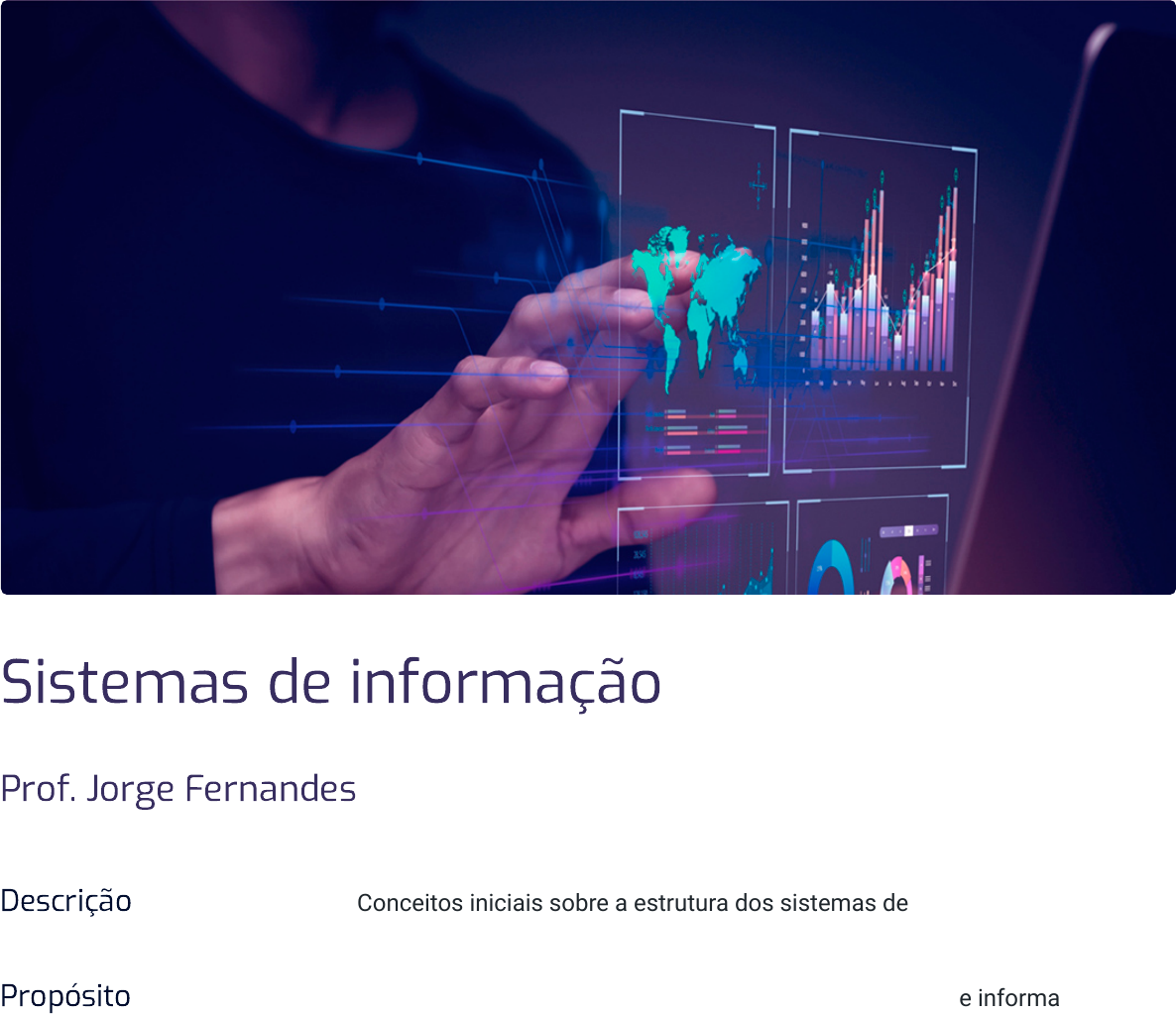 Sistemas de informação Prof. Jorge Fernandes Descrição Conceitos iniciais sobre a estrutura dos sistemas de informação. Propósito Desenvolvimento de conhecimentos sobre os sistemas de informação. Objetivos Módulo 1 Conceitos básicos Identificar os conceitos básicos de sistemas de informação. Módulo 2 Sistemas de informação e competitividade Identificar os sistemas de informação e competitividade. Módulo 3 Infraestrutura para sistemas de informação Identificar a infraestrutura para sistemas de informação. Módulo 4 Principais tipos de sistemas de informação Identificar os principais tipos de sistemas de informação. Introdução Quase todos os programas de negócios possuem uma disciplina chamada Sistemas de Informação. As empresas dependem de informações baseadas em dados para prosperar e ter sucesso. Os sistemas de informação fornecem os meios e o meio para coletar, armazenar, proteger, recuperar, compartilhar, analisar e apresentar os dados; logo, os sistemas de informação desempenham um papel importante em nosso mundo moderno. Quase todos os serviços, desde serviços bancários a viagens, até aplicações complexas de assistência médica, exploram sistemas de informação para manipulação de dados. Os conceitos centrais de qualquer sistema de informação, ou seja, pessoas, processos e tecnologia, serão discutidos aqui. Apresentaremos uma visão geral dos conceitos fundamentais de sistemas de informação, definição de termos-chave e tendências atuais, o papel e a importância da informação e sistemas de informação para negócios e gestão e suas implicações. 1 - Conceitos básicos Ao final deste módulo, você será capaz de identificar os conceitos básicos de sistemas de informação. Vamos começar Entenda os conceitos e a evolução dos sistemas de informação e como eles foram e são utilizados no mundo real. Sistema de informação no mundo real Neste vídeo, falaremos sobre a importância dos sistemas de informação para todas as operações de compra e venda de produtos e para a organização dentro das empresas. Um sistema de informação (SI) é um conjunto de componentes inter-relacionados – software, hardware e redes de telecomunicações – que coletam, manipulam e armazenam dados; e disseminam informações úteis, especialmente em uma organização para aumentar receitas, reduzir custos, gerenciar suas operações, interagir com seus consumidores e ficar à frente da concorrência. Na década de 1960, os sistemas de informação nas organizações foram estruturados em torno de quatro elementos essenciais: tarefa, pessoa, estrutura e tecnologia. O padrão é conhecido como Diamante de Leavitt (1965, p. 1145): Diamante de Leavitt. Tarefa Atividades necessárias para a produção de um bem ou serviço. Essas atividades são apoiadas pelo fluxo de material, informação e conhecimento entre os diferentes participantes. Pessoa O componente pessoa de um sistema de informação engloba todas as pessoas diretamente envolvidas no sistema. Essas pessoas incluem os gerentes que definem os objetivos do sistema, os usuários e os desenvolvedores. Hoje, algumas empresas são totalmente estruturadas a partir de sistemas de informação, como eBay, Amazon, Alibaba e Google, sendo seus quatro componentes principais definidos como: Estrutura O componente de estrutura organizacional e sistemas de informação refere- se ao relacionamento entre componentes de indivíduos e pessoas. Assim, abrange estruturas hierárquicas, relacionamentos e sistemas de avaliação de pessoas. Tecnologia A TI (Tecnologia da Informação) de um SI compreende o hardware, software e equipamentos de telecomunicações utilizados para capturar, processar, armazenar e disseminar informações. Atualmente, a maioria dos SI é baseada em TI porque a TI moderna permite a execução eficiente de operações e o gerenciamento eficaz em todos os tamanhos. Tecnologia Pode ser pensada como a aplicação do conhecimento científico para fins práticos. Desde a invenção da roda até o aproveitamento da eletricidade para iluminação artificial, a tecnologia tornou-se onipresente na vida cotidiana, a ponto de estar sempre disponível para uso. O componente tecnologia possui três subcomponentes: Hardware é a parte física tangível de um sistema de informação – a parte que você pode tocar. Computadores, teclados, unidades de disco e unidades flash são exemplos de hardware de sistemas de informação. Software compreende o conjunto de instruções que dizem ao hardware o que fazer. O software não é tangível – não pode ser tocado. Os programadores criam software digitando uma série de instruções dizendo ao hardware o que fazer. Duas categorias principais de software são: sistemas operacionais e software aplicativo. O software de sistemas operacionais fornece a interface entre o hardware e o software aplicativo. Exemplos de sistemas operacionais incluem Microsoft Windows e Ubuntu Linux. O mercado de sistemas operacionais de telefonia móvel é dominado pelo Google Android e Apple iOS. O software aplicativo permite que o usuário execute tarefas como criar documentos, registrar dados em uma planilha ou enviar mensagens. Dados pode ser pensado como uma coleção de fatos. Por exemplo, seu endereço (rua, bairro, cidade), seu número de telefone e sua conta de rede social são dados. Como o software, os dados também são intangíveis, incapazes de serem vistos em seu estado nativo. Pedaços de dados não relacionados não são muito úteis. Mas agregados, indexados e organizados em um banco de dados, os dados podem se tornar uma ferramenta poderosa para as empresas. As organizações coletam todos os tipos de dados e os usam para tomar decisões que podem ser analisadas quanto à sua eficácia. Ao pensar em sistemas de informação, é fácil se concentrar nos componentes de tecnologia e esquecer de olhar além dessas ferramentas para entender completamen