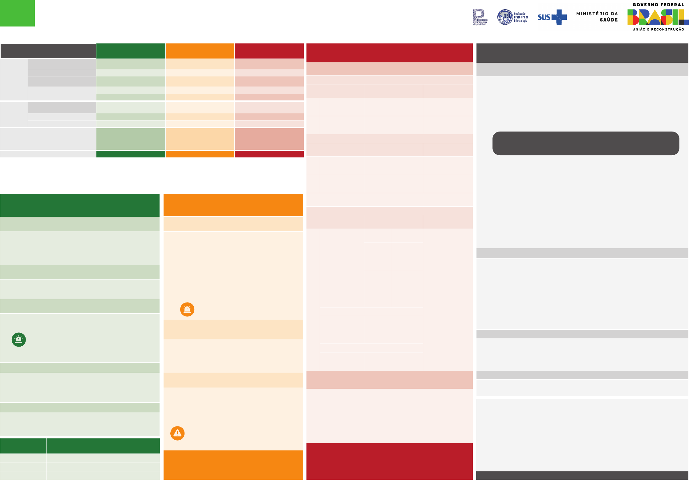 IDENTIFICAR DISENTERIA OU OUTRAS PATOLOGIAS ASSOCIADAS À DIARREIA D.1 VERIFICAR SE O PACIENTE TEM SANGUE NAS FEZES (DISENTERIA) E AVALIAR SEU ESTADO D.1 VERIFICAR SE O PACIENTE TEM SANGUE NAS FEZES (DISENTERIA) E AVALIAR SEU ESTADO GERAL:GERAL: D.1.1 Se apresentar sangue nas fezes e comprometimento do estado geral, conforme o quadro de avaliação do estado de hidratação do paciente e/ou febre alta persistente, dor abdominal, tenesmo ou comprometimento sistêmico: D.1.1.1 Reidratar o paciente conforme os planos A, B ou C defi nido segundo estado de hidratação. D.1.1.2 Iniciar antibioticoterapia: a) CRIANÇAS COM ATÉ 30 kg (até 10 anos): (a partir de 3 meses e sem imunodefi ciência) Azitromicina: 10 mg/kg/dia, via oral, no primeiro dia e 5 mg/kg/dia por mais 4 dias; Ceftriaxona: 50 mg/kg intramuscular 1 vez ao dia, por 3 a 5 dias, como alternativa. b) CRIANÇAS COM MAIS DE 30kg (com mais de 10 anos), ADOLESCENTES e ADULTOS: Ciprofloxacino: 1 comprimido de 500 mg de 12/12h, via oral, por 3 dias; Ceftriaxona: 50 a 100 mg/kg intramuscular 1 vez ao dia, por 3 a 5 dias, como alternativa. Observação: crianças com quadro de desnutrição devem ter o primeiro atendimento em qualquer estabelecimento de saúde, devendo-se iniciar hidratação e antibioticoterapia de forma imediata, até que chegue ao hospital. D.1.1.3 Orientar o paciente ou acompanhante para aumento da ingestão de líquidos e manter a alimentação habitual, caso o tratamento seja realizado no domicílio. D.1.1.4 Reavaliar o paciente após 2 dias. D.1.1.5 Se persistir a presença de sangue nas fezes após 48 horas do início do tratamento: SE CRIANÇA (até 10 anos): Encaminhar para internação hospitalar. SE ADULTO, ADOLESCENTE OU CRIANÇAS COM MAIS DE 10 ANOS: • Condições gerais boas: seguir planos A, B ou C, conforme estado de hidratação – não usar antibioticoterapia. • Condições gerais comprometidas: administrar Ceftriaxona 50 a 100 mg/kg, via intramuscular, 1 vez ao dia, por 3 a 5 dias, ou encaminhar para internação hospitalar. D.2 IDENTIFICAR DIARREIA PERSISTENTE/CRÔNICAD.2 IDENTIFICAR DIARREIA PERSISTENTE/CRÔNICA D.2.1 Se tiver mais de 14 dias de evolução da doença: D.2.1.1 Encaminhar o paciente para a uma unidade hospitalar se: • For menor de 6 meses. • Apresentar sinais de desidratação. Nesse caso, reidrate-o primeiro e, em seguida, encaminhe-o a uma unidade hospitalar. Observação: quando não houver condições de encaminhar para a unidade hospitalar, orientar o responsável/acompanhante para administrar líquidos e manter a alimentação habitual no domicílio enquanto aguarda referência hospitalar. Caso apresente algum sinal de alerta (vide item A 3.2), levar imediatamente a um estabelecimento de saúde para atendimento. D.2.1.2 Pacientes maiores de 6 meses sem sinais de desidratação: encaminhar para consulta médica para investigação e tratamento. D.3 OBSERVAR SE HÁ DESNUTRIÇÃO GRAVED.3 OBSERVAR SE HÁ DESNUTRIÇÃO GRAVE D.3.1 Se o paciente estiver com desnutrição grave: D.3.1.1 E estiver hidratado: encaminhar para o tratamento no estabelecimento de saúde. D.3.1.2 E estiver desidratado: iniciar imediatamente a reidratação e em seguida encaminhar o paciente para o tratamento no estabelecimento de saúde. Entregar ao paciente ou responsável envelopes de SRO em quantidade sufi ciente e recomendar que continue a reidratação até que chegue ao estabelecimento de saúde em que receberá o tratamento. D.4 VERIFICAR A TEMPERATURAD.4 VERIFICAR A TEMPERATURA D.4.1 Se o paciente estiver com a temperatura de 39 ºC ou mais, além do quadro diarreico, investigar e tratar outras possíveis causas, por exemplo, pneumonia, otite, amigdalite, faringite, infecção urinária. MANEJO DO PACIENTE COM DIARREIAMANEJO DO PACIENTE COM DIARREIA AVALIAÇÃO DO ESTADO DE HIDRATAÇÃO DO PACIENTE ETAPAS A (sem desidratação) B (com desidratação) C (com desidratação grave) OBSERVE Estado geral1 Ativo, alerta Irritado, intranquilo Comatoso, hipotônico, letárgico ou inconsciente* Olhos1 Sem alteração Fundos Fundos Sede1 Sem sede Sedento, bebe rápido e avidamente Não é capaz de beber* Lágrimas Presentes Ausentes Ausentes Boca/língua Úmida Seca ou levemente seca Muito seca EXPLORE Sinal da prega abdominal1 Desaparece imediatamente Desaparece lentamente Desaparece muito lentamente (mais de 2 segundos) Pulso Cheio Cheio Fraco ou ausente* Perda de peso2 Sem perda Até 10% Acima de 10% DECIDA SEM SINAIS DE DESIDRATAÇÃO Se apresentar dois ou mais sinais: COM DESIDRATAÇÃO Se apresentar dois ou mais sinais sendo ao menos um destacado com asterisco (*): DESIDRATAÇÃO GRAVE TRATE PLANO A PLANO B PLANO C 1 Variáveis para avaliação do estado de hidratação do paciente que têm maior relação de sensibilidade e especifi cidade, segundo a Organização Mundial da Saúde. 2 A avaliação da perda de peso é necessária quando o paciente está internado e evolui com diarreia e vômito. OBSERVAÇÃO: caso haja dúvida quanto à classifi cação (variáveis de desidratação ou de desidratação grave), deve-se estabelecer o plano OBSERVAÇÃO: caso haja dúvida quanto à classifi cação (variáveis de desidratação ou de desidratação grave), deve-se estabelecer o plano de de tratamento considerado no pior cenário.tratamento considerado no pior cenário. PLANO A PARA PREVENIR A DESIDRATAÇÃO NO DOMICÍLIO A.1 INGERIR/OFERECER MAIS LÍQUIDO QUE O HABITUAL PARA A.1 INGERIR/OFERECER MAIS LÍQUIDO QUE O HABITUAL PARA PREVENIR A DESIDRATAÇÃO:PREVENIR A DESIDRATAÇÃO: A.1.1 O paciente deve tomar líquidos caseiros (água, chá, suco, água de coco, sopas) ou solução de sais de reidratação oral (SRO) após cada evacuação diarreica e episódio de vômito, em pequenas quantidades e maior frequência. A.1.2 Não utilizar refrigerantes e, preferencialmente, não adoçar o chá ou o suco. A.2 MANTER A ALIMENTAÇÃO HABITUAL PARA PREVENIR A A.2 MANTER A ALIMENTAÇÃO HABITUAL PARA PRE