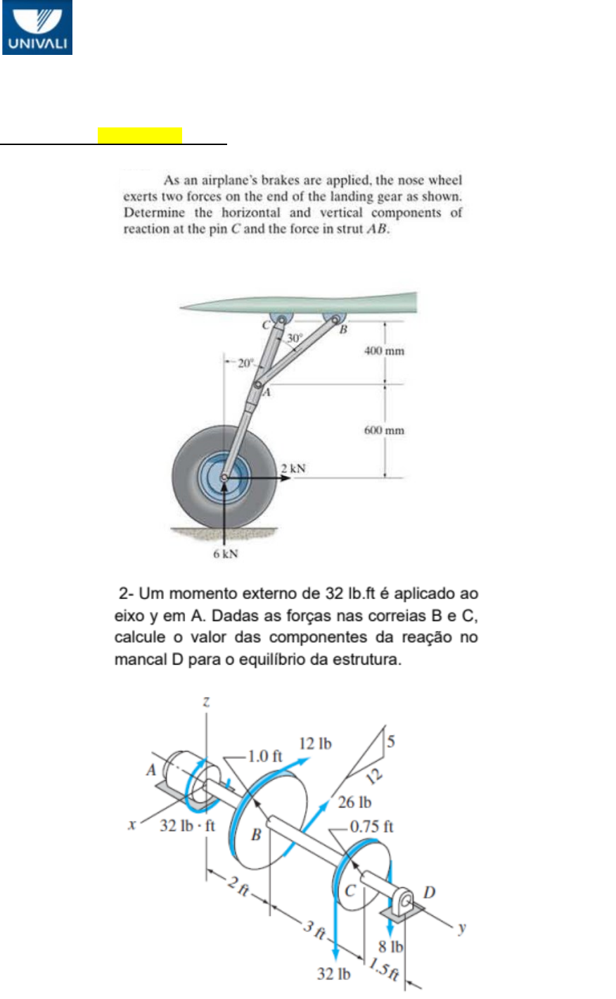 UNIVERSIDADE DO VALE DO ITAJAÍ-UNIVALI ESCOLA POLITÉCNICA. Data de entrega 13/5 Nomes: ____________________________________________ Avaliação em dupla ou trio: (M2) 1- 15/5