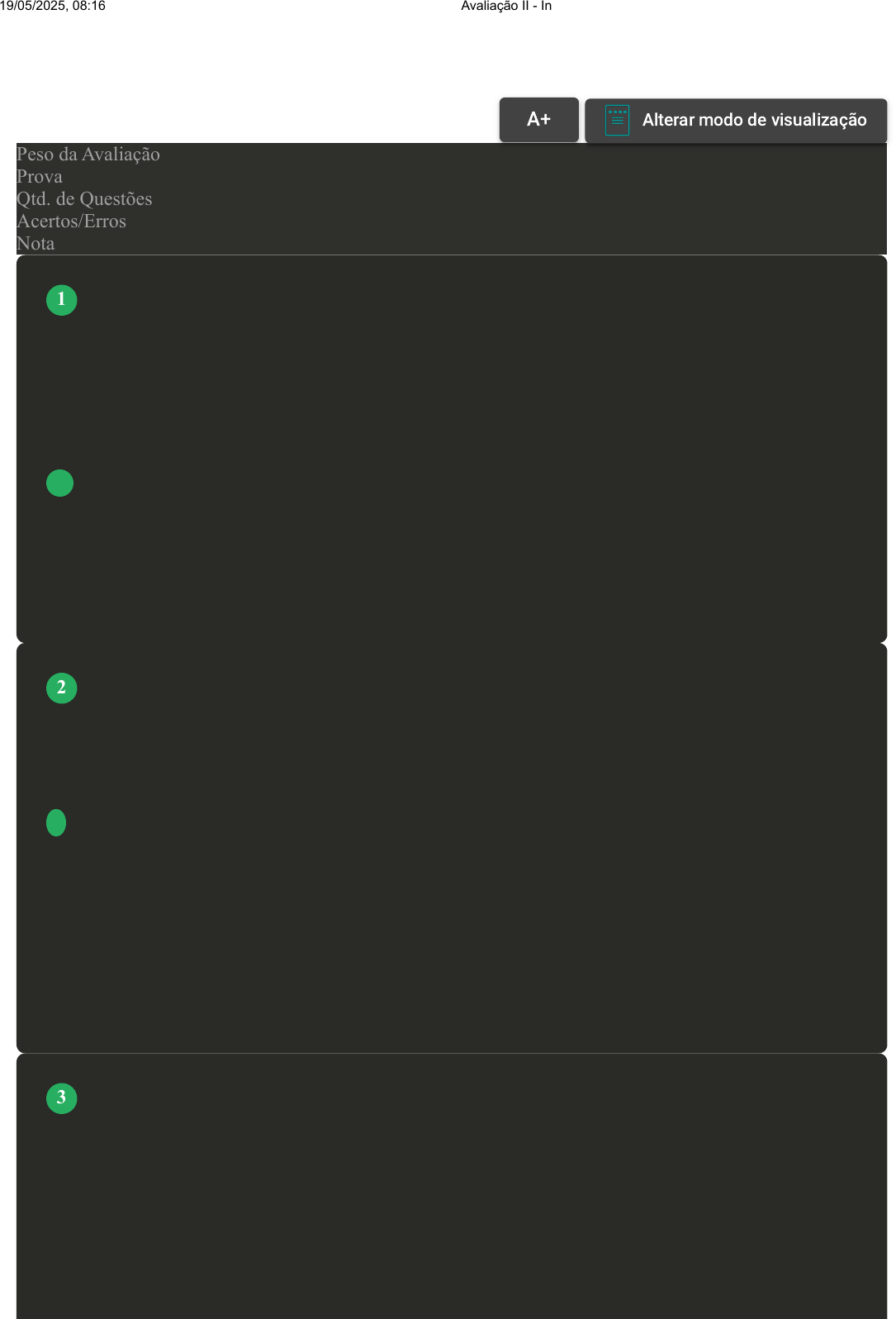 Prova Impressa GABARITO | Avaliação II - Individual (Cod.:738537) Peso da Avaliação 1,50 Prova 45604875 Qtd. de Questões 10 Acertos/Erros 8/2 Nota 8,00 O direito ambiental é o conjunto de normas e princípios que visam à preservação do meio ambiente ecologicamente equilibrado, essencial à qualidade de vida. Mesmo com suas normas ditas recentes, no início do século XX, a conscientização pela preocupação com o meio ambiente é antiga. Nesse sentido, documentos datados há mais de três mil anos foram encontrados. Sobre esses documentos, assinale a alternativa CORRETA: A Livro dos Mortos, Evangelho e Código Florestal. B Código Hamurabi, Livro dos Mortos e hino persa de Zaratustra. C Código Hamurabi, Código de Justiniano e Código Medieval. D Código Justiniano, Livros dos Mortos e Código Medieval. Desde o surgimento das civilizações, a humanidade vivenciou acontecimentos em que causaram mudanças no meio ambiente. Dessa forma, o processo de degradação ambiental e questões de conscientização dos recursos naturais estão cada vez mais em pauta. O conceito de Cidadania Ambiental Global foi promovido pela Comissão da Organização das Nações Unidas (ONU), criada no final da década de 1990. Sobre o objetivo central desse programa, assinale a alternativa CORRETA: A Mobilizar a comunidade para ações voltadas às questões ambientais e compreensão dos direitos humanos e responsabilidade dos cidadãos. B Aumentar o uso de energias limpas e incentivar ações para a proteção de florestas e áreas verdes. C Controlar o efeito dos poluentes e as suas consequências com relação às mudanças do meio ambiente está no centro das preocupações da humanidade. D Estimular o desenvolvimento sustentável, principalmente em instituições públicas e privadas. A condição para a dignidade humana não permite discriminação entre cor, classe social, sexo e crenças. É dever do estado prever condições para uma vida digna. Sobre o exposto, conforme prevê a Constituição Federal Brasileira de 1988, avalie as asserções a seguir e a relação proposta entre elas: I- Todas as pessoas nascem livres e diferentes. São dotadas de razão e consciência e devem agir com relação umas às outras com espírito de igualdade. PORQUE II- Toda pessoa tem direito à vida, à liberdade e à segurança das pessoas. Com capacidade de gozar os VOLTAR A+ Alterar modo de visualização 1 2 3 19/05/2025, 08:16 Avaliação II - Individual about:blank 1/5 direitos e as liberdades estabelecidos sem distinção de qualquer espécie, seja de raça, cor, sexo, língua, religião, opinião política ou de outra natureza, origem nacional ou social, riqueza, nascimento, ou qualquer outra condição. Assinale a alternativa CORRETA: FONTE: BRASIL. Constituição (1988). Constituição da República Federativa do Brasil. Brasília, DF: Senado Federal, 1988. A As asserções I e II são proposições verdadeiras, e a II é uma justificativa correta da I. B A asserção I é uma proposição verdadeira, e a II é uma proposição falsa. C A asserção I é uma proposição falsa, e a II é uma proposição verdadeira. D As asserções I e II são proposições verdadeiras, mas a II não é uma justificativa correta da I. A escola constitui-se como uma das mais importantes organizações sociais, que constrói, por meio das relações que se estabelecem no seu interior, inúmeros princípios concernentes a uma sociedade mais justa e igualitária. Sobre a educação, de acordo com a Declaração Universal dos Direitos Humanos, analise as afirmativas a seguir: I- O Ensino Médio é uma modalidade de ensino da educação escolar brasileira, com duração de 4 anos. II- A educação básica é facultativa e gratuita. III- A instrução técnico-profissional será acessível a todos, bem como a instrução superior, e está baseada no mérito. IV- Os pais têm prioridade de direito na escolha do gênero de instrução que será ministrada a seus filhos. Assinale a alternativa CORRETA: A As afirmativas I e III estão corretas. B As afirmativas I e II estão corretas. C As afirmativas III e IV estão corretas. D As afirmativas II e IV estão corretas. No que diz respeito aos Direitos Humanos, qual importante documento foi editado para coibir os atos do Rei Carlos I que desagradavam o parlamento inglês, ao mesmo tempo que deflagrou uma revolução que terminou na guerra civil contra a coroa, que durou de 1642 até 1688? A Declaração Norte-Americana. B Carta Magna. C Cilindro de Ciro. 4 5 19/05/2025, 08:16 Avaliação II - Individual about:blank 2/5 D Petição de Direitos. Foi aprovada pela ONU a “Declaração Universal dos Direitos Humanos’’, instituindo os direitos humanos como um valor global. Sobre o ano em que foi aprovado tal documento, assinale a alternativa CORRETA: A 1950. B 1948. C 1949. D 1947. A classificação dos Direitos Humanos em gerações obedeceu à ordem cronológica dos acontecimentos históricos, sendo uma convenção que se tem adotado para ressignificar as lutas e as revoluções que precederam a Declaração de 1948, bem como documentos póstumos sobre o escopo atual. Diante do exposto, assinale a alternativa CORRETA: A São apresentados como Direitos Humanos de Segunda Geração aqueles que têm por base a Liberdade, representada pelas aspirações humanas durante a Revolução Industrial, a Revolução Mexicana, a Revolução Russa, a Constituição da República de Weimar e a Declaração Universal dos Direitos do Homem de 1948. B São apresentados como Direitos Humanos de Segunda Geração aqueles que têm por base a Fraternidade, representada pelas aspirações humanas durante a Revolução Industrial, a Revolução Mexicana, a Revolução Russa, a Constituição da República de Weimar e a Declaração Universal dos Direitos do Homem, de 1948. C São apresentados como Direitos Humanos de Primeira Geração aqueles relativos à Liberdade, em consonância com o que propu
