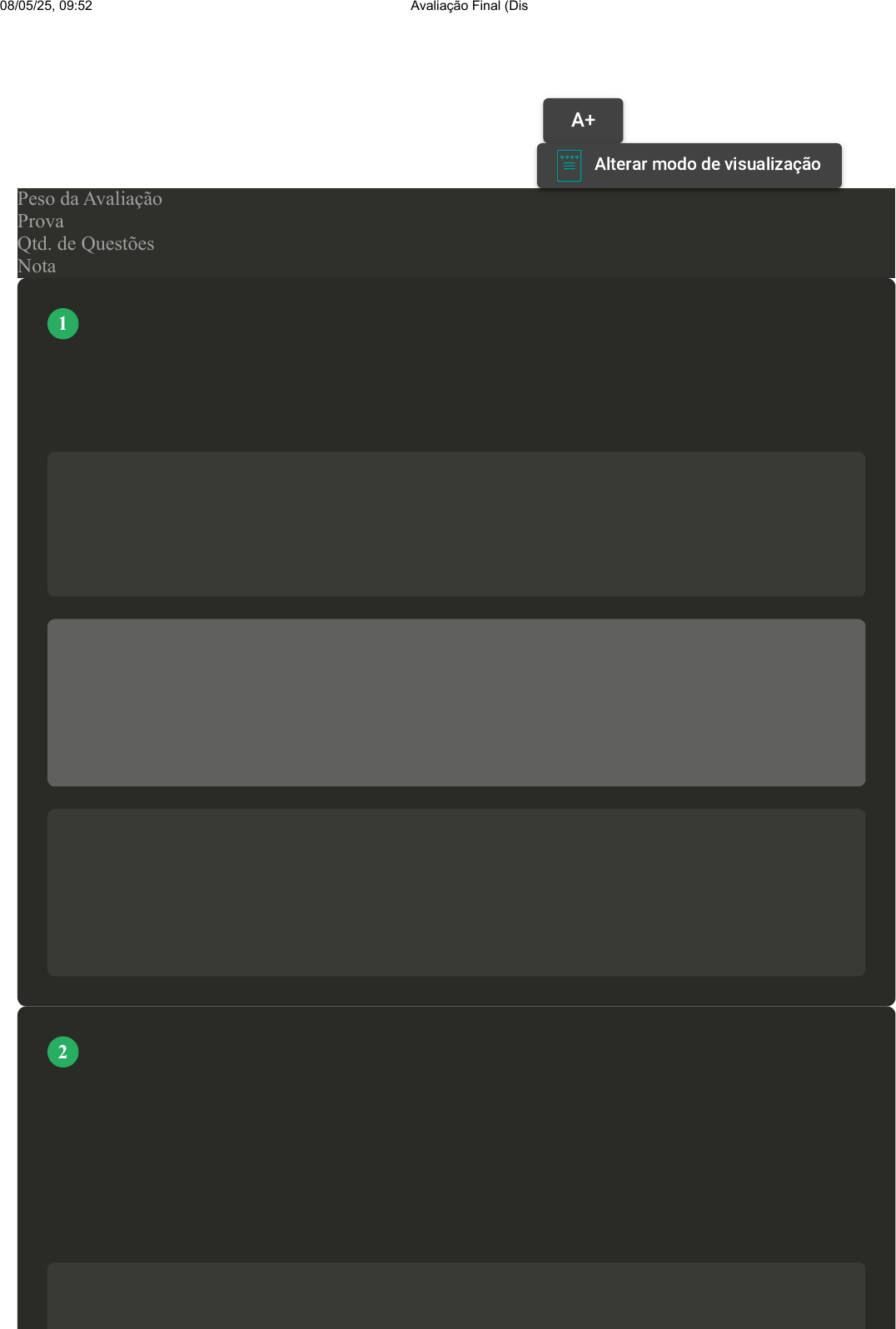 Prova Impressa GABARITO | Avaliação Final (Discursiva) - Individual (Cod.:1020442) Peso da Avaliação 2,00 Prova 98424899 Qtd. de Questões 2 Nota 10,00 Durante os jogos da Copa do Mundo, André torceu pelo Brasil. Em cada gol realizado pelo seu time, gritava e vibrava de emoção. No entanto, quando o time adversário fazia um gol ele ficava enraivecido. Acompanhado da raiva, o sistema cardiovascular também era alterado. a) Qual a alteração cardiovascular mais comum nesse caso? b) Qual o hormônio está relacionado a essa alteração? Onde ele é produzido? Resposta esperada a) O ritmo cardíaco fica acelerado. b) Adrenalina, é produzido pelas glândulas suprarrenais. Minha resposta a) A alteração mais comum nesse caso é o aumento da frequência cardíaca, além disso, pode ocorrer um aumento da pressão arterial. b) O principal hormônio relacionado a essa alteração cardiovascular é a adrenalina, que é produzida pelas glândulas suprarrenais. Retorno da correção Parabéns, acadêmico, sua resposta atingiu os objetivos da questão e você contemplou o esperado, demonstrando a competência da análise e síntese do assunto abordado, apresentando excelentes argumentos próprios, com base nos materiais disponibilizados. [Laboratório Virtual – Sistema digestório] O sistema digestório é responsável pela quebra dos alimentos em partículas menores, que podem ser absorvidas pelas células. Esse processo é conhecido como digestão e torna possível a absorção dos nutrientes. Dentre os órgãos que compõem o sistema digestório, os intestinos desempenham funções muito importantes. Apresente um comparativo da morfologia do intestino delgado e do intestino grosso, associando as funções que eles desempenham no sistema digestório. Resposta esperada VOLTAR A+ Alterar modo de visualização 1 2 08/05/25, 09:52 Avaliação Final (Discursiva) - Individual about:blank 1/2 Intestino delgado – dividido em: duodeno, jejuno e íleo. Ocorre a inserção de sucos químicos para a digestão. A parede do intestino é rica em vilosidades e muito vascularizada, pois é aqui que ocorre a absorção dos nutrientes. Intestino grosso – dividido em: ceco, apêndice vermiforme, colo ascendente, colo transverso, colo descendente, colo sigmoide, reto e ânus. A parede do intestino é desprovida de vilosidades, já que não ocorre a absorção de nutrientes aqui. Dessa forma, sua função é absorver água e formar as fezes. Minha resposta Os intestinos delgado e grosso são porções tubulares do sistema digestório que, apesar de contínuas, apresentam diferenças significativas em sua morfologia e funções. INTESTINO DELGADO: É um tubo longo e sinuoso com cerca de 6 a 7 metros de comprimento e um diâmetro relativamente estreito. Ele é dividido em três partes principais: duodeno, jejuno e íleo. O duodeno e o jejuno são encontrados no quadrante superior esquerdo, enquanto o íleo está no quadrante inferior direito do abdome. A sua parte interna apresenta numerosas pregas circulares chamadas válvulas coniventes. A mucosa do intestino delgado é revestida por inúmeras projeções microscópicas em forma de dedo, chamado vilosidades intestinais. Possui uma rica vascularização e inervação para facilitar a absorção de nutrientes. O intestino delgado tem como principal função absorver os nutrientes dos alimentos e também é responsável pela digestão final dos alimentos e pela absorção de água e eletrólitos e também possui função imunológica e regulação de hormônios. INTESTINO GROSSO: É maior e mais curto que o intestino delgado, medindo cerca de 1,5 metros de comprimentos e com diâmetro maior. É composto por: ceco, cólon ( ascendente, transverso, descendente e sigmoide), reto e ânus. A sua parede interna não possui vilosidades ou pregas circulares tão proeminentes quanto no intestino delgado. A mucosa possui númerosas células caliciformes produtoras de muco, mas não apresenta as enzimas digestivas encontradas no intestino delgado. O intestino grosso tem a função principal de resbsorver água e eletrólitos do conteúdo não digerido formando as fezes e armazenando-as temporariamente antes da eliminação. também contribui para a sintese de vitaminas e possui uma importante função imunológica. Retorno da correção Parabéns, acadêmico, sua resposta atingiu os objetivos da questão e você contemplou o esperado, demonstrando a competência da análise e síntese do assunto abordado, apresentando excelentes argumentos próprios, com base nos materiais disponibilizados. Imprimir 08/05/25, 09:52 Avaliação Final (Discursiva) - Individual about:blank 2/2