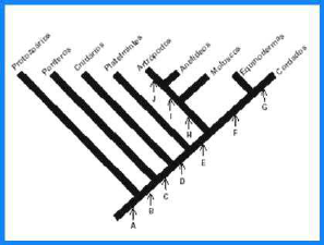 relações evolutivas entre os diferentes grupos de cordados, a partir de um ancestral