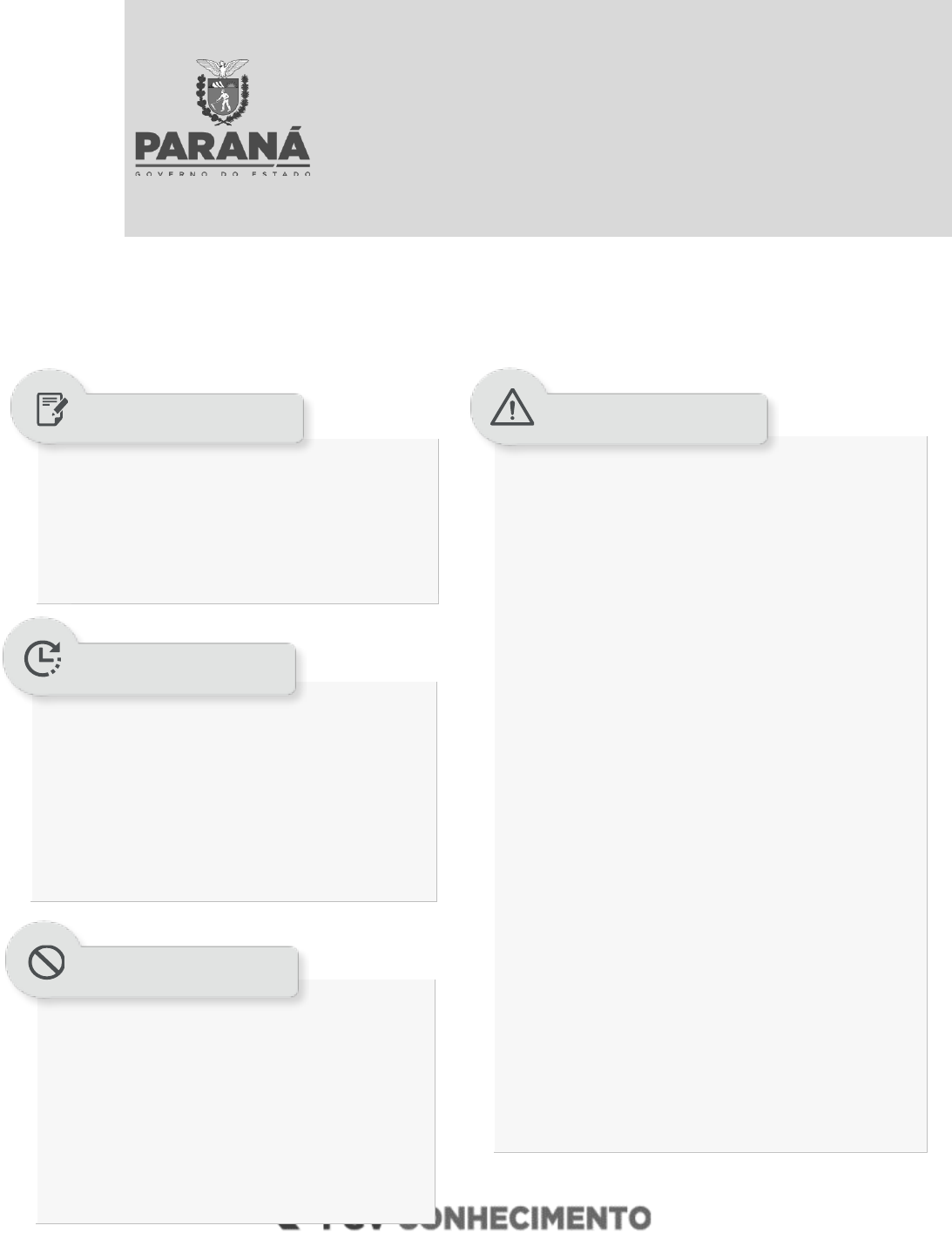 SECRETARIA DA ADMINISTRAÇÃO E DA PREVIDÊNCIA PROVA OBJETIVA – MANHÃ AUDITOR FISCAL NÍVEL SUPERIOR TIPO 3 – AMARELA • Além deste caderno contendo 80 (oitenta) questões objetivas, você receberá do fiscal de prova o cartão de respostas; • As questões objetivas têm 5 (cinco) opções de resposta (A, B, C, D e E) e somente uma delas está correta. • • Verifique se seu caderno de questões está completo, sem repetição de questões ou falhas. Caso contrário, notifique imediatamente o fiscal da sala, para que sejam tomadas as devidas providências; • Confira seus dados pessoais, especialmente nome, número de inscrição e documento de identidade e leia atentamente as instruções para preencher o cartão de respostas; • Para o preenchimento do cartão de respostas, use somente caneta esferográfica, fabricada em material transparente, com tinta preta ou azul; • Assine seu nome apenas no(s) espaço(s) reservado(s) no cartão de respostas; • Confira seu cargo, cor e tipo do caderno de questões. Caso tenha recebido caderno de cargo ou cor ou tipo diferente do impresso em seu cartão de respostas, o fiscal deve ser obrigatoriamente informado para o devido registro na ata da sala; • Reserve tempo suficiente para o preenchimento do seu cartão de respostas. O preenchimento é de sua responsabilidade e não será permitida a troca do cartão de respostas em caso de erro cometido pelo candidato; • Para fins de avaliação, serão levadas em consideração apenas as marcações realizadas no cartão de respostas; • A FGV coletará as impressões digitais dos candidatos na lista de presença; • Os candidatos serão submetidos ao sistema de detecção de metais quando do ingresso e da saída de sanitários durante a realização das provas. • Boa Prova! • Você dispõe de 4 (quatro) horas e 30 (trinta) minutos para a realização da prova, já incluído o tempo para a marcação do cartão de respostas; • 3 (três) horas após o início da prova, é possível retirar-se da sala, sem levar o caderno de questões; • A partir dos 30 (trinta) minutos anteriores ao término da prova é possível retirar-se da sala levando o caderno de questões. • Qualquer tipo de comunicação entre os candidatos durante a aplicação da prova; • Anotar informações relativas às respostas em qualquer outro meio que não seja o caderno de questões; • Levantar da cadeira sem autorização do fiscal de sala; • Usar o sanitário ao término da prova, após deixar a sala. SUA PROVA TEMPO NÃO SERÁ PERMITIDO INFORMAÇÕES GERAIS SECRETARIA DA ADMINISTRAÇÃO E DA PREVIDÊNCIA DO ESTADO DO PARANÁ – SEAP-PR FGV CONHECIMENTO AUDITOR FISCAL – MANHÃ TIPO AMARELA – PÁGINA 3 MÓDULO I - CONHECIMENTOS BÁSICOS Língua Portuguesa 1 Leia a frase a seguir. Ele comprou aquele carro velho, mas é porque cismou com o calhambeque. Sobre a significação ou a estruturação dessa frase, assinale a afirmativa incorreta. (A) O verbo ser (é) está no lugar da oração anterior. (B) Carro velho é repetido pelo termo calhambeque. (C) A palavra calhambeque tem valor afetivo na frase. (D) O pronome demonstrativo aquele carro velho se refere a algo não explicado no texto. (E) O pronome Ele não aparece repetido na frase, mas está implícito na forma verbal cismou. 2 Um crítico escreveu o fragmento de texto a seguir. Hoje em dia a literatura universal em toda a sua infinita variedade está cada vez mais suplantada pelos estereótipos relativamente pouco numerosos e grossos de Hollywood, do rádio e da televisão; e milhões de jovens recebem suas noções de amor e valor, de medo e de ira, de proezas indiscriminadas e indiferentes de ídolos efêmeros, cujas medidas de corpo são amplamente consideradas mais importantes do que sua evidente falta de qualquer talento para descrever emoções. Sobre a estruturação e a significação desse fragmento textual, assinale a afirmativa correta. (A) O texto compara os jovens de épocas passadas e atuais, com vantagem para aqueles. (B) Infere-se do texto que, antes da época atual, a literatura era responsável pela difusão de qualidades entre os jovens. (C) Nos ídolos atuais, segundo o texto, predomina o aspecto intelectual sobre o estético. (D) O texto pretende fundamentalmente criticar os modelos literários atuais como vazios e ignorantes. (E) O texto também dirige críticas ao estado atual da literatura, abandonada pelos jovens em função de sua perda de valores. 3 Leia o fragmento de texto a seguir. Se desejei alguma coisa neste mundo foi ser escritor. Ser escritor como uma forma superior de vida, assim como o monaquismo e o sacerdócio. Ser escritor será, talvez, mais uma posição diante da vida que uma realização exterior, extrínseca ao homem. [....] Literatura é uma forma de conhecimento e uma forma de comunicação. Um testemunho, para que a vida e a morte não sejam em vão. Encaro a literatura como uma vitória sobre o tempo e a morte. (VILLAÇA, Antônio Carlos. In Quando eu chegar ao céu. ) A partir do fragmento, assinale a opção que indica, corretamente, a função da Literatura. (A) Destacar a superioridade dos valores literários sobre os demais tipos de textos. (B) Demonstrar que a escrita tem valor permanente, superando o tempo e o espaço. (C) Indicar valores permanentes, preservando-os contra as mudanças políticas e sociais. (D) Mostrar o valor político-cultural dos textos produzidos, importantes para a cultura nacional. (E) Apontar a arte como o caminho para a preservação dos textos contra a passagem de tempo. 4 Leia o fragmento de texto a seguir. Aprendamos do céu o estilo da disposição, e também o das palavras. Como hão de ser as palavras? Como as estrelas. As estrelas são muito distintas e muito claras... O estilo pode ser muito claro e muito alto: tão claro que o entendam os que não sabem, e tão alto que tenham muito que entender nele os que sabem. (Padre Antônio Vieira) Sobre a estru