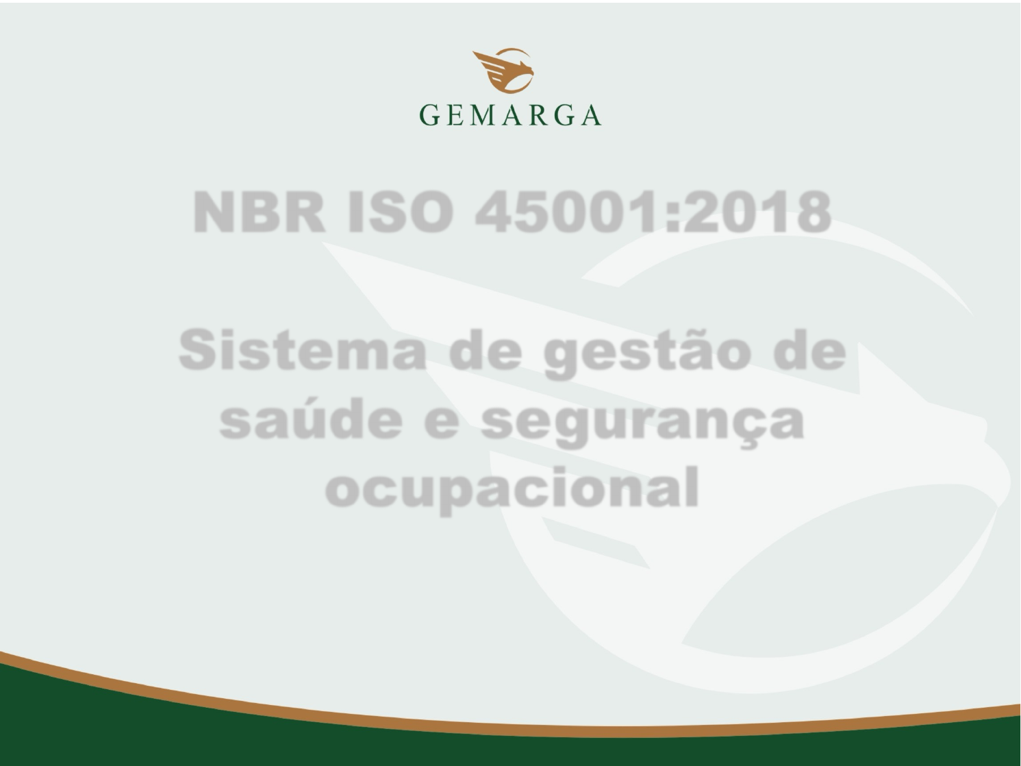 NBR ISO 45001:2018 Sistema de gestão de saúde e segurança ocupacional “Estrutura de alto nível”...... 1.Escopo 2.Referências normativas 3.Termos e definições 4.Contexto da organização 5.Liderança 6.Planejamento 7.Suporte 8.Operação 9.Avaliação de desempenho 10.Melhoria 1. Escopo Este documento especifica os requisitos para um sistema de gestão de saúde e segurança ocupacional (SSO) e fornece orientação para o seu uso, permitindo que as organizações proporcionem locais de trabalho seguros e saudáveis, prevenindo lesões e problemas de saúde relacionados ao trabalho, bem como melhorando proativamente o seu desempenho de SSO. Este documento é aplicável a qualquer organização que deseje estabelecer, implementar e manter um sistema de gestão de SSO para melhorar a segurança e saúde ocupacional, eliminar perigos e minimizar os riscos de SSO (incluindo deficiências do sistema), tirar proveito das oportunidades de SSO e resolver as não conformidades do sistema de gestão de SSO associadas às suas atividades. Este documento ajuda uma organização a alcançar os resultados pretendidos de seu sistema de gestão de SSO. Em consonância com a política de SSO da organização, os resultados pretendidos de um sistema de gestão de SSO incluem: melhoria contínua do desempenho de SSO; cumprimento dos requisitos legais e outros requisitos; atingimento dos objetivos de SSO. 1. Escopo (continuação) Este documento é aplicável a qualquer organização, independentemente do tamanho, tipo e atividades. É aplicável aos riscos de SSO sob o controle da organização, levando em consideração fatores como o contexto em que a organização opera e as necessidades e expectativas de seus trabalhadores e outras partes interessadas. Este documento não indica critérios específicos para o desempenho de SSO, nem é prescritivo sobre a concepção de um sistema de gestão de SSO. Este documento permite que uma organização, por meio do seu sistema de gestão de SSO, integre outros aspectos da saúde e segurança, como o bem-estar dos trabalhadores. Este documento não aborda questões como segurança do produto, danos materiais ou impactos ambientais, além dos riscos para os trabalhadores e outras partes interessadas relevantes. Este documento pode ser usado, no todo ou em parte, para melhorar sistematicamente a gestão da saúde e segurança ocupacional. No entanto, as reivindicações de conformidade com este documento não são aceitáveis, a menos que todos os seus requisitos sejam incorporados no sistema de gestão de SSO de uma organização e sejam cumpridos sem exclusão. 2. Referência normativa Não há referências normativas neste documento 3. Termos e definições Para os efeitos deste documento, aplicam-se os seguintes termos e definições. A ISO e a IEC mantêm as bases de dados terminológicas para uso em normalização nos seguintes endereços: • ISO Online browsing platform: disponivel em https://www.iso.org/obp • IEC Electropedia: disponível em http://www.electropedia.org/ 4 Contexto da organização 4.1 Entendendo a organização e seu contexto A organização deve determinar as questões externas e internas que sejam relevantes para o seu propósito e que afetem sua capacidade de alcançar os resultados pretendidos de seu sistema de gestão de SSO. 4.2 Entendendo as necessidades e expectativas de partes interessadas A organização deve determinar: a) as outras partes interessadas, além dos trabalhadores, que são relevantes para o sistema de gestão de SSO; b) a necessidade e as expectativas relevantes (por exemplo, requisitos) dos trabalhadores e outras partes interessadas; c) quais destas necessidades e expectativas são, ou podem tornar-se, requisitos legais e outros requisitos. 4.3 Determinando o escopo do sistema de gestão de SSO A organização deve determinar os limites e a aplicabilidade do sistema de gestão de SSO para estabelecer seu escopo. Quando determinar este escopo, a organização deve: a) considerar as questões internas e externas referidas em 4.1; b) levar em consideração os requisitos referidos em 4.2; c) levar em consideração as atividades planejadas ou relacionadas ao trabalho. d) O sistema de gestão de SSO deve incluir as atividades, produtos e serviços sobre os quais a organização tem controle ou influência, que podem impactar o desempenho de SSO da organização. e) O escopo deve ser disponibilizado como informação documentada. 4.4 Sistema de gestão de SSO A organização deve estabelecer, implementar, manter e melhorar continuamente um sistema de gestão de SSO, incluindo os processos necessários e suas interações, de acordo com os requisitos deste documento. 5 Liderança e participação dos trabalhadores 5.1 Liderança e comprometimento A Alta Direção deve demonstrar liderança e comprometimento em relação ao sistema de gestão de SSO por: a) assumir a responsabilidade geral e a responsabilização pela prevenção de lesões e problemas de saúde, relacionados ao trabalho, bem como pelo fornecimento de locais de trabalho e atividades seguras e saudáveis; b) assegurar que a política de SSO e os objetivos de SSO relacionados sejam estabelecidos e compatíveis com a direção estratégica da organização; c) assegurar a integração dos requisitos do sistema de gestão de SSO nos processos de negócios da organização; d) assegurar que os recursos necessários para estabelecer, implementar, manter e melhorar o sistema de gestão de SSO estejam disponíveis; Continuação…. e) comunicar a importância de uma gestão eficaz de SSO e da conformidade com os requisitos do sistema de gestão de SSO; f) assegurar que o sistema de gestão de SSO atinja os resultados pretendidos; g) dirigir e apoiar as pessoas para contribuir com a eficácia do sistema de gestão de SSO; h) assegurar e promover a melhoria contínua; i) apoiar outras funções relevantes da gestão, para demonstrar sua liderança, uma