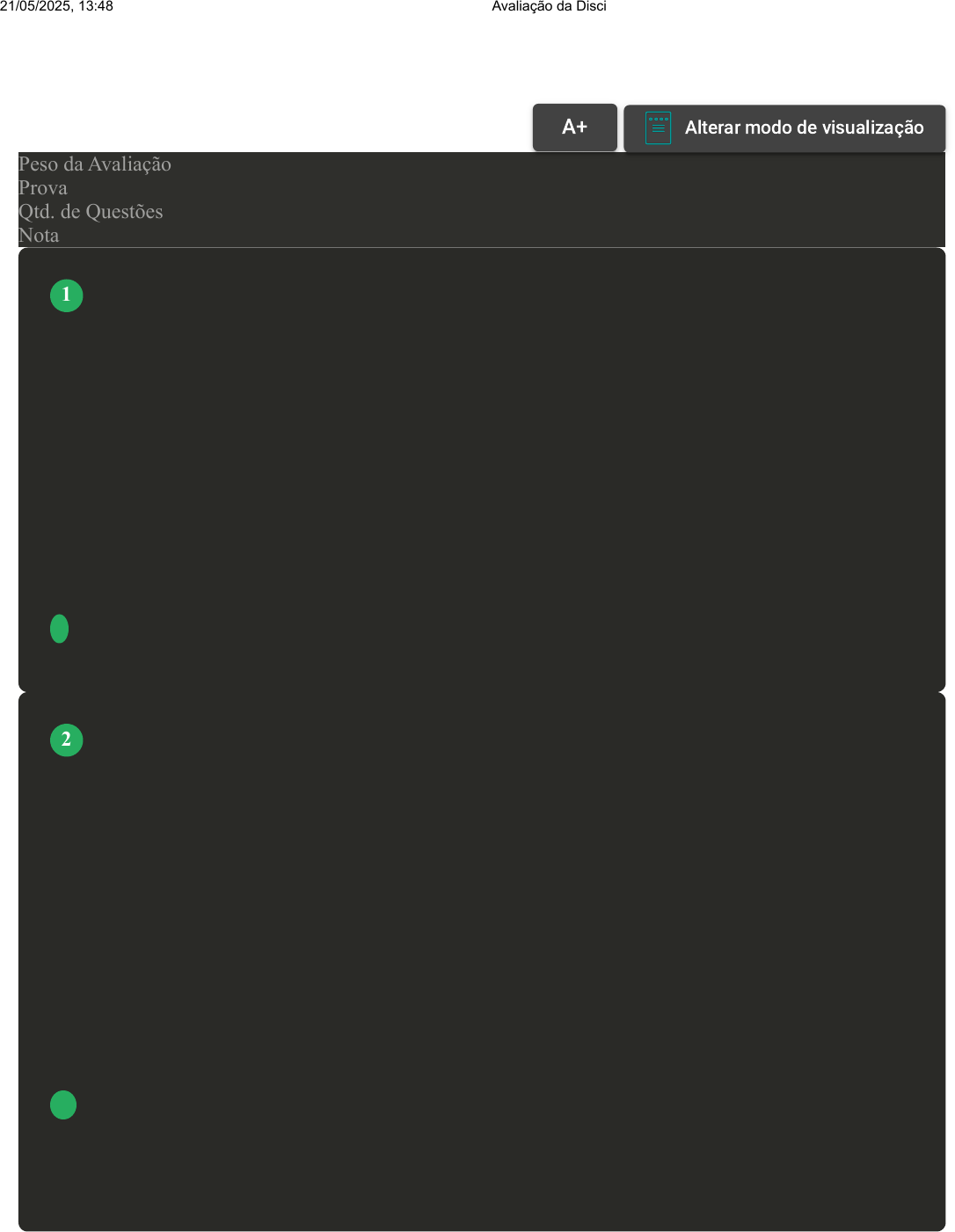 Prova Impressa GABARITO | Avaliação da Disciplina (Cod.:1014586) Peso da Avaliação 10,00 Prova 100935543 Qtd. de Questões 20 Nota 9,00 Os estilos de liderança variam desde a autoritária, caracterizada pela tomada de decisões centralizada, até a democrática, que envolve a participação colaborativa. Cada estilo influencia a dinâmica da equipe e o alcance de metas organizacionais de maneiras distintas. Qual é a característica central da liderança transformacional? Assinale a alternativa CORRETA: A Nesse modelo, os líderes têm o papel de controlar rigidamente as ideias da equipe, incentivando a criatividade e a inovação. B Os líderes transformacionais buscam direcionar sua equipe por meio de uma abordagem conhecida como controle prescritivo, estabelecendo diretrizes rígidas. C Na liderança transformacional, os líderes buscam uma parceria autoritária com os colaboradores, limitando a liberdade de sugestões e debates. D A liderança transformacional é definida pela parceria respeitosa entre líderes e lideranças, incentivando a liberdade de oferecer sugestões e debater ideias. No contexto profissional, atingir alta performance refere-se aos profissionais que executam suas funções de forma rápida, eficaz e com excelência, alcançando e até mesmo superando as metas estabelecidas. Essa habilidade é considerada uma das competências interpessoais mais valorizadas pelos gestores e recrutadores na contemporaneidade. GOLEMAN, Daniel. Liderança: a inteligência emocional na formação do líder de sucesso. 3. ed. Rio de Janeiro: Objetiva, 2015. Acredita-se que a combinação de alguns itens faz com que se possa gerir uma equipe de alta performance, assinale a alternativa CORRETA: A Feedback construtivo, comunicação clara, ausência de ferramentas internas, transparência, atividades realizadas em casa. B Feedback reativo, comunicação clara, ferramentas internas, transparência, atividades trabalhadas com pressão de tempo. C Feedback construtivo, comunicação clara, ferramentas internas, transparência, atividades de Team Building. D Feedback construtivo, comunicação truncada, ferramentas internas, transparência, atividades de Team Building. VOLTAR A+ Alterar modo de visualização 1 2 21/05/2025, 13:48 Avaliação da Disciplina about:blank 1/8 Os grupos de trabalho prático apresentam uma variedade de características fundamentais que potencializam sua capacidade de atingir metas e realizar tarefas de forma colaborativa e produtiva. Primordialmente, a comunicação desempenha um papel crucial no sucesso de qualquer grupo. Membros que se comunicam de maneira aberta, compartilhando informações e ideias de forma clara, estabelecem um ambiente propício para a tomada de decisões informadas e eficientes. Qual é uma característica vital para o sucesso de grupos eficazes, conforme descrito no texto? Assinale a alternativa CORRETA: A Subestimar a importância da confiança e respeito mútuos, pois não afetam as interações saudáveis dentro do grupo. B Valorizar a resolução construtiva de conflitos, reconhecendo que transformar desafios em oportunidades promove o crescimento e a inovação no grupo. C Desconsiderar a definição clara de objetivos, pois metas compartilhadas não influenciam a dinâmica do grupo. D Ignorar a distribuição de papéis e responsabilidades, pois a ambiguidade é benéfica para promover a criatividade. Há uma variedade de teorias de liderança, algumas mais proeminentes do que outras. Ter uma compreensão das teorias de liderança mais comuns é crucial, pois elas exercem uma influência direta sobre diversas organizações, sendo especialmente relevante para aqueles que ocupam posições de liderança. De acordo com o texto, a compreensão dos impactos psicológicos e sociais associados a uma liderança eficaz auxilia em quê? ( ) Na definição do tipo de líder que se deseja ser. ( ) No processo do tipo que os liderados precisam ser. ( ) No processo de escolha da missão da empresa. ( ) Na definição da logomarca da empresa. Marque V para as afirmativas verdadeiras e F para as falsas e assinale a resposta CORRETA: A V, V, F, F. B V, F, V, V. C V, F, F, F. D V, F, F, V. As disciplinas em grupos de trabalho dentro de organizações consistem em ações deliberadas e estratégias aplicadas para melhorar a eficácia, a colaboração e o desempenho dos grupos empresariais. É fundamental realizar avaliações regulares da eficácia dessas intervenções e ajustar as conformidades necessárias, garantindo assim um ambiente de trabalho saudável e produtivo. Qual das seguintes abordagens é comumente utilizada para melhorar a eficiência e a adaptação às necessidades da organização por meio de mudanças estruturais ou culturais? Assinale a alternativa CORRETA: 3 4 5 21/05/2025, 13:48 Avaliação da Disciplina about:blank 2/8 A Coaching de Equipe. B Treinamento e Desenvolvimento. C Intervenções em Conflitos. D Mudança Organizacional. Semelhante a outras teorias de liderança, a abordagem participativa também não está isenta de críticas. Alguns argumentam que esse estilo pode criar a percepção de que os líderes são fracos ou dispensáveis, porém cada ambiente, cada segmento e cada equipe requer um tipo de liderança. Qual é a característica central da liderança participativa, também conhecida como “liderança democrática”? Assinale a alternativa CORRETA: A Nessa abordagem, os funcionários não têm influência direta nas decisões organizacionais. B A liderança participativa é caracterizada por uma falta de engajamento e motivação dos funcionários em relação às decisões da empresa. C Todos os membros da equipe estão envolvidos nas decisões, enquanto o líder facilita a discussão. D O líder desempenha um papel dominante na tomada de decisões, minimizando a participação dos funcionários. Os objetivos concentraram-se inicialmente no desenvolvimento da sensibilidade intrapessoal, seguido pelo