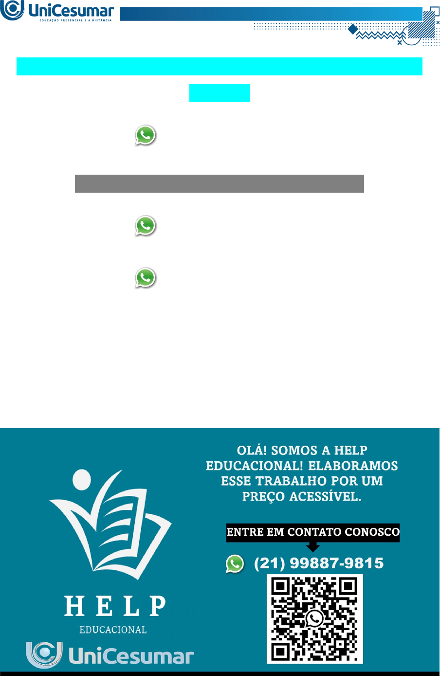 MAPA – EPROD - FÍSICA GERAL E EXPERIMENTAL II - 52_2025 (21) 99887-9815 ASSESSORIA NOS SEUS TRABALHOS (21) 99887-9815 (21) 99887-9815 MAPA – Material de Avaliação Prática da Aprendizagem Instruções para realização e entrega da atividade Todos os campos apresentados deverão ser devidamente preenchidos. É obrigatória a utilização deste formulário para a realização do MAPA (template). Esta é uma atividade individual, visto que trabalhos copiados da internet ou de outros estudantes serão zerados. O trabalho pode ter quantas páginas você precisar para respondê-lo, desde que siga a sua estrutura. Preferencialmente, utilizar a seguinte formatação: fonte Arial 12, espaçamento entre linhas 1,5 linhas e texto justificado. Ao utilizar quaisquer materiais de pesquisa apresente as referências no final do trabalho em ordem alfabética e conforme as normas da ABNT NBR 6023:2018. Você pode utilizar este site para orientação: https://usp.br/sddarquivos/aulasmetodologia/abnt6023.pdf. Após inteiramente respondido, coloque um nome simples no seu arquivo para não haver confusão no momento do envio. Se o nome tiver caracteres estranhos, principalmente pontos ou for muito grande, é possível que a equipe de correção não consiga abrir o seu trabalho e ele seja zerado. Você entregará apenas UM ARQUIVO com suas respostas, o trabalho deve ser enviado para correção pelo seu Studeo em formato de arquivo doc/docx ou PDF, na forma de anexo no campo de resposta da atividade MAPA. Caso você utilize OPEN OFFICE ou MAC, transforme o arquivo em PDF para evitar incompatibilidade. Ao final do enunciado desta atividade, aqui, no Studeo, há uma caixa de envio de arquivo. Basta clicar e selecionar sua atividade ou arrastar o arquivo até ela. Antes de clicar em FINALIZAR, certifique-se de que está tudo certo, pois uma vez finalizado você não poderá mais modificar o arquivo. Sugerimos que você faça o download para conferir se está de acordo com o arquivo entregue. Em caso de dúvidas, entre em contato com seu professor mediador. Desejamos a você um excelente trabalho. Os receptores são consumidores de energia elétrica e, de acordo com sua finalidade, podem ser agrupados em duas categorias: os resistivos e os ativos. Receptores resistivos transformam energia elétrica exclusivamente em térmica, como chuveiros e lâmpadas incandescentes. Já os receptores ativos convertem energia elétrica em outras formas, como som e movimento, sem se limitar ao calor. Exemplos incluem TVs, telefones e motores elétricos. Os resistivos são chamados de resistores, enquanto os ativos são simplesmente receptores. Fonte: GUIMARÃES, J. O. de S. Física Geral e Experimental II. Maringá: UniCesumar, 2019. Imagine que você, como futuro profissional, está atuando na manutenção elétrica em uma indústria. Um setor da fábrica está enfrentando problemas com a iluminação de emergência: algumas lâmpadas estão falhando, e seu supervisor pediu para você diagnosticar o problema. Ao analisar o sistema, você percebe que algumas lâmpadas estão ligadas em série e outras em paralelo. Seu desafio é entender como essa configuração influencia a corrente elétrica e a resistência total do circuito para propor a melhor solução. Para isso, você precisará medir a corrente e a tensão em diferentes pontos, comparar os resultados e determinar como a disposição dos resistores (ou lâmpadas) afeta o funcionamento do sistema. Será que mudar a configuração ajudará a evitar futuras falhas? Agora, no experimento que realizaremos, você terá a chance de simular esse problema real, conectando resistores em série e em paralelo, medindo grandezas elétricas e tirando conclusões que podem ser aplicadas diretamente na sua futura profissão. Vamos ao desafio? Nos Experimentos Virtuais da Algetec, você tem disponível o experimento de “Associação em Série de Resistores”. Leia com atenção todas as etapas de apresentação, sumário, roteiro e pré-teste. Em seguida, faça o experimento seguindo o roteiro e preenchendo as tabelas a seguir. Responda também as questões sobre os experimentos. 1) Com o experimento e montagem de Resistores em Série: a) Preencha a tabela a seguir com os dados obtidos de Tensão: b) Preencha a tabela a seguir com os dados obtidos de Tensão após a remoção da lâmpada do borne 6: c) Com base em suas observações, comente a veracidade da seguinte afirmação: “em uma associação em série, a soma das tensões elétricas sobre cada componente (lâmpada) é igual à tensão elétrica total atuante no circuito” d) Caso um circuito possuísse 20 lâmpadas em série e uma das lâmpadas “queimasse”, o que aconteceria com as demais lâmpadas do circuito? Justifique a sua resposta. e) Qual a corrente equivalente que percorre este circuito? Compare este valor com o obtido no experimento. 2) Com o experimento e montagem de Resistores em Paralelo: a) Preencha a tabela a seguir com os dados obtidos de Tensão: b) Com base em suas observações, comente a veracidade da seguinte afirmação: “em uma associação em paralelo, a retirada de um dos componentes do circuito (lâmpadas) não interrompe o funcionamento dos demais componentes” 3) Com o experimento e montagem de Associação Mista de Resistores: a) Preencha a tabela a seguir com os dados obtidos de Tensão: b) Qual foi a tensão medida entre os terminais 2A e 5B? Utilizando seus conhecimentos sobre circuitos elétricos e associação de resistores, explique como a tensão fornecida pela fonte é dividida entre as lâmpadas do circuito montado. OLÁ! SOMOS A HELP EDUCACIONAL! ELABORAMOS ESSE TRABALHO POR UM PREÇO ACESSÍVEL. ENTRE EM CONTATO CONOSCO (21) 99887-9815 image4.png image5.png image6.png image1.png image2.png image3.png image7.png