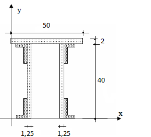 1) A utilização dos conceitos de momento estático se dá no cálculo da posição do baricentro de figuras planas. Seja: G - baricentro da superfície com coordenadas à determinar (xG; yG). Por analogia, a determinação das coordenadas do baricentro correspondem as equações para determinar o centro de massa ou centro de gravidade de figuras planas. Observe a figura a seguir: Determine e localize o baricentro das superfícies hachuradas da figura, que tem as medidas indicadas em cm: Alternativas: a) XG = 15; YG = 37. b) XG = 25; YG = 37. c) XG = 35; YG = 27. d) XG = 25; YG = 27. e) XG = 27; YG = 25. 2) O raio de giração de uma superfície plana em relação a um eixo de referência constitui-se em uma distância particular entre a superfície e o eixo, na qual o produto entre a referida distância elevada ao quadrado e a área total da superfície, determina o momento de inércia da superfície em relação ao eixo. Para determinar o raio de giração da superfície, quando conhecido o seu momento de inércia, utilize-se a sua definição, que é expressa através da raiz quadrada da relação entre o momento de inércia e a área total da superfície. Considere a figura a seguir: Determinar o raio de giração relativo aos eixos x e y do perfil representado. Alternativas: · a) · b) · c) · d) · e) 3) A figura a seguir mostra uma viga bi-apoiada com carregamento distribuído em uma das extremidades e dois carregamentos pontuais. Sendo assim, a alternativa que representa a máxima força cortante () é: Alternativas: · a) 92 kN. · b) 98 kN. · c) 80 kN. · d) 88 kN. · e) 90 kN. 4) Vigas e eixos são elementos estruturais e mecânicos importantes na engenharia e sujeitos a esforços de flexão. Sendo assim, analise as afirmações sobre os diversos tipos de flexão: I - Na flexão assimétrica, é possível utilizar a equação da tensão normal de flexão utilizada para flexão simétrica. II - Na flexão pura, o momento fletor é o único esforço interno presente na seção transversal. III - Na flexão simples o esforço normal não é nulo. IV - Na flexão oblíqua, o plano de flexão contém todos os eixos de inércia. Estão corretas as seguintes afirmações: Alternativas: · a) I, II, III e IV. · b) I, II e III apenas. · c) I e II apenas. · d) III e IV apenas. · e) III apenas. 5) Considere uma viga sujeita a flexão quando as cargas externas tenham seu plano de atuação oblíquo ao plano neutro e o momento produzido por essas cargas externas não coincidir com a linha neutra. Sendo assim, é possível afirmar que a viga está sujeita a flexão: Alternativas: · a) composta. · b) pura. · c) simples. · d) normal. · e) assimétrica. image6.png image7.png image8.png image9.png image10.png image11.jpeg image12.png image1.png image2.png image3.png image4.png image5.png
