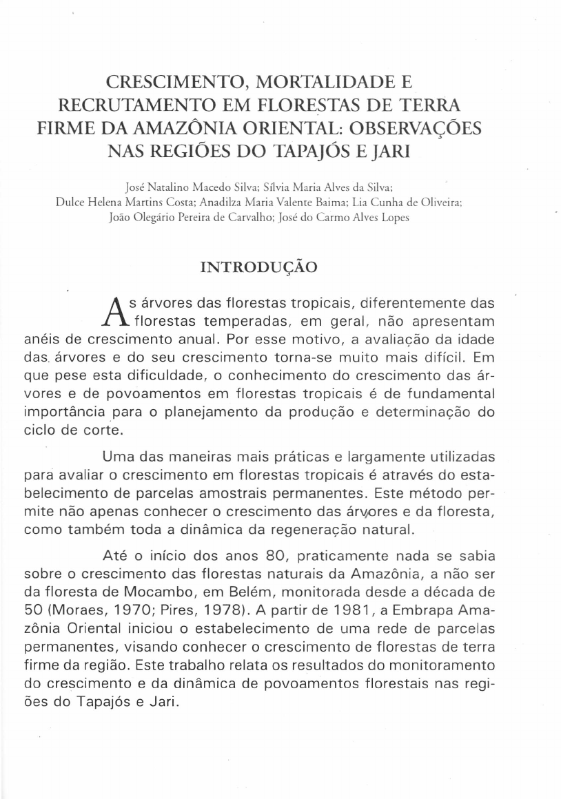 do crescimento e da dinâmica de povoamentos florestais nas regi-