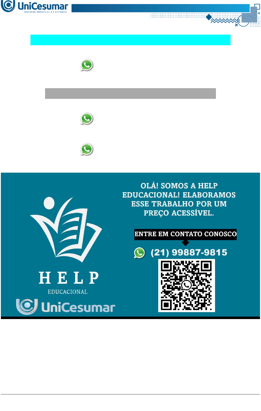 MAPA – NUT - NUTRIÇÃO HUMANA - 52_2025 (21) 99887-9815 ASSESSORIA NOS SEUS TRABALHOS (21) 99887-9815 (21) 99887-9815 Carlos, 67 anos, aposentado, passou recentemente por uma queda doméstica e sofreu uma fratura no fêmur. Durante a anamnese nutricional, relata não ter o hábito de tomar sol, con- some poucos laticínios e afirma que costuma tomar café com leite em todas as refeições. Também apresenta episódios frequentes de cãibras musculares e queixas de cansaço. Já teve cálculo renal no passado. O nutricionista observa que Carlos possui um histórico de ali- mentação pobre em verduras verde-escuras e leguminosas, e consome poucos alimentos in natura. Com base no caso apresentado e no conteúdo teórico estudado, responda às questões a seguir: A) Quais micronutrientes do texto podem estar associados ao quadro de Carlos e por quê? Relacione com os sintomas relatados e a fratura. B) Explique o papel da vitamina D na regulação dos níveis de cálcio e a importância da ex- posição solar na saúde óssea. C) Sabendo que Carlos consome café com leite frequentemente, por que essa associação pode ser prejudicial para a absorção de certos minerais? Cite e explique ao menos uma in- teração negativa entre nutrientes abordada no texto. D) Elabore uma sugestão de preparação culinária prática e saudável que possa ser indicada ao Carlos para contribuir com a saúde óssea e o estado nutricional de magnésio e cálcio. Sua resposta deve conter: Nome da receita: Ingredientes e modo de preparo. ORIENTAÇÕES PARA ELABORAR E ENVIAR A ATIVIDADE MAPA: Sobre o arquivo a ser enviado: > Utilize o formulário padrão para realização do MAPA disponível em > Material da Disci- plina. > O arquivo deve ser enviado exclusivamente pelo seu Studeo no campo "MAPA" desta dis- ciplina. Toda e qualquer outra forma de entrega deste Modelo de Resposta MAPA não é considerada. Apenas formato PDF e DOC-x são aceitos. > Somente UM arquivo pode ser anexado no Studeo. > A qualidade do trabalho será considerada na hora da avaliação, então faça com cuidado, responda à demanda adequadamente e mostre sempre o seu raciocínio de modo claro e direto. Problemas frequentes a evitar: > Identifique o arquivo com o seu primeiro e último nome e a disciplina, para evitar que você troque o arquivo na hora de anexar. Exemplo: MAPA_*nome da disciplina.pdf. Se o nome tiver caracteres estranhos (principalmente pontos) ou for muito grande, a equipe de corre- ção pode não conseguir abrir o seu trabalho e ele pode ser zerado. > Verifique se você está enviando o arquivo corretamente. Arquivo trocado, faltando infor- mações, não serão concedidas reaberturas de atividade dentro e após o prazo da mesma. > Se você usa OPEN OFFICE ou MAC transforme o arquivo em PDF para evitar incompati- bilidades. Como enviar o seu arquivo: > Ao final do enunciado desta atividade, no Studeo, tem uma caixa de envio de arquivo. Basta clicar e selecionar sua atividade ou arrastar até ela. > Antes de clicar em FINALIZAR, certifique-se de que está tudo certo, pois uma vez finali- zado você não poderá mais modificar o arquivo. Sugerimos que você clique no link gerado da sua atividade e faça o download para conferir. Bons estudos. OLÁ! SOMOS A HELP EDUCACIONAL! ELABORAMOS ESSE TRABALHO POR UM PREÇO ACESSÍVEL. ENTRE EM CONTATO CONOSCO (21) 99887-9815