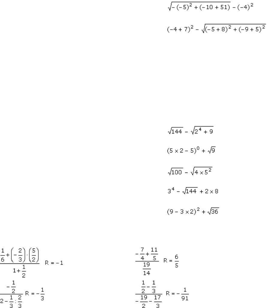 9) (+ 5 - 4) x [- 12 + (- 5 + 15):(+ 1 - 3)] R = - 17