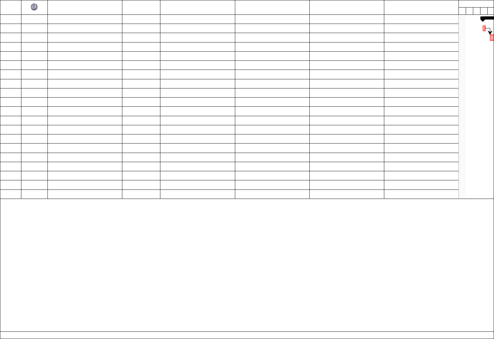 D 6 out 24 S T Q Q S S D 13 out 24 S T Q Q S S D 20 out 24 S T Q Q S S D 27 out 24 S T Q Q S S D 3 nov 24 S T Q Q S S D 10 nov 24 S T Q Q S S D 17 nov 24 S T Q Q S S D 24 nov 24 S T Q Q S S D 1 dez 24 S T Q Q S S D 8 dez 24 S T Q Q S S D 15 dez 24 S T Q Q S S D 22 dez 24 S T Q Q S S D 29 dez 24 S T Q Q S S D 5 jan 25 S T Q Q S S D 12 jan 25 S T Q Q S S D 19 jan 25 S T Q Q S S D 26 jan 25 S T Q Q S S D 2 fev 25 S T Q Q S S D 9 fev 25 S T Q Q S S D 16 fev 25 1 Levantamento de Req... 21 dias 09/10/24 08:00 06/11/24 17:00 2 Abertura (Kickoff) do Pr... 1 dia 09/10/24 08:00 09/10/24 17:00 3 Levantamento de Requis... 9 dias 10/10/24 08:00 22/10/24 17:00 2 4 Especificar Requisitos 5 dias 23/10/24 08:00 29/10/24 17:00 3 5 Aprovação dos Requisitos 3 dias 30/10/24 08:00 01/11/24 17:00 4 6 Testar Requisitos 3 dias 04/11/24 08:00 06/11/24 17:00 5 7 Marco 1: Fim da Fase 1 0 dias 06/11/24 17:00 06/11/24 17:00 6 8 Desenvolvimento 21 dias 07/11/24 08:00 05/12/24 17:00 9 Desenvolvimento (Backe... 9 dias 07/11/24 08:00 19/11/24 17:00 6 10 Desenvolvimento (Front... 9 dias 07/11/24 08:00 19/11/24 17:00 6 11 Integração 5 dias 20/11/24 08:00 26/11/24 17:00 10 12 Testar Desenvolvimento 3 dias 27/11/24 08:00 29/11/24 17:00 11 13 Ajustes de Desenvolvim... 4 dias 02/12/24 08:00 05/12/24 17:00 12 14 Marco 2: Fim da Fase 2 0 dias 05/12/24 17:00 05/12/24 17:00 13 15 Implantação 18 dias 06/12/24 08:00 31/12/24 17:00 16 Implantação Inicial 7 dias 06/12/24 08:00 16/12/24 17:00 13 17 Testes e Ajustes 5 dias 17/12/24 08:00 23/12/24 17:00 16 18 Treinamento de Usuários 5 dias 24/12/24 08:00 30/12/24 17:00 17 19 Documentação 1 dia 31/12/24 08:00 31/12/24 17:00 18 20 Aceite Final 1 dia 31/12/24 08:00 31/12/24 17:00 18 Nome Duração Início Fim Antecessores Nomes dos Recursos 06/11 05/12 CronogramaExemplo- Página1 D 6 out 24 S T Q Q S S D 13 out 24 S T Q Q S S D 20 out 24 S T Q Q S S D 27 out 24 S T Q Q S S D 3 nov 24 S T Q Q S S D 10 nov 24 S T Q Q S S D 17 nov 24 S T Q Q S S D 24 nov 24 S T Q Q S S D 1 dez 24 S T Q Q S S D 8 dez 24 S T Q Q S S D 15 dez 24 S T Q Q S S D 22 dez 24 S T Q Q S S D 29 dez 24 S T Q Q S S D 5 jan 25 S T Q Q S S D 12 jan 25 S T Q Q S S D 19 jan 25 S T Q Q S S D 26 jan 25 S T Q Q S S D 2 fev 25 S T Q Q S S D 9 fev 25 S T Q Q S S D 16 fev 25 06/11 05/12 CronogramaExemplo- Página2 D 6 out 24 S T Q Q S S D 13 out 24 S T Q Q S S D 20 out 24 S T Q Q S S D 27 out 24 S T Q Q S S D 3 nov 24 S T Q Q S S D 10 nov 24 S T Q Q S S D 17 nov 24 S T Q Q S S D 24 nov 24 S T Q Q S S D 1 dez 24 S T Q Q S S D 8 dez 24 S T Q Q S S D 15 dez 24 S T Q Q S S D 22 dez 24 S T Q Q S S D 29 dez 24 S T Q Q S S D 5 jan 25 S T Q Q S S D 12 jan 25 S T Q Q S S D 19 jan 25 S T Q Q S S D 26 jan 25 S T Q Q S S D 2 fev 25 S T Q Q S S D 9 fev 25 S T Q Q S S D 16 fev 25 06/11 05/12 CronogramaExemplo- Página3