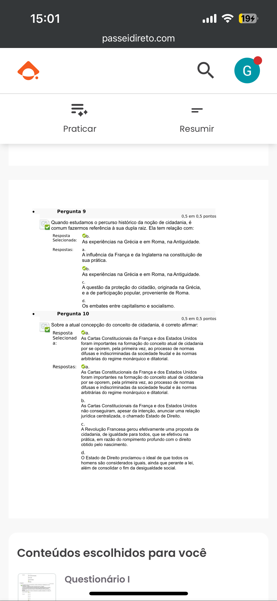 Quando estudamos o percurso histórico da noção de cidadania, é comum fazermos referência à sua dupla raiz. Ela tem relação com: a . A influência da França e da Inglaterra na constituição de sua prática. b. As experiências na Grécia e em Roma, na Antiguidade. c. A questão da proteção do cidadão, originada na Grécia, e a de participação popular, proveniente de Roma. d. Os embates entre capitalismo e socialismo.