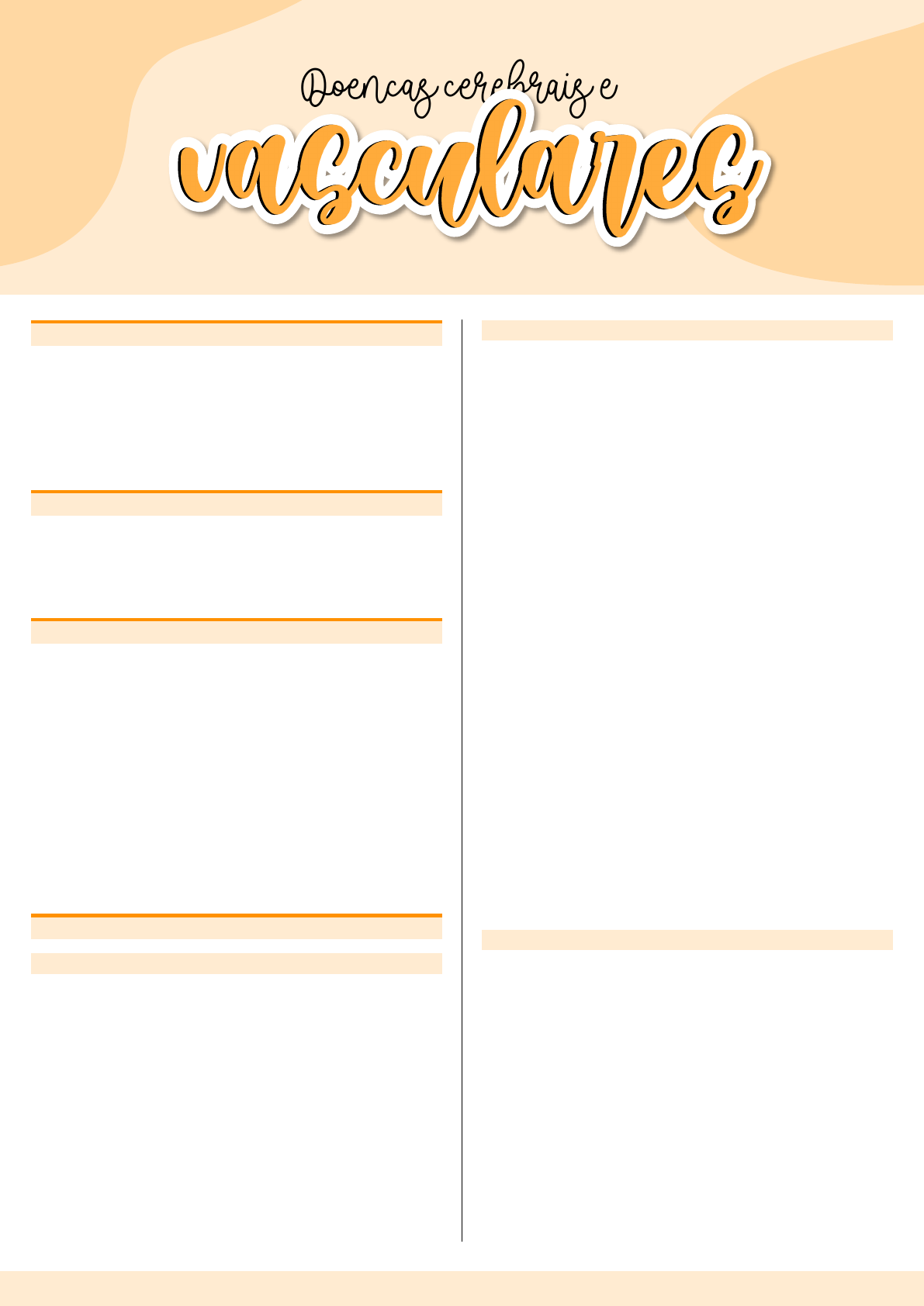 @LSTUDYMED 1 Letícia Cavalcante - UFDPar Aula 9 | Doenças cerebrovasculares Doencas cerebrais e INTRODUÇÃO • A doença cerebrovascular não é uma doença única e sim envolve várias doenças que resultam na oclusão vascular das artérias ou que predispõem às hemorragias cerebrais • É um déficit neurológico súbito causado tanto por isque- mia (80%) quanto por hemorragia (20%) CLASSIFICAÇÃO • AVC Isquêmico (83%): ateroembolico (maioria – peque- nos e grandes vasos), embólico • AVC hemorrágico (17%): intraparenquimatosa (maioria), subaracnóidea EPIDEMIOLOGIA • É a doença neurológica de maior prevalência • Tem alto custo individual e social (7-8% permanecem in- válidos) • 31 causa de morte em países desenvolvidos e a 1ª de in- capacidade em todo o mundo • No Brasil, é a principal causa de morte em pessoas com mais de 40 anos • A cada 5 segundos, 1 pessoa sofre AVC no mundo; e a cada 2 minutos, 1 pessoa é acometida no Brasil • Das pessoas acometidas, cerca de 20-30% sofrem perda gradual da cognição e atingem a demência em 1 ano • 85% são isquêmicos e 15% são hemorrágicos AVC ISQUÊMICO CONCEITO/CLASSIFICAÇÃO • Acidente vascular cerebral isquêmico é a interrupção do suprimento de sangue em uma área do cérebro • Divide-se em: • Trombótico: são prenunciados, em 50 a 60% dos pacien- tes, por sintomas transitórios, por AlT ou por AVC minimo que leva a um episódio mais devastador • Embólico: costumam ocorrer de forma repentina, po- dendo também apresentar-se com sintomas flutuantes e incertos ACIDENTE ISQUÊMICO TRANSITÓRIO (AIT) • É um déficit neurológico focal, de etiologia isquêmica, com regressão completa em 1 hora, apenas 14% regride em 24 horas • São frequentemente múltiplos AIT de baixo fluxo em grande vaso • Geralmente breve (minutos a algumas horas), estereoti- pado e redicivante • Associado à lesão aterosclerótica da artéria carótida In- terna • Outros locais: tronco da artéria cerebral média ou junção das artérias vertebral e basilar AIT embólico • É mais prolongado (horas), bem definido, único e sinto- mas neurológicos focais • Os êmbolos são originados de artérias extracranianas ou do coração AIT lacunar ou de vasos perfurantes • Causado por HAS ou ateromatose de vasos perfurantes oriundos do tronco das artérias cerebral média, Observação: o horário mais comum para ter AVC é de ma- nhã FISIOPATOLOGIA • Diminuição do fluxo sanguineo cerebral • Diminuição da oferta de oxigénio e glicose • Diminuição do pH intracelular • Alteração da bomba Na+/Ca2+ (aumento Ca2+ Intrace- lular) • Radicais livres, quebra de barreira, resposta inflamatória → edema cerebral • Área de penumbra • A relação entre tempo de isquemia/déficit permanente é de 6hs → por isso tem deve-se agir antes das 6h de is- quemia @LSTUDYMED 2 Letícia Cavalcante - UFDPar Aula 9 | Doenças cerebrovasculares Observação: estruturas que aparecem brancas na TC ce- rebral → osso, sangue, calcificação (fisiológicas ou patoló- gicas), metal (bala de arma de fogo, aparelho de metal), cisticercose Figura. AVC isquêmico: paciente hemiplégico do lado esquerdo FATORES DE RISCO Modificáveis • HAS • Diabetes • Tabagismo • Dislipidemia • Obesidade • Sedentarismo • Aterosclerose de artéria carótida • Anticoncepcionais orais • Aritmias Não modificáveis • Idade • Sexo • Raça o História familiar • Fatores genéticos específicos LOCALIZAÇÃO DA LESÃO E QUADRO CLÍNICO Localização da lesão Quadro clínico Artéria cerebral anterior Irriga a porção medial do lobo fron- tal e estruturas profundas Fraqueza do membro inferior contralateral Artéria cerebral média Irriga a porção lateral dos hemisfé- rios Hemiparesia, hemi-hipoestesia e hemianopsia homônima contra- laterais, desvio conjugado do olhar, afasia e outros sintomas corticais Artéria cerebral posterior Irriga a porção mesial do lobo tem- poral, lobo occipital e porções do tálamo Perda visual contralateral, hemi- paresia contralateral e altera- ções comportamentais Artéria vertebral Origina as artérias medular anterior e cerebelar póstero-inferior (esta ir- riga a porção inferior do cerebelo e bulbo lateral) Artéria basilar Origina as aa. cerebelares antero- inferior e superior (irrigam parte da ponte e cerebelo) Síndromes alternas entre sensibi- lidade da face e sinais motores no corpo, diplopia, paralisia fa- cial, vertigem, náusea, perda au- ditiva, ataxia, alteração da mar- cha, disfagia e disartria • Atenção: sintomas bulbares (significa que atingiu os ner- vos cranianos) → Tontura, voz anasalada DIAGNÓSTICO (1) Anamnese • Fatores de risco • História prévia de AIT • Curso temporal do déficit • Sintomas acompanhantes (2) Exame físico geral e neurológico (3) Exames de Imagem • TC de crânio (exame de escolha) • RM cerebral • Angiografia • Ultra sonografia carotídea (4) Exame liquórico (5) Exames laboratoriais • Hemograma, TP, TTP • Perfil lipídico • Nivel de homocisteina • Anticorpo anticardiolipina • Anticoagulante lúpico • Anticorpos antinucleares • Fator V de Leiden • Proteínas CeS • Anti-trombina III • HIV • Lactato (nas doenças mitocondriais) DIAGNÓSTICO DIFERENCIAL • AVCH • Trauma crânio cervical • Meningite/encefalite • Encefalopatia hipertensiva • Processo expansivo (tumor, abscesso) • Crises convulsivas com paralisia persistente (paralisia de Todd) • Migrânea com sinais neurológicos persistentes • Anormalidades metabólicas - Hiperglicemia/coma hiperosmolar - Hipoglicemia - Encefalopatia anóxica pós-parada cardiaca - Abuso de drogas - Doença desmielinizante: esclerose multipla e encefalomi- elite difusa aguda TRATAMENTO NA FASE AGUDA Tratamento de suporte • Vias aéreas e respiração (Glasgow 130 mmHg c/ou PAS > 200mmHg e/ou PAD > 120mmHg • Emergências hipertensivas: 