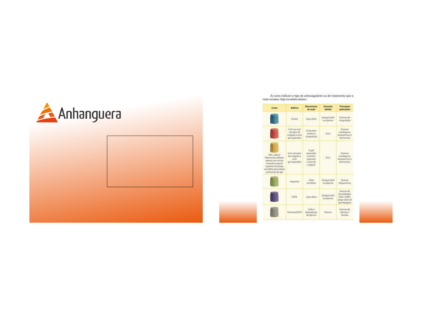22/01/2024 1 Análises Laboratoriais Bioquímicas e Hematológicas Professora: M.a. Débora C. Correia debora.correia@kroton.com.br Curso de Farmácia 1 2 22/01/2024 2 HEMATOPOIESE 3 4 22/01/2024 3 ▪ Quando coletamos o sangue, não é possível diferenciar as células existentes ▪ Se o sangue for deixado sedimentando (parado) em uma estante, ou centrifugado, os glóbulos vermelhos ‘descem’, sedimentam por serem mais pesados ▪ O plasma, mais ‘leve’, contém a porção protéica, liquida do sangue ▪ Entre essas duas porções, observamos os glóbulos brancos 5 6 22/01/2024 4 O soro é obtido após a coleta, coagulação da amostra e posterior centrifugação, sendo que nenhum anticoagulante é utilizado. O objetivo é que haja a formação de coágulo, e nesse processo os fatores da coagulação, plaquetas e fibrinogênio são consumidos. Então, de forma simplificada, o soro é o plasma sem fibrinogênio e fatores da coagulação. Para a obtenção do soro, atualmente são utilizados tubos que contêm ativador de coágulo jateado na parede do tubo, que acelera o processo de coagulação, e gel separador para obtenção de soro com a mais alta qualidade, proporcionando melhor eficiência no processo de trabalho dentro do laboratório. Para obter o plasma da amostra é necessário a adição de um anticoagulante no tubo de coleta. Existem vários tipos de anticoagulantes, como por exemplo o EDTA, o citrato de sódio, a heparina etc. Por exemplo, testes da coagulação precisam ser realizados no plasma, ou seja, após a centrifugação da amostra, o sobrenadante precisa conter todas as proteínas e fatores da coagulação. Para isso, utiliza-se o citrato de sódio, que bloqueia a cascata da coagulação, não deixando que esses componentes sejam utilizados, inibindo a formação do coágulo. A técnica mais rápida e adequada para observação de células sanguíneas em uma amostra é a denominada esfregaço sanguíneo, que consiste em estender uma gota de sangue da amostra em uma lâmina e, após secagem, aplicar a técnica de coloração escolhida. 7 8 22/01/2024 5 Esfregaço sanguíneo ▪ A mesma amostra de sangue pode ser observada em microscópio https://kasvi.com.br/esfregaco-de-sangue-hematologia/ Lâmina Gota de sangue Lâmina extensora a 45º Colocar a gota de sangue em contato com a lâmina A lâmina extensora deve fazer um movimento para trás tocando a gota com o dorso em um ângulo 45°. O sangue da gota irá se espalhar pela borda da lâmina extensora por capilaridade A lâmina deve então deslizar suave e uniformemente sobre a outra, em direção oposta a extremidade em que está a gota de sangue. O sangue será “puxado” pela lâmina. - Depois de completamente estendido, o sangue forma uma película sobre a lâmina de vidro. - Deve-se deixar que o esfregaço seque sem nenhuma interferência. - Seguir para o passo de coloração 9 10 https://kasvi.com.br/esfregaco-de-sangue-hematologia/ 22/01/2024 6 O ESFREGAÇO E SUA AVALIAÇÃO O esfregaço bem feito é composto por três porções: fina, média e espessa. Na Porção Fina a disposição de eritrócitos e leucócitos é defeituosa, com células deformadas artefatualmente. Na Porção Média se concentram as células com distribuição homogênea, perfeitas para análises. Na Porção Espessa as células se congestionam, dificultando .. 11 12 22/01/2024 7 Disposição do esfregaço: a porção FINA Disposição do esfregaço: a porção MÉDIA 13 14 22/01/2024 8 Disposição do esfregaço: a porção ESPESSA A técnica pode variar, mas o resultado esperado é praticamente o mesmo para todos Leishman, Wright, Giemsa, Panótico ?????????? 15 16 22/01/2024 9 Células sanguíneas ▪ Esfregaço sanguíneo, num aumento de 20x Hemácias: forma discoide,e centro claro e periferia escura (densa e avermelhada). Morfologia e tamanho uniformes e homogêneos Glóbulos brancos: maiores que os glóbulos vermelhos, com citoplasma característico e núcleo central. Heterogêneos em morfologia e função Plaquetas: ‘manchas’ bem pequenas, com morfologia distinta ELEMENTOS FIGURADOS DO SANGUE http://wi.mit.edu/news/archive/2008/human-blood- stem-cells-are-multiplied-20-fold-culture 17 18 http://wi.mit.edu/news/archive/2008/human-blood-stem-cells-are-multiplied-20-fold-culture http://wi.mit.edu/news/archive/2008/human-blood-stem-cells-are-multiplied-20-fold-culture 22/01/2024 10 1. PLAQUETAS OU TROMBÓCITOS AS PLAQUETAS POSSUEM IMPORTANTES FUNÇÕES, E A FUNÇÃO HEMOSTÁTICA (INTERRUPÇÃO DE FLUXO SANGUÍNEO POR UM VASO) É A MAIS CONHECIDA. ISSO QUER DIZER QUE UMA PLAQUETA AUXILIA NA REPARAÇÃO DE LESÕES VASCULARES IMPEDINDO A OCORRÊNCIA DE HEMORRAGIAS. https://www.ufrgs.br/lacvet/site/wp-content/uploads/2016/07/metabol_plaquetasRoberta.pdf 19 20 https://www.ufrgs.br/lacvet/site/wp-content/uploads/2016/07/metabol_plaquetasRoberta.pdf 22/01/2024 11 1. PLAQUETAS: ajudam a conter sangramento, prendendo-se à parede de vasos sanguíneos danificados São fragmentos de citoplasma de células denominadas megacariócitos, que permanecem na nossa medula óssea. Por serem fragmentos de citoplasma sem a presença de um núcleo, as plaquetas não são consideradas células. Possuem forma arredondada ou oval, de tamanho pequeno, com diâmetro de 2 a 4 μm e, usualmente, são observadas separadas umas das outras em lâminas de esfregaço. Além disso, possuem grânulos finos cor púrpura. Têm papel importante na função hemostática. ▪ Aumento do número de plaquetas no sangue humano ▪ Trombocitose ▪ Diminuição no número de plaquetas no sangue humano ▪ Trombocitopenia 21 22 22/01/2024 12 2. HEMÁCIAS, GLÓBULOS VERMELHOS OU ERITRÓCITOS 2. Características dos glóbulos vermelhos: eritrócitos ou hemácias • Células mais abundantes no sangue • Conta para aproximadamente 40 a 45 por cento do sangue. • Disco bicôncavo que é redondo e plano, como uma tigela rasa. • Diâmetro do disco de aproximadamente 6,2-8