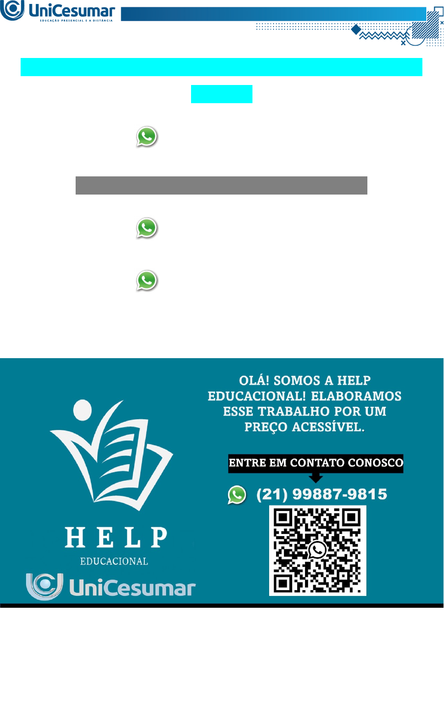 ATIVIDADE 1 – BIOESTATÍSTICA E EPIDEMIOLOGIA - 52_2025 (21) 99887-9815 ASSESSORIA NOS SEUS TRABALHOS (21) 99887-9815 (21) 99887-9815 A Catapora é uma infecção causada pelo vírus varicela-zoster, altamente contagiosa, mas geralmente sem gravidade. É comum em crianças menores de 10 anos e confere imunidade vitalícia após o contágio. O vírus pode reativar-se na forma de herpes zoster. Transmite-se pelo contato com saliva, secreções respiratórias ou líquido das vesículas. O período de incubação é de cerca de 15 dias, e a recuperação leva de sete a 10 dias. Fonte: SOCIEDADE BRASILEIRA DE DERMATOLOGIA. Disponível em: https://www.sbd.org.br/doencas/catapora/ . Acesso: 12 de mar 2025. (com adaptações) Considere que você trabalhe em um hospital e tenha sido encarregado de analisar os prontuários de uma população de crianças com idade entre 0 e 10 anos que foram acometidas com catapora. Considere ainda, que a tabela que segue, apresenta a distribuição de frequência referente à idade dessas crianças. Na tabela, cada classe de valores inclui o limite inferior e exclui o limite superior, exceto pela última classe, que abrange ambos os limites. A) Algumas informações estão ausentes e precisam ser determinadas com base nas relações existentes entre os elementos da distribuição de frequência. Com isso, COMPLETE os dados que estão faltando. Tabela – Distribuição de frequência das idades de crianças com catapora atendidas em um hospital. * Fonte: elaborado pelo professor, 2025. *dados fictícios Com base nessas informações e após completar a tabela, responda aos itens abaixo: B) CLASSIFIQUE a variável idade em qualitativa ou quantitativa, discreta ou contínua. C) RESPONDA: Qual o total de crianças que foram acometidas com catapora? D) CITE o percentual de crianças que apresentaram idade inferior a 4 anos. Orientações para desenvolver sua Atividade de Etudo 1 (AE1): 1. Leia o livro da disciplina. 2. Assista às aulas conceituais. 3. Assista ao video de orientações para a realização da atividade. Link de acesso: https://youtu.be/E6ISK-NKZ9g (copiar e colar no navegador de internet). 4. Baixe o "Modelo de entrega da AE1", disponível no ambiente Studeo, na pasta “Material da Disciplina”, e preencha corretamente todos os campos solicitados. 5. Anexe seu modelo de entrega da AE1 respondido no espaço especifico da Atividade de Estudo 1. 6. Lembre-se de clicar em “Finalizar” para efetivar sua participação. 7. Evite plagio de informações, lembre-se que evidências de cópias de materiais, incluindo de outros academicos, sem devidas referencias, serão inquestionavelmente zeradas. As citações e referencias, mesmo que do livro da disciplina, devem ser realizadas conforme normas da Instituição de Ensino *Essa atividade faz parte da composição de notas da disciplina. Sua realização é muito importante. Bom trabalho! OLÁ! SOMOS A HELP EDUCACIONAL! ELABORAMOS ESSE TRABALHO POR UM PREÇO ACESSÍVEL. ENTRE EM CONTATO CONOSCO (21) 99887-9815 image1.png image2.png image3.png image4.png