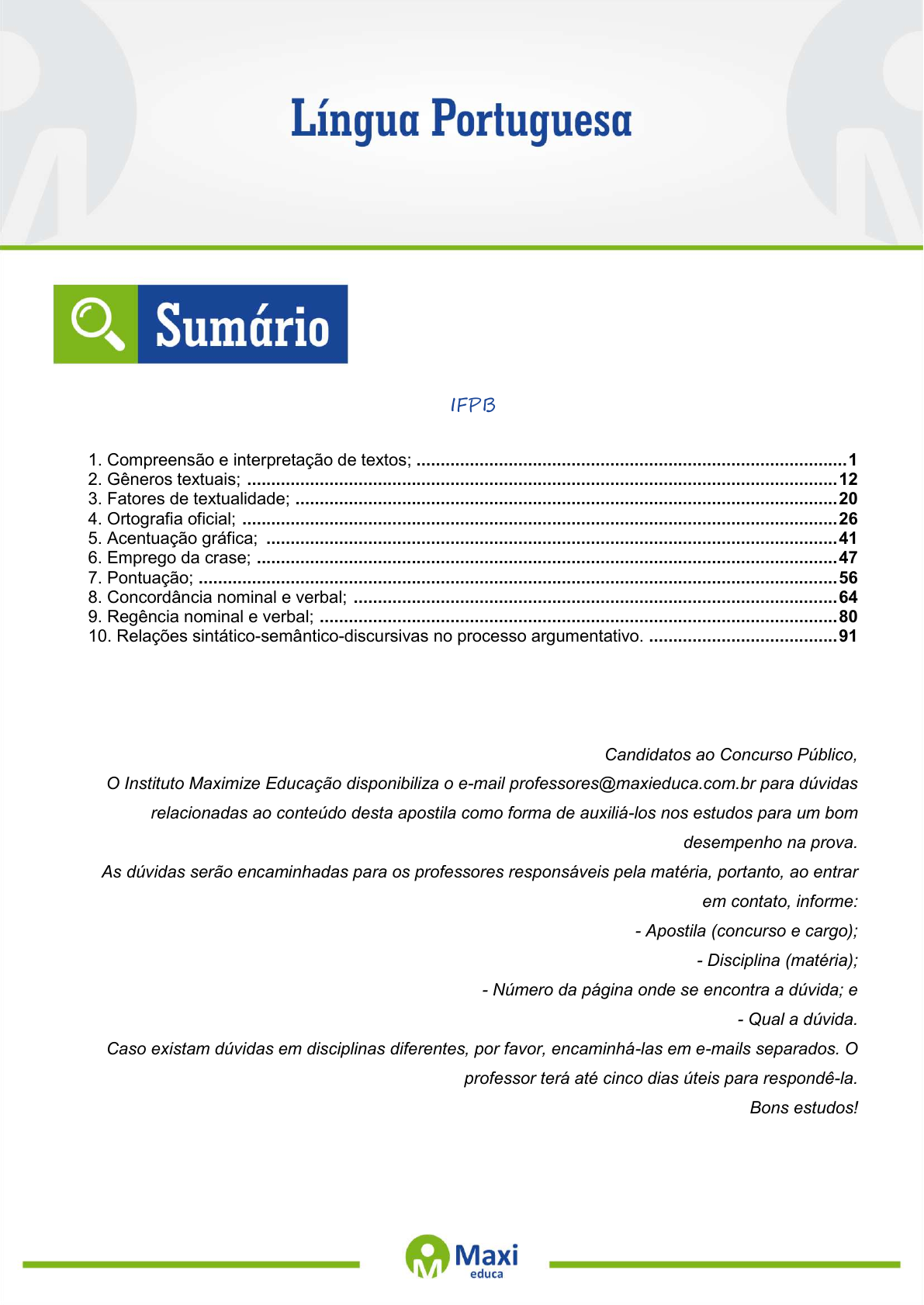 O Instituto Maximize Educação disponibiliza o e-mail professores@maxieduca.com.br para dúvidas