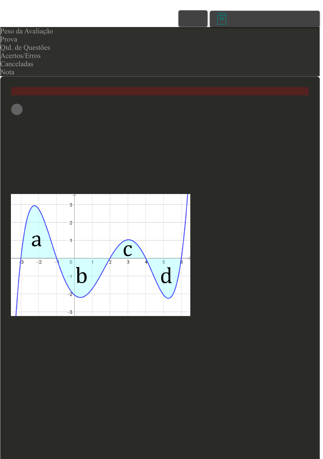 Prova Impressa GABARITO | Avaliação I - Individual (Cod.:1018303) Peso da Avaliação 2,00 Prova 99108439 Qtd. de Questões 10 Acertos/Erros 9/0 Canceladas 1 Nota 10,00 Atenção: Esta questão foi cancelada, porém a pontuação foi considerada. Em situações em que uma função possui partes de sua representação gráfica acima e abaixo do eixo das abscissas, surge um conceito crucial denominado "saldo de área". Este conceito implica que ao calcular a integral de tal função em um intervalo de integração, o resultado não apenas representa a área total sob o gráfico, mas também considera a diferença entre as áreas acima e abaixo do eixo das abscissas. Desta forma, analise a representação gráfica de uma função f e sendo a, b, c e d, as áreas positivas desta função nos respectivos intervalos (-3, -1), (-1, 2), (2, 4) e (4, 6): Considerando as informações apresentadas, avalie as asserções a seguir e a relação proposta entre elas. I. A integral definida de -3 até 6 desta função, apresentará como resultado, a soma de a + b + c + d. PORQUE II. Ao calcular a área da curva no intervalo de -3 até 6, devemos separar o cálculo em quatro partes, respeitando as partes acima e abaixo do eixo das abscissas. A respeito dessas asserções, assinale a opção correta: VOLTAR A+ Alterar modo de visualização 1 02/06/2025, 17:21 Avaliação I - Individual about:blank 1/8 A As asserções I e II são verdadeiras, e a II é uma justificativa correta da I. B As asserções I e II são verdadeiras, mas a II não é uma justificativa correta da I. C A asserção I é uma proposição falsa e a II é uma proposição verdadeira. D As asserções I e II são falsas. E A asserção I é uma proposição verdadeira e a II é uma proposição falsa. No estudo do cálculo integral, os métodos ou técnicas de integração são procedimentos analíticos empregados para encontrar antiderivadas de funções. Entre as técnicas mais reconhecidas estão a integração por substituição, por partes e por frações parciais. Especificamente, a técnica de integração por substituição envolve a aplicação da mudança de variáveis u = g(x), facilitando a obtenção de uma integral imediata para resolver o problema. Por exemplo, considere a integral Dessa forma, a partir dessa integral, identifique a alternativa correta que propõe a melhor substituição a ser utilizada: A u = dx. B u = 2x4. C u = x3. D u = e2x E u = e2x^4. 2 02/06/2025, 17:21 Avaliação I - Individual about:blank 2/8 No estudo do cálculo integral, destaca-se o método de integração por partes, derivado do princípio da derivação do produto de funções. Este método, em suma, envolve a transformação da integração de uma função complexa em duas ou mais integrais mais simples, tornando mais acessível o processo de resolução. Sendo a integral analise as opções que apresentam argumentos válidos, sobre a resolução dessa integral pelo método de integração por partes: I. Devemos assumir inicialmente u = x². II. Necessitaremos utilizar por três vezes o método para resolver a integral. III. Na segunda vez que aplicamos o método, devemos utilizar o dv = e2x dx. IV. A integral de e2x, deve ser resolvido pelo método da substituição. É correto o que se afirma em: A II e IV, apenas. B I e II, apenas. C I, III e IV, apenas. D I e IV, apenas. E II e III, apenas. O cálculo integral desempenha um papel fundamental em uma ampla gama de disciplinas, desde a física e a engenharia até a economia e as ciências naturais. Sua versatilidade e poder analítico permitem modelar e resolver problemas complexos que envolvem taxas de variação e acumulação contínua. Ele abrange dois aspectos principais: as integrais definidas e as indefinidas. Sobre o exposto, analise as sentenças a seguir: I. Uma integral definida tem limites de integração, enquanto uma integral indefinida não os tem. II. A integral indefinida, tem como princípio, encontrar uma função cuja derivada seja igual à função original. III. Um indicador que podemos usar para definir se a integral é definida ou indefinida, é o diferencial de integração, presente no final da integral. IV. As integrais indefinidas, resultam em uma família de funções cuja derivada é igual à função original. 3 4 02/06/2025, 17:21 Avaliação I - Individual about:blank 3/8