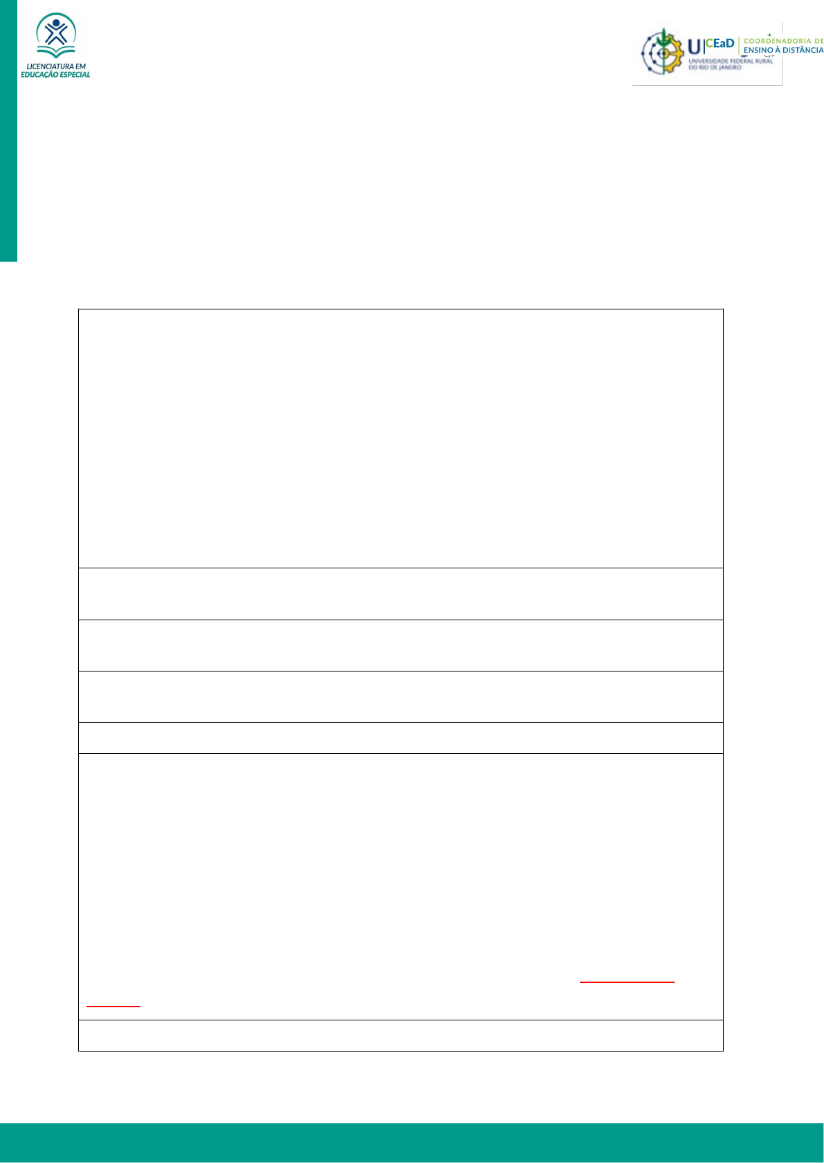LICENCIATURA EM EDUCAÇÃO ESPECIAL 2025.1 PSICOMOTRICIDADE: corporeidade e movimento na Educação Especial Prof. Aline Alvernaz ATIVIDADE AVALIATIVA TAREFA - N2 - até 10,0 (dez pontos) Atividade: Selecionar um microvídeo (reels, tiktok, youtube) de uma atividade educativa, pedagógica, escolar e apresentá-la na Perspectiva da PSICOMOTRICIDADE Entrega até 22/06/2025 as 23:59 Alunos(as): Pode ser realizada individualmente ou em grupo de até 6 pessoas de diferentes polos 1- nome completo e polo 2- nome completo e polo 3- nome completo e polo 4- nome completo e polo 5- nome completo e polo 6- nome completo e polo Link do vídeo da atividade: cole aqui o link do vídeo da atividade selecionada nas redes Créditos: coloque aqui a origem do microvídeo. Se for possível cite o autor ou a identificação da página retirada Print da atividade: Faça um print de tela da atividade escolhida para ilustrar a apresentação Nome da atividade: escolha um nome e batize sua atividade Objetivo: escreva aqui o principal objetivo da atividade destacando o elemento da psicomotricidade principal a ser desenvolvido/trabalhado com a atividade selecionada. (TONICIDADE, EQUILIBRAÇÃO, LATERALIDADE, NOÇÕES DE CORPO, ESTRUTURA ESPAÇO TEMPORAL, PRAXIA GLOBAL, PRAXIA FINA) Elabore o objetivo usando o verbo inicial no infinitivo e construa-o de maneira completa. Exemplo: "Promover uma ambiência que favoreça a construção de noções de corpo através da atividade com papel” Materiais necessários: escreva todos os materiais utilizados na proposta Descrição da atividade: (Passo a passo) de maneira simples e direta, porém observando a abordagem pedagógica necessária para o desenvolvimento da atividade Apontamentos importantes: Escreva aqui o que levou a escolha da atividade, o que chamou atenção na proposta e, porque ela é relevante na construção de uma Educação Especial na perspectiva da inclusão. Traga referências e citações (pelo menos 2) de textos que você acessou, seja aqui nesta disciplina ou em outras. Referências: Coloque aqui as referências citadas nesta atividade conforme as normas da ABNT Observações: 1) Para garantir o respeito questões éticas do trabalho acadêmico, solicitamos que não sejam mostrados rostos de crianças ou utilize de recursos para não mostrar os olhos, desfocando rostos e etc. (caso o microvídeo seja retirado das redes sociais, COMO INDICADO, não precisa, por está com o acesso livre e não privado) 2) Esta atividade deve se organizar em até 3 páginas. 3) Tudo que está em vermelho deverá ser substituído pelo aluno na elaboração da atividade e apagado. São apenas exemplos e instruções para contribuir na elaboração da atividade avaliativa. Não escreva de vermelho!!! 4) Ao finalizar o documento com as informações da atividade, faça a exportação para o formato PDF e poste na área específica do Moodle. 5) Caso a atividade seja feita por mais de um aluno, apenas UM ÚNICO aluno deverá postar a aditividade pelo grupo. NÃO é necessário que todos postem. Peço atenção a este tópico, para evitar trabalhos duplicados. Bons Estudos! image1.jpg image2.png image4.jpg image3.png image6.png